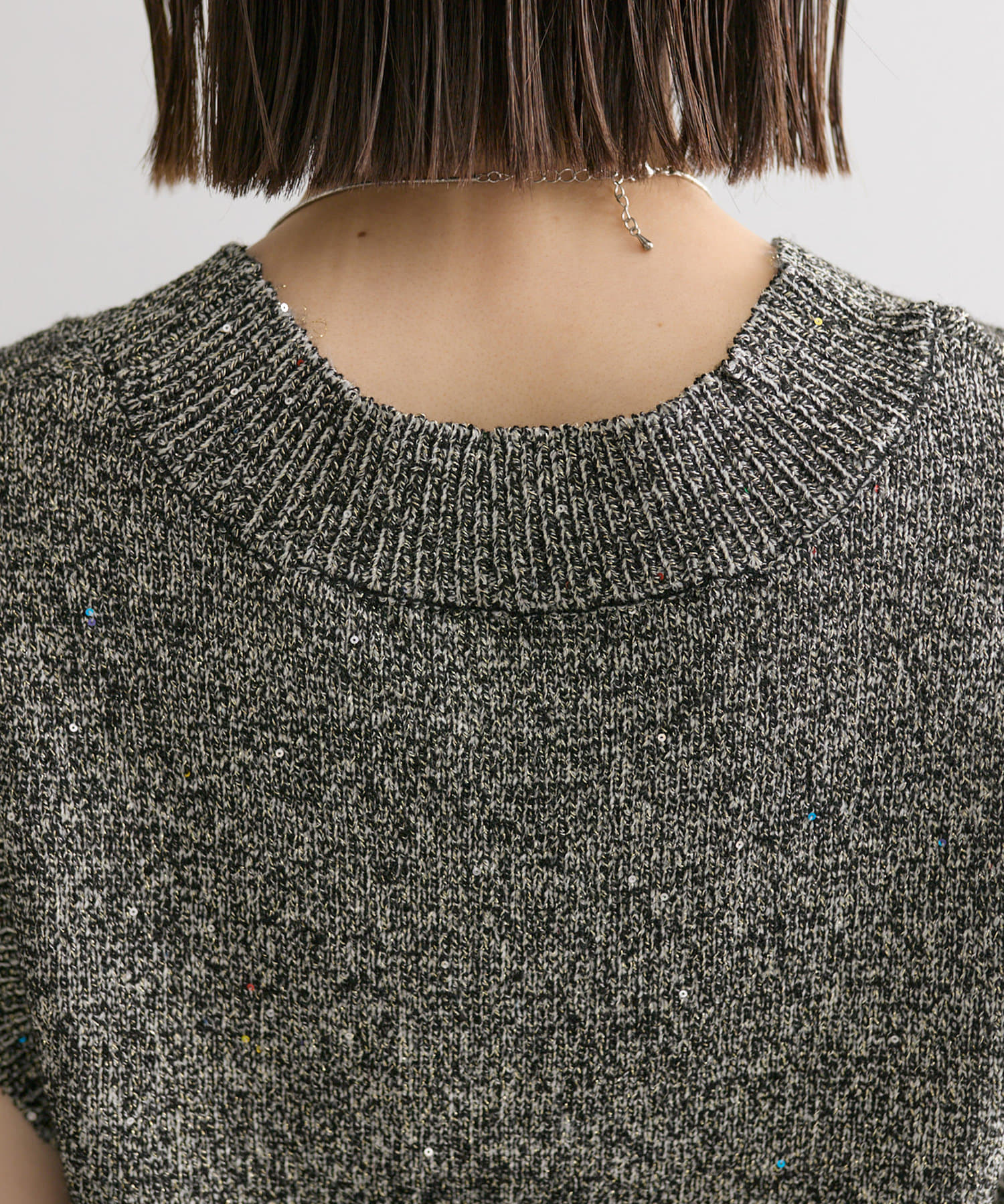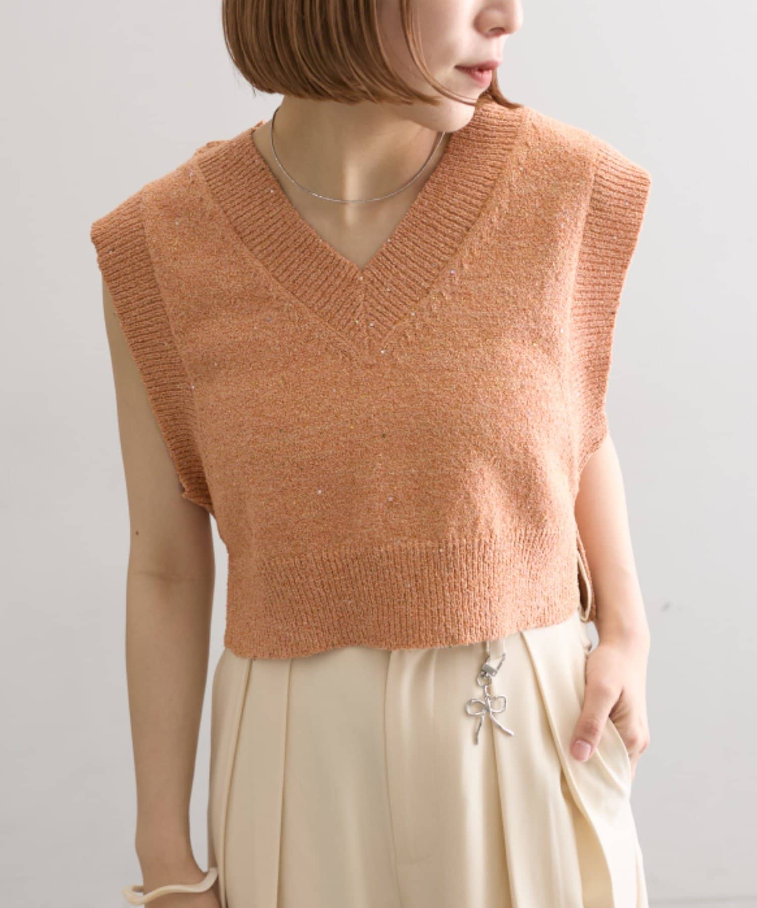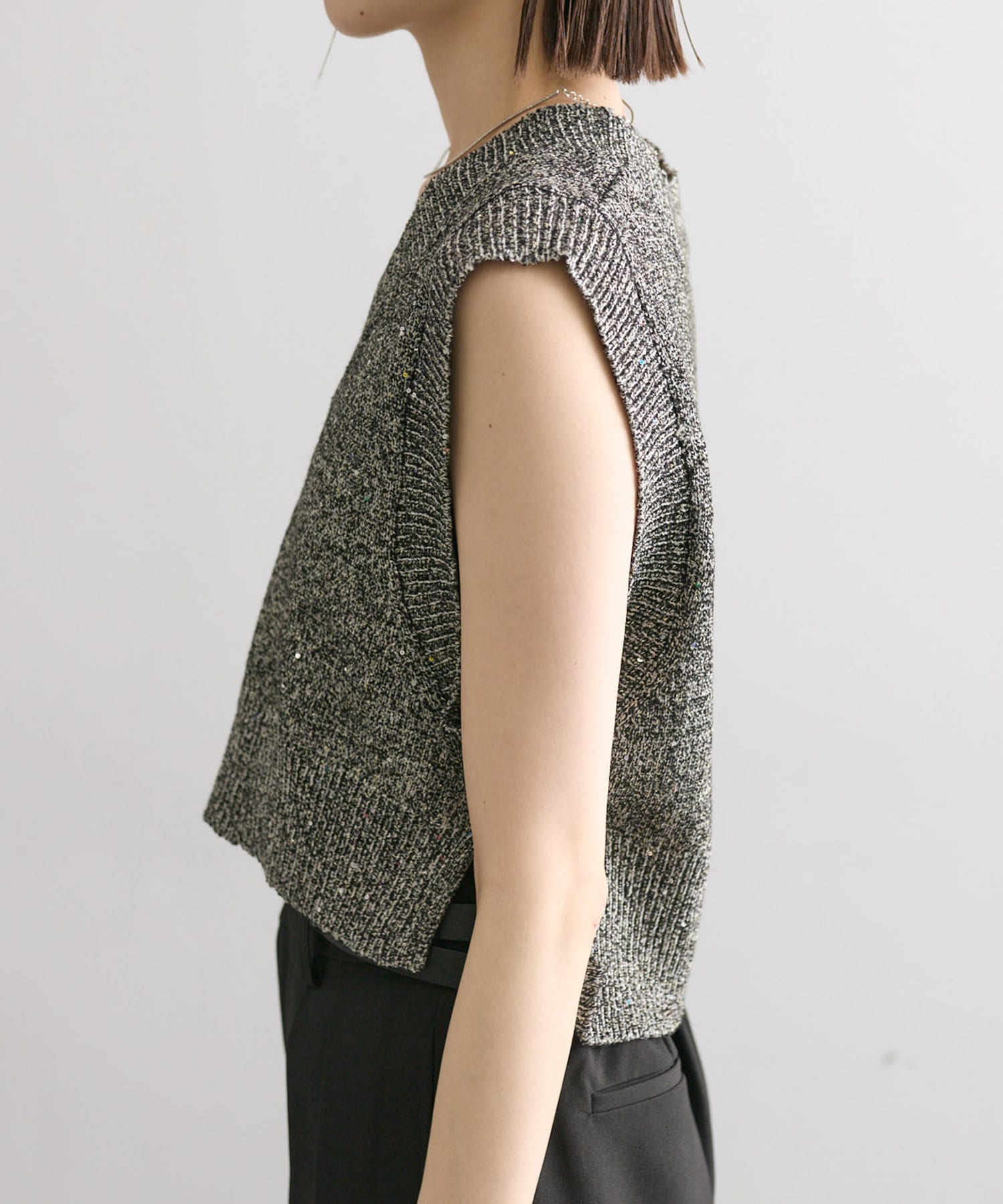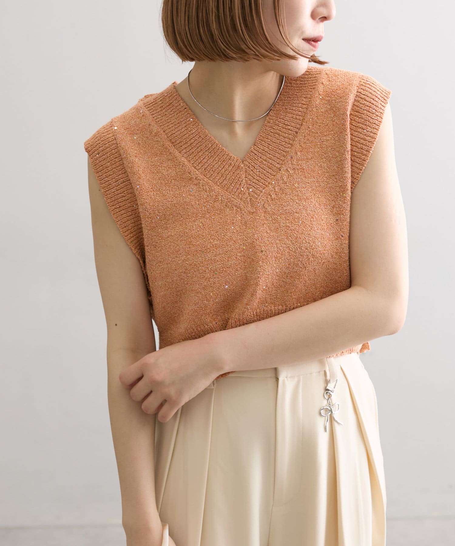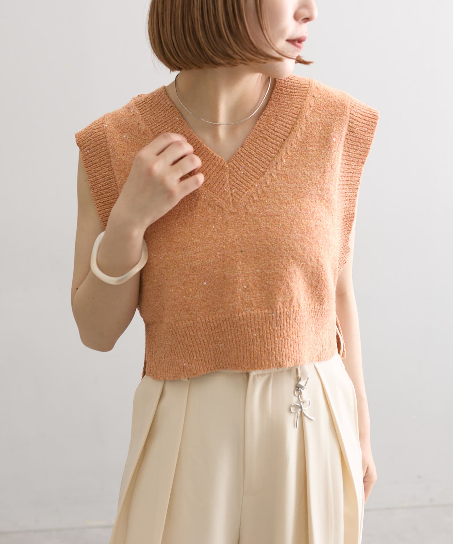 【EC限定カラーあり/BRN・BLK2】スパンコールニットベスト