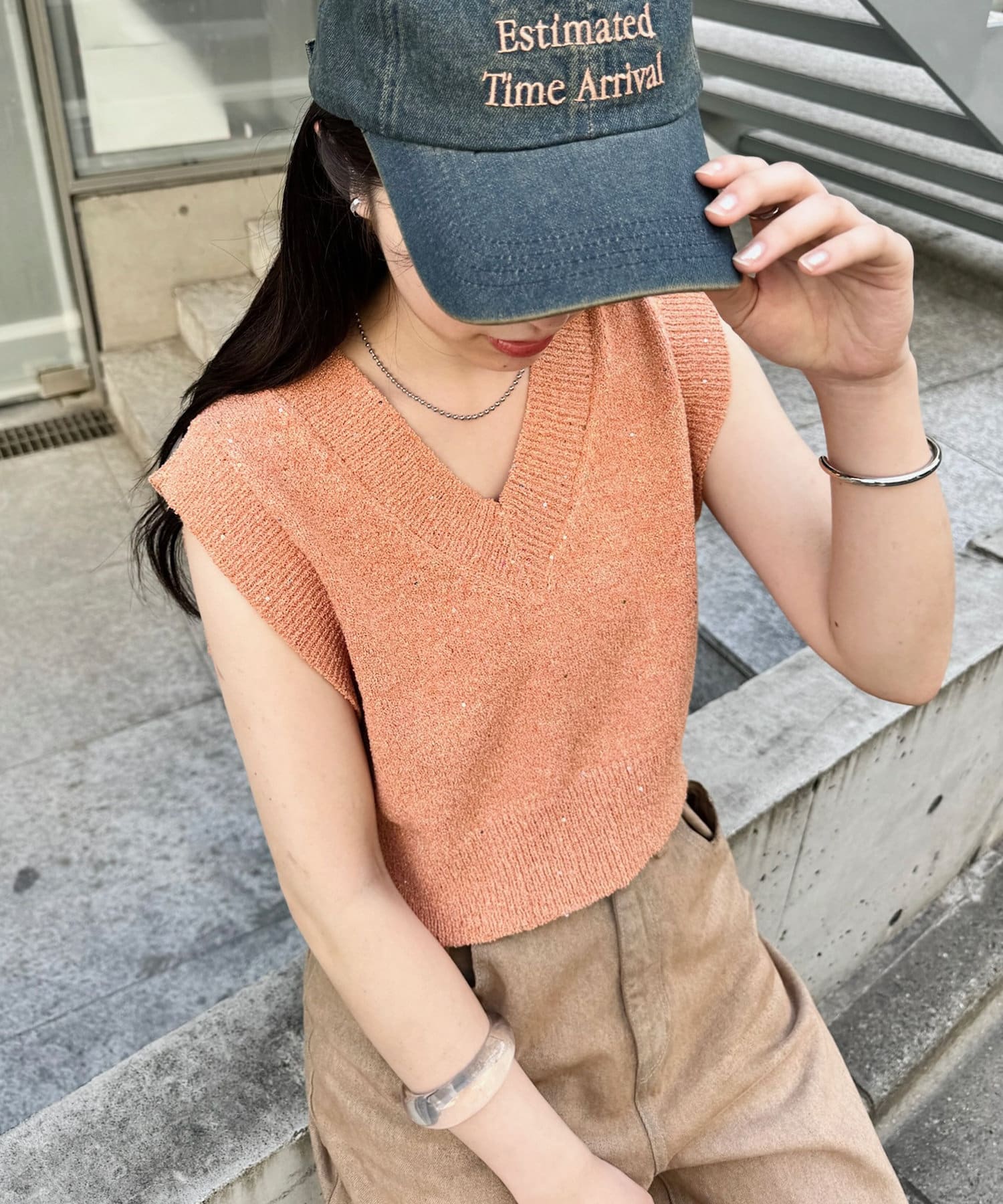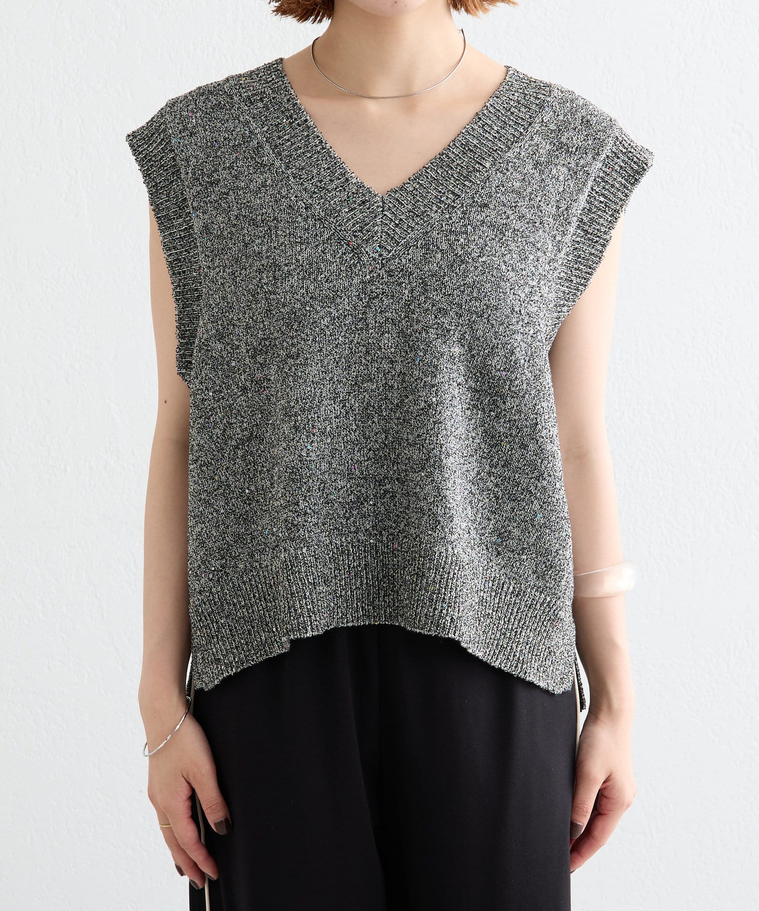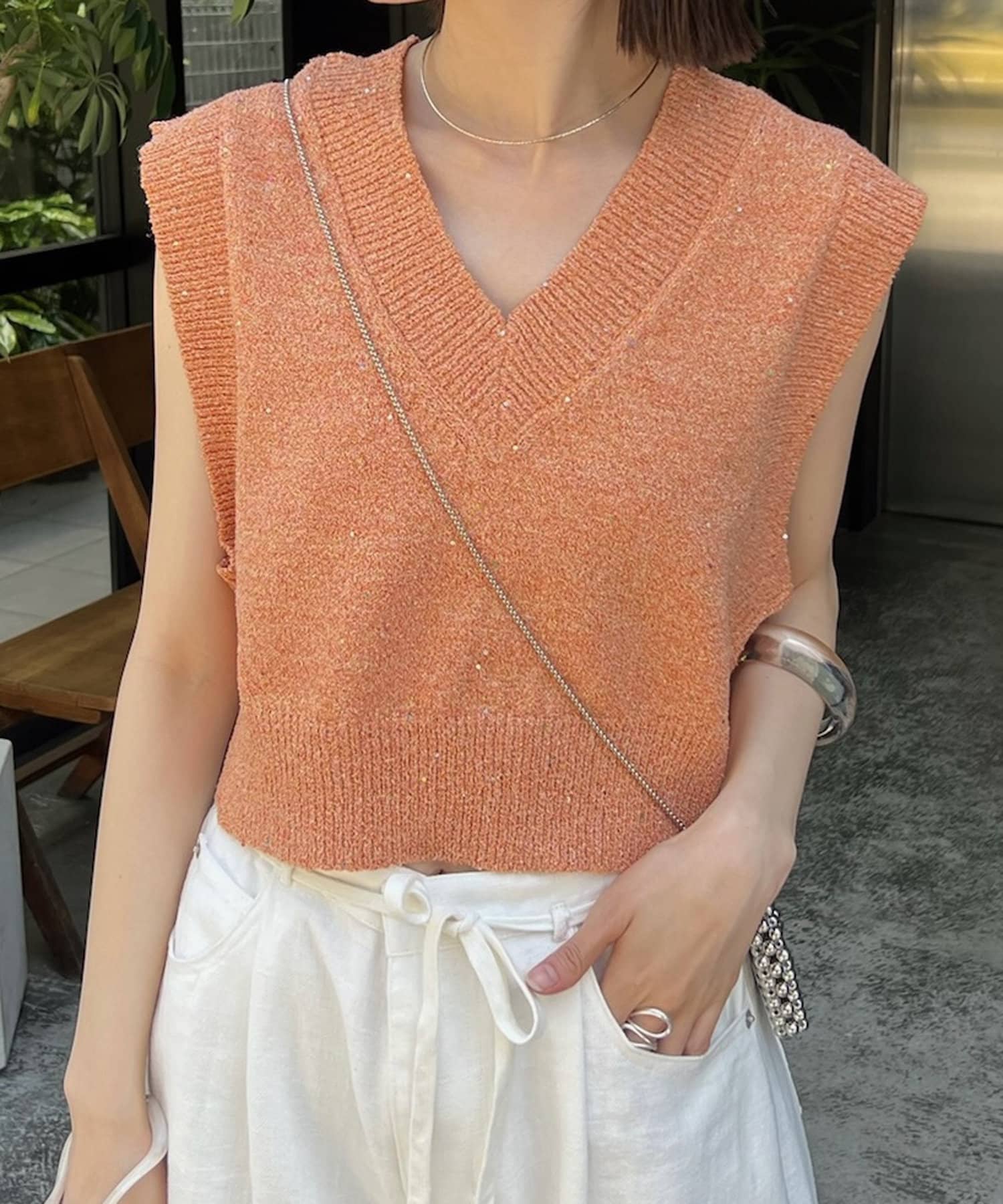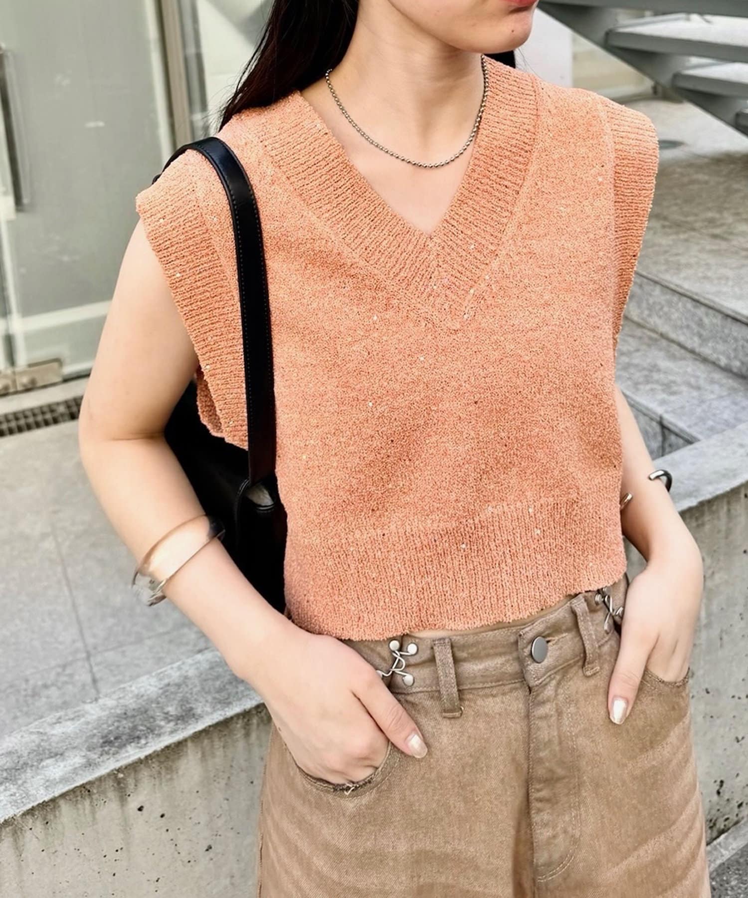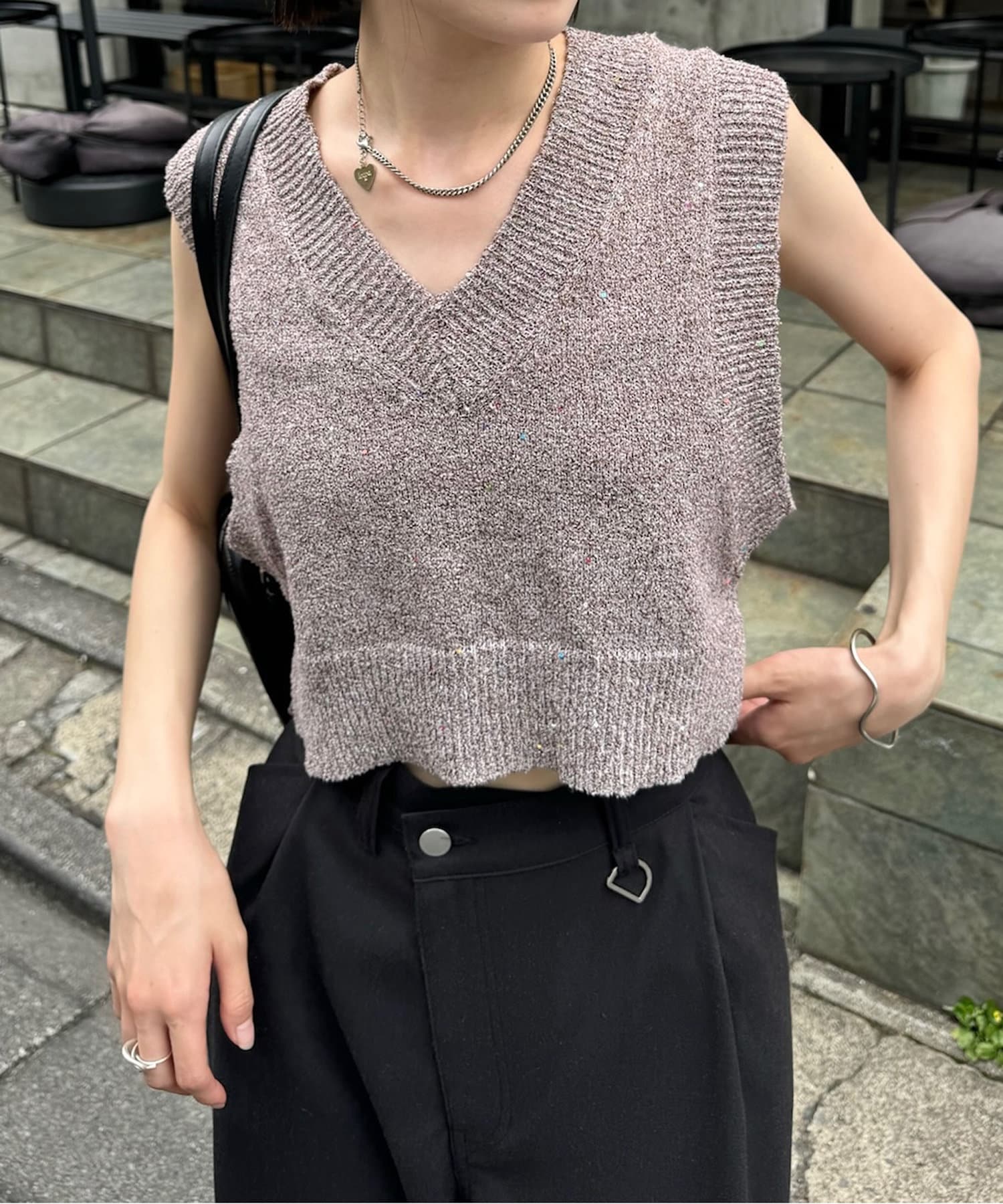 【EC限定カラーあり/BRN・BLK2】スパンコールニットベスト