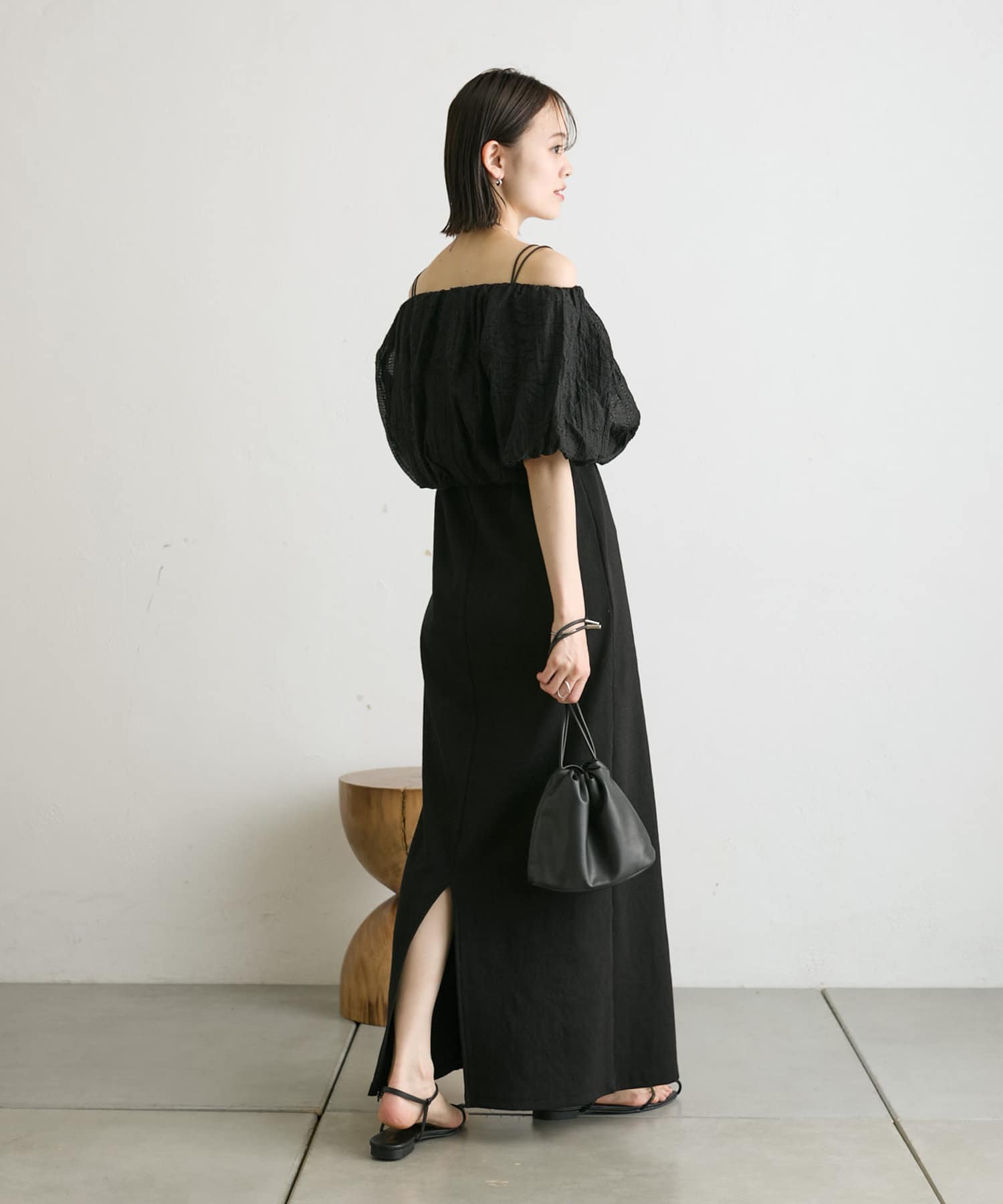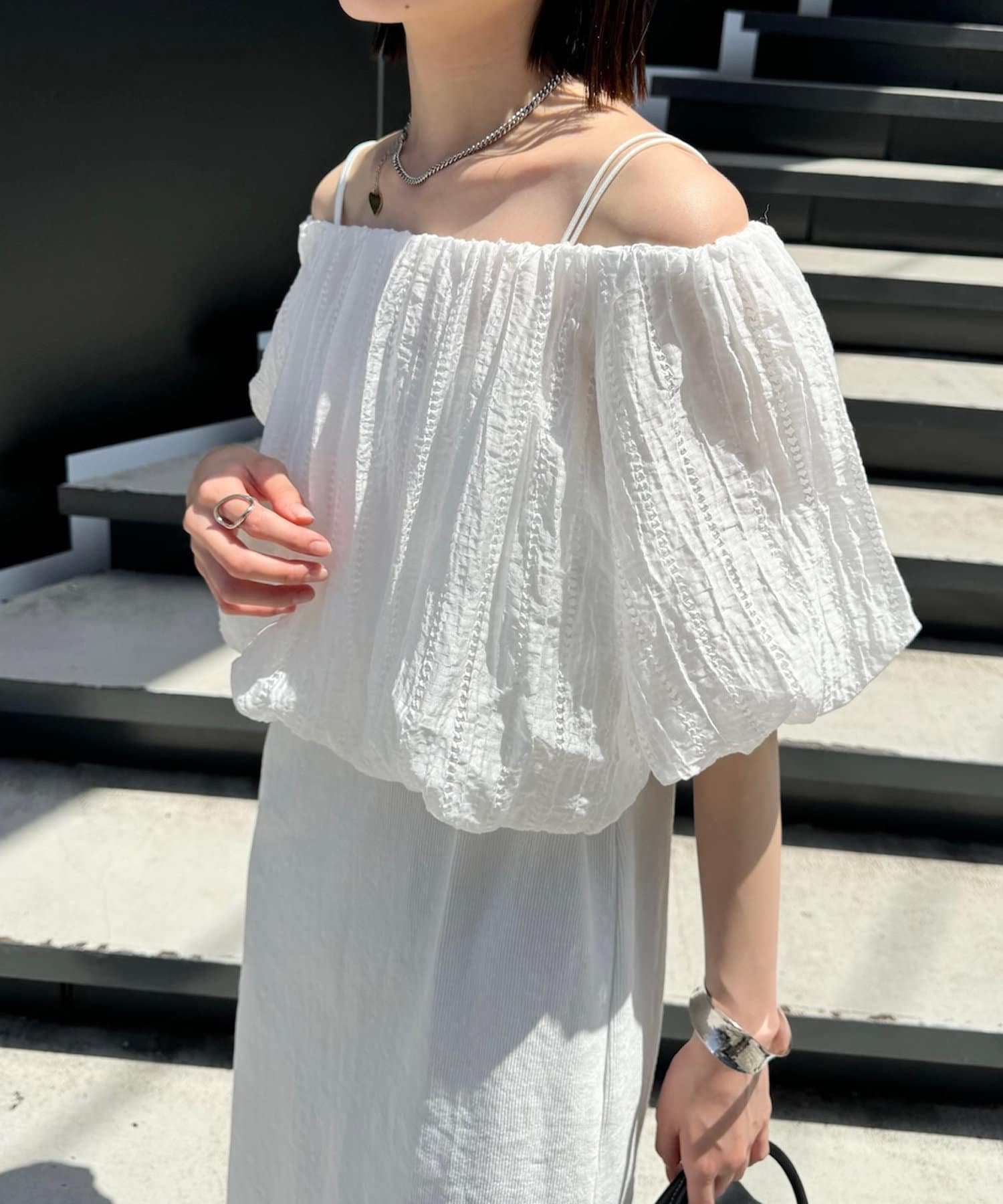 ・バルーンブラウスで一枚で華やかなワンピース。