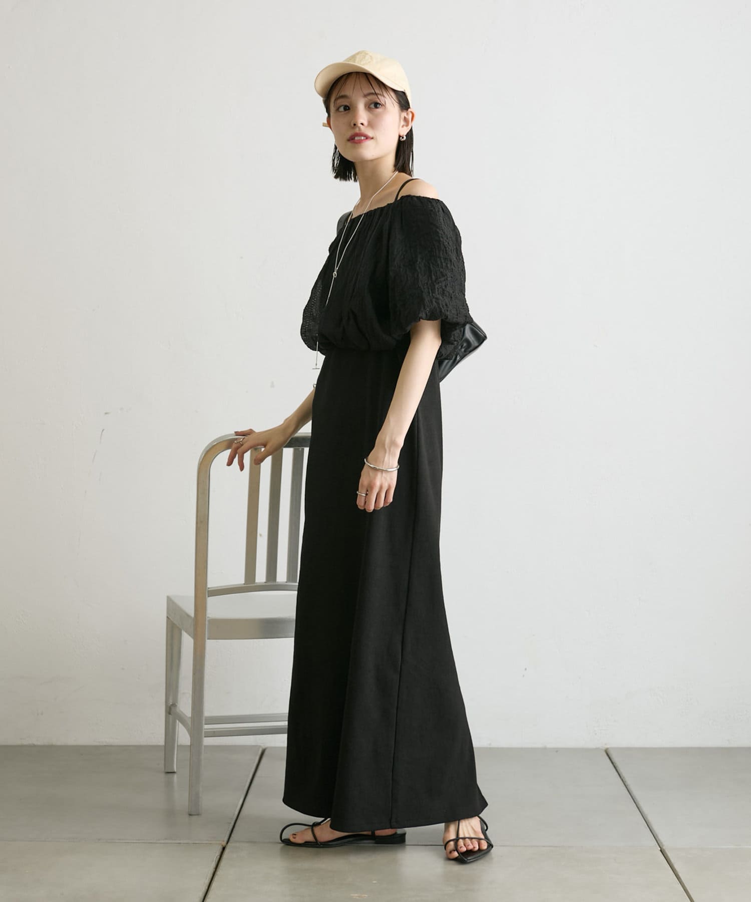 ・ややフレアデザインのワンピは一枚でも決まります。