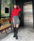 ・コンパクトなトップス合わせでよりスタイルアップが叶います◎