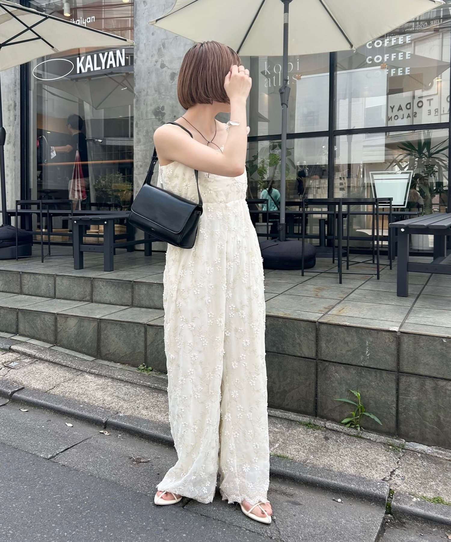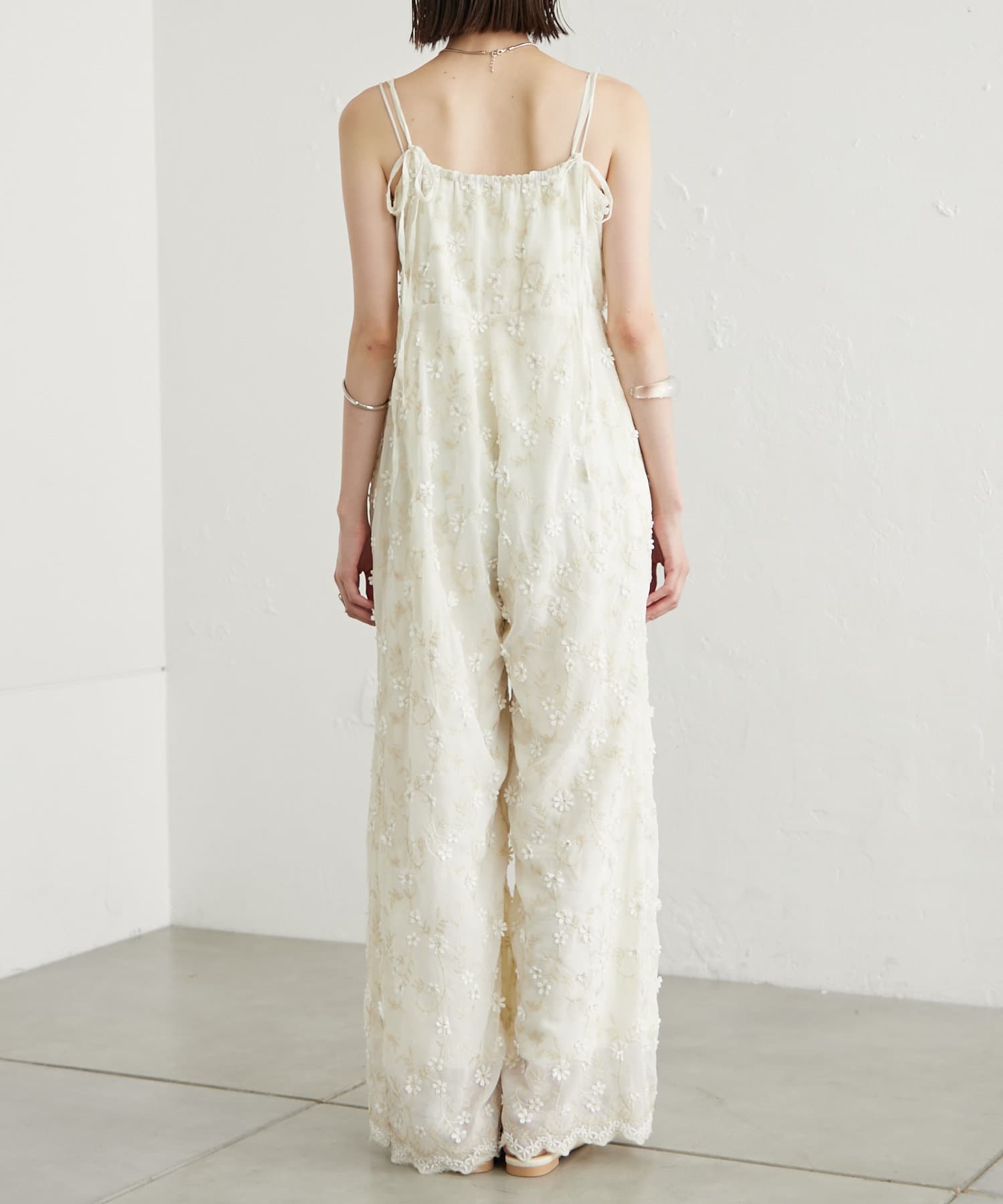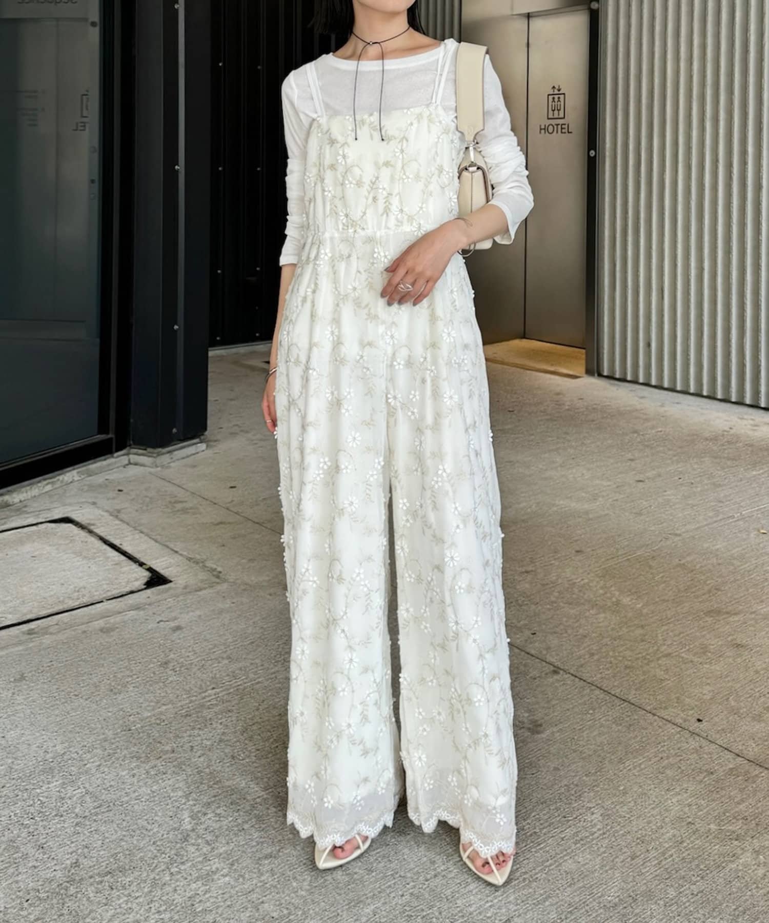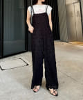 【きらきらの花柄刺繍が映える】フラワー生地サロペット。