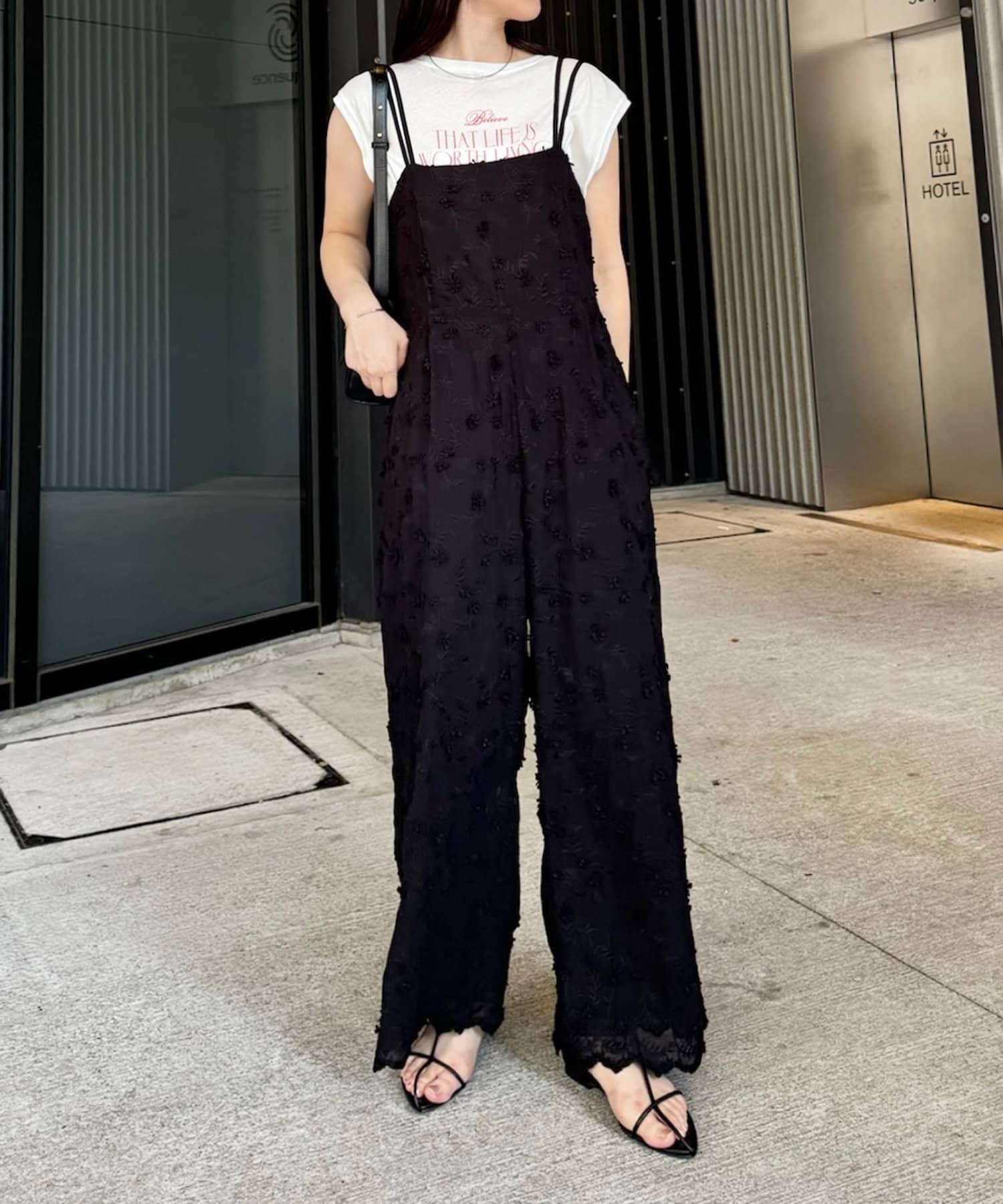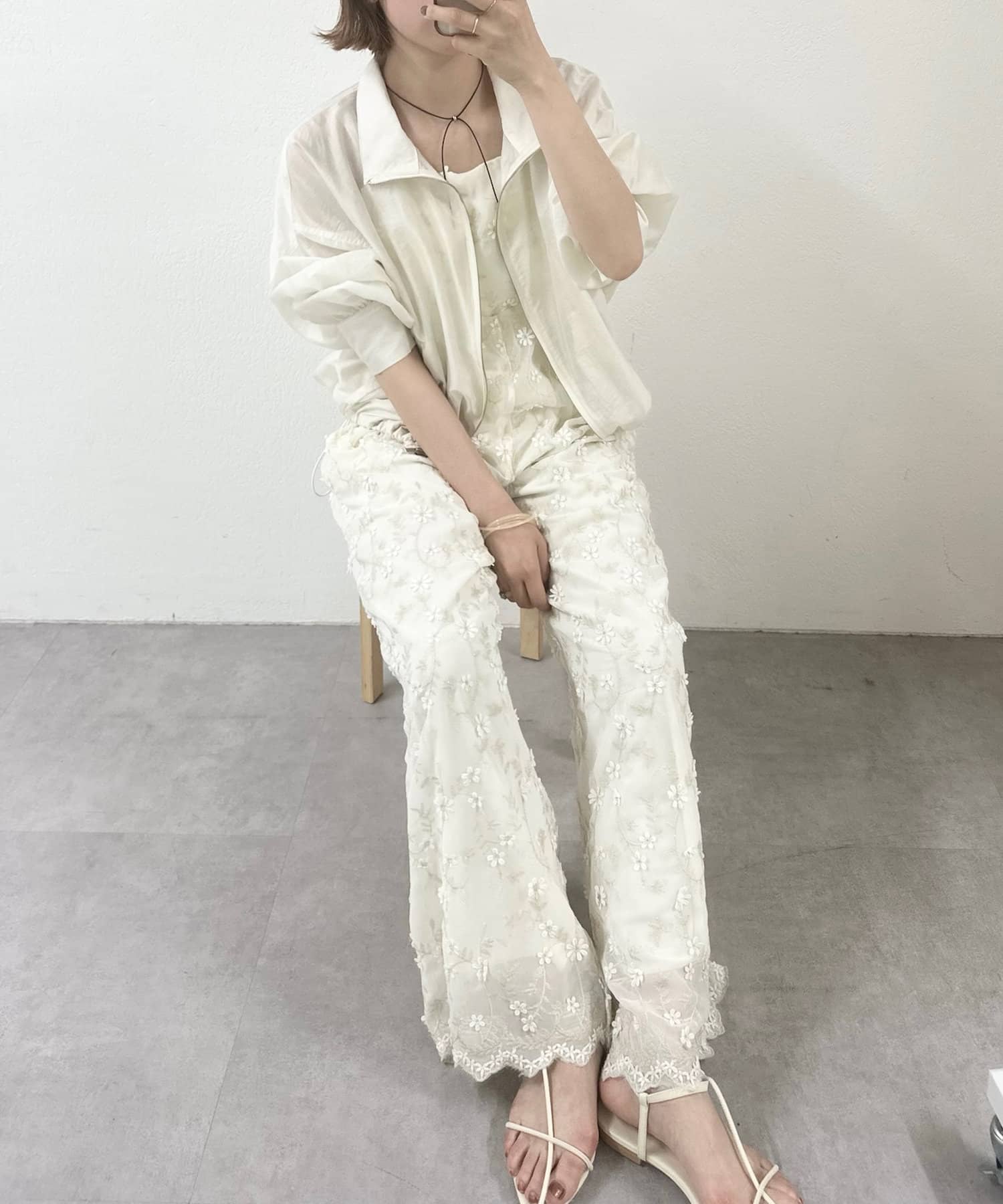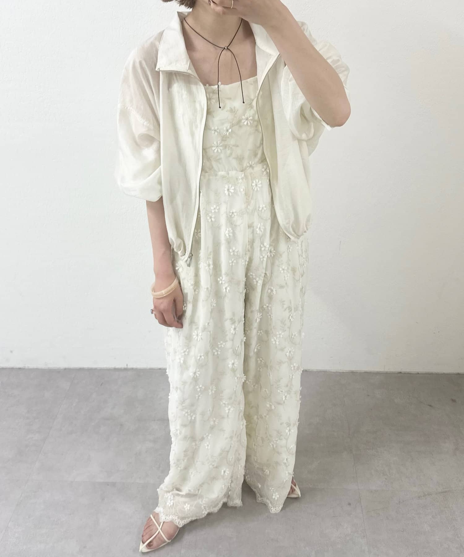 ・立体的な花柄の素材で一枚で主役見えさせてくれるアイテム。