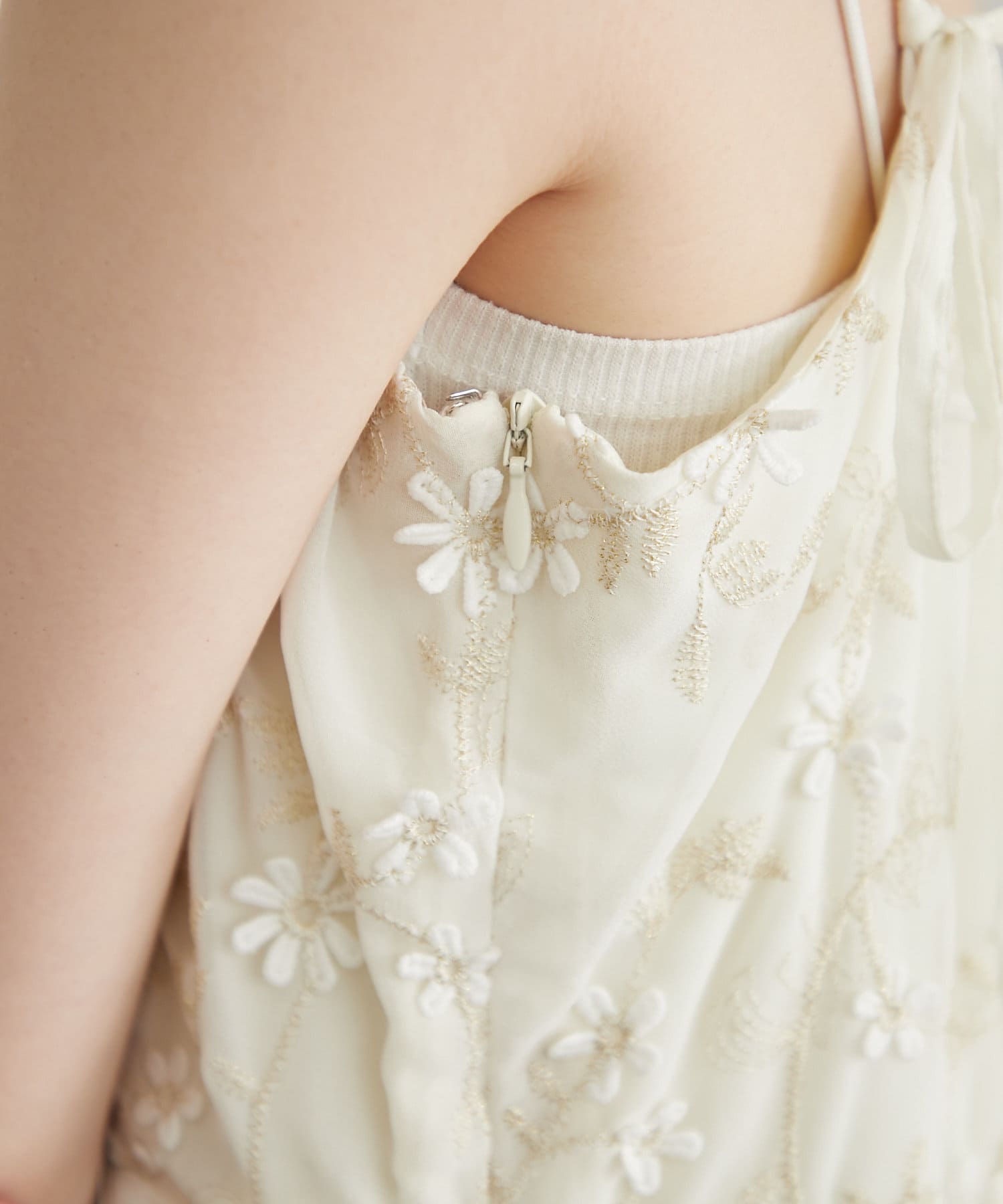 購入場所:店舗花柄の刺繍、肩紐のリボン、裾のレースと全部が可愛すぎます♡