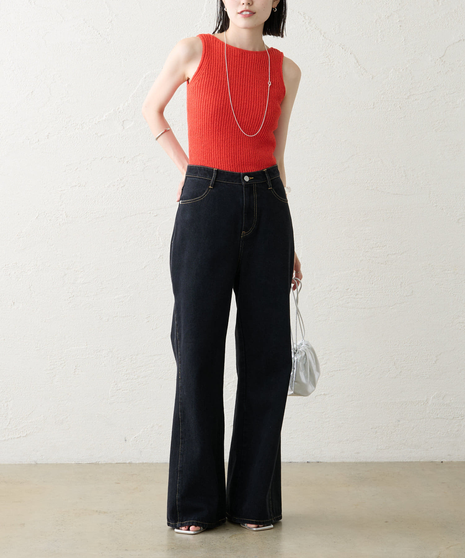 ・カジュアルコーデにも綺麗めコーデにも合わせやすいデニムパンツです。