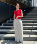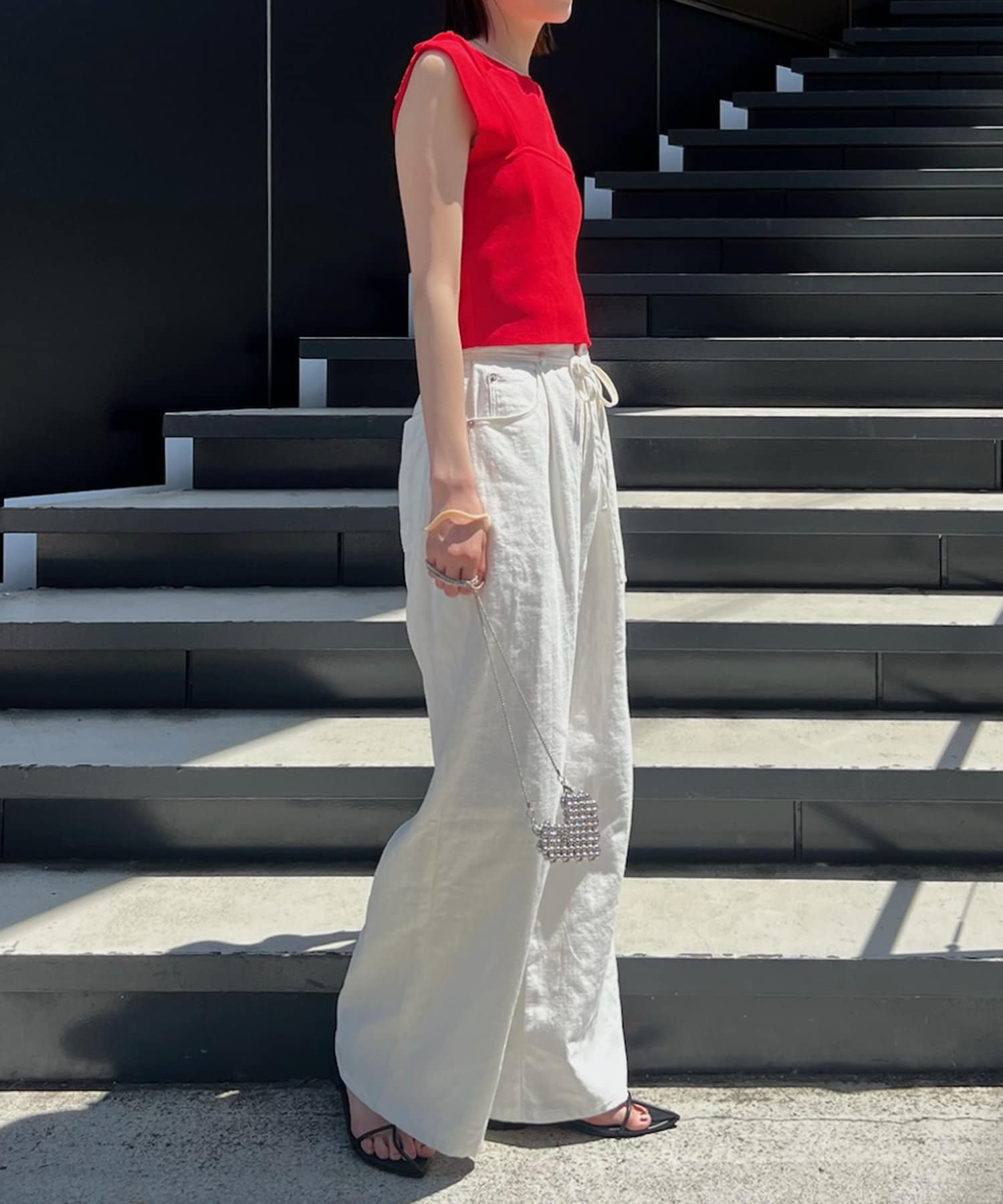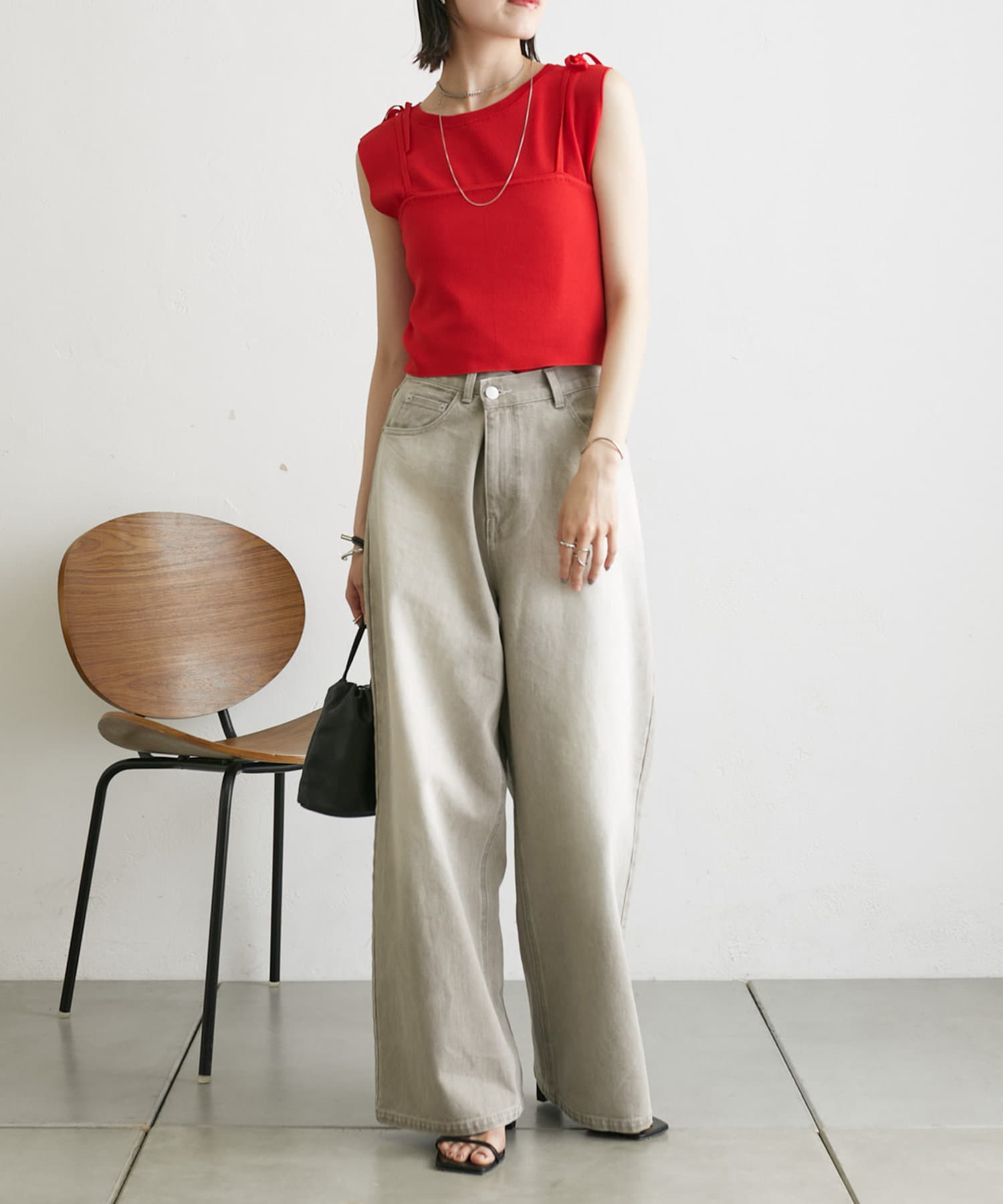 ・カラーアイテムを着用する場合はボトムスはベーシックなカラーがおすすめ。