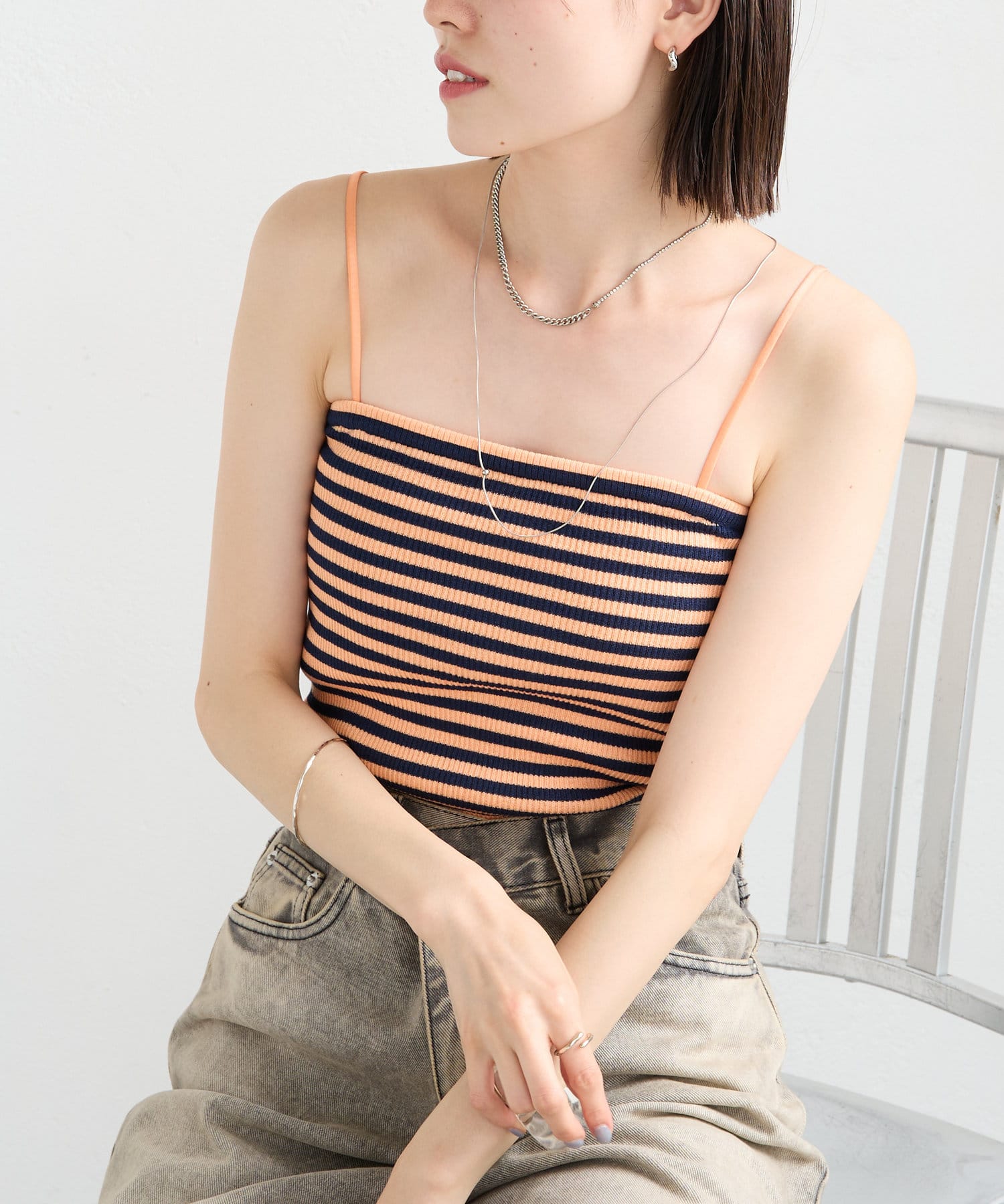 【mystic】ボーダーベアキャミソール