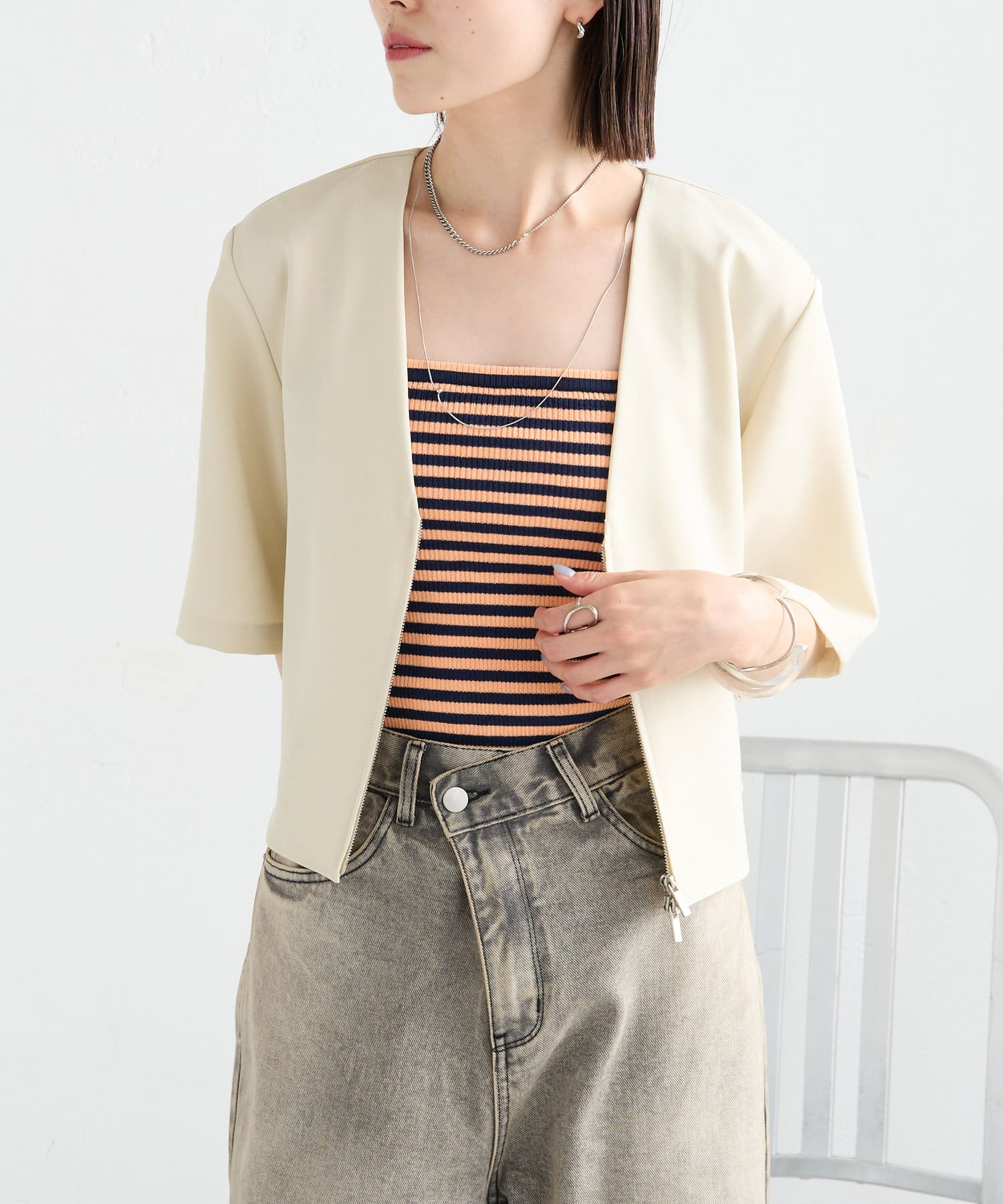 ショート丈のジャケットでスタイルアップが叶うジャケットが登場◎