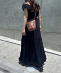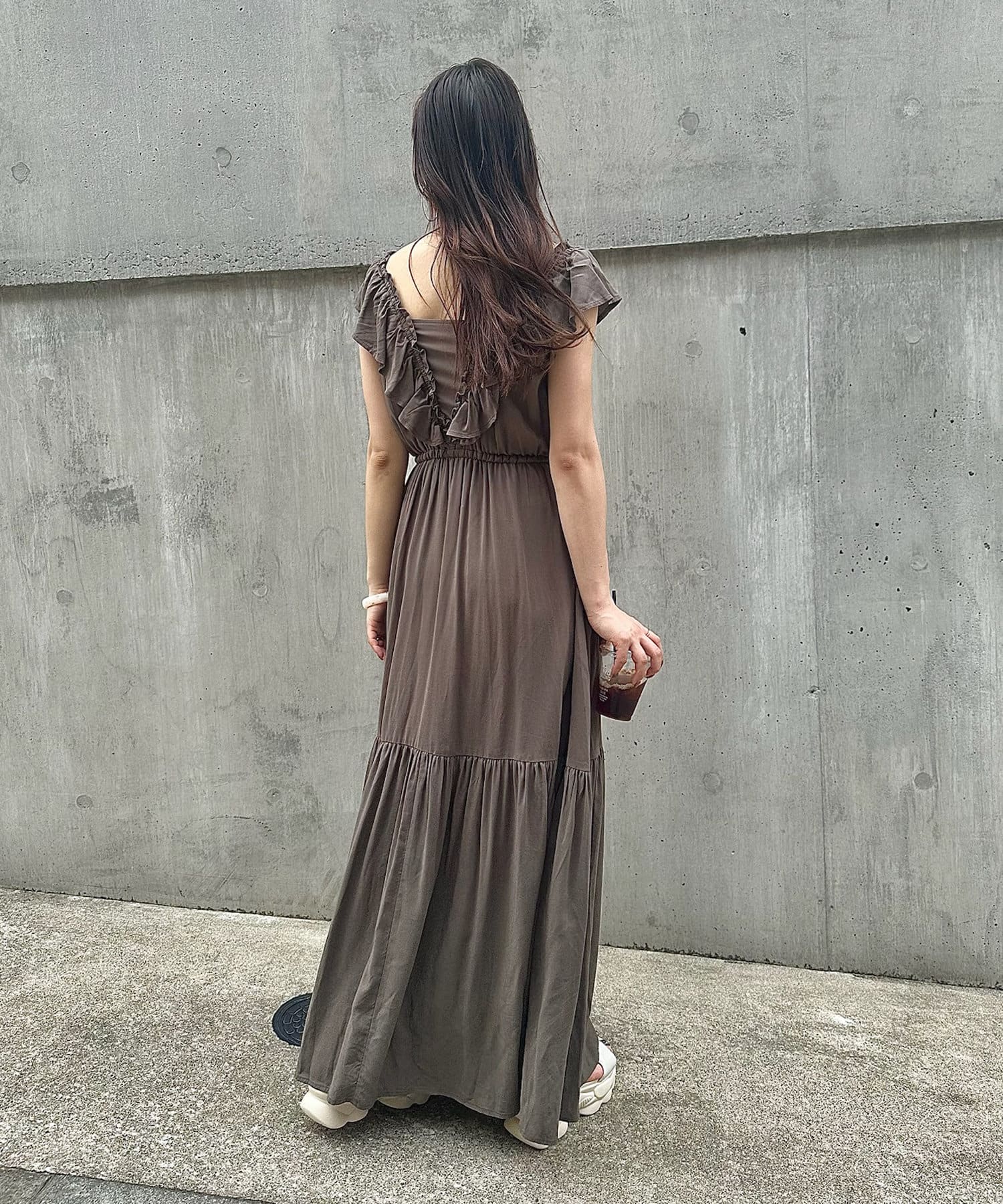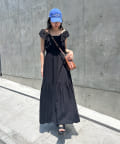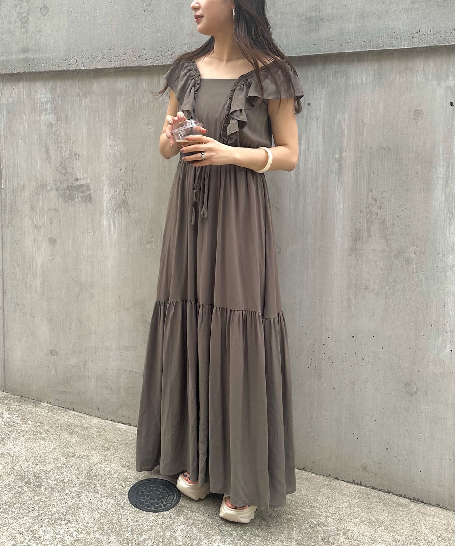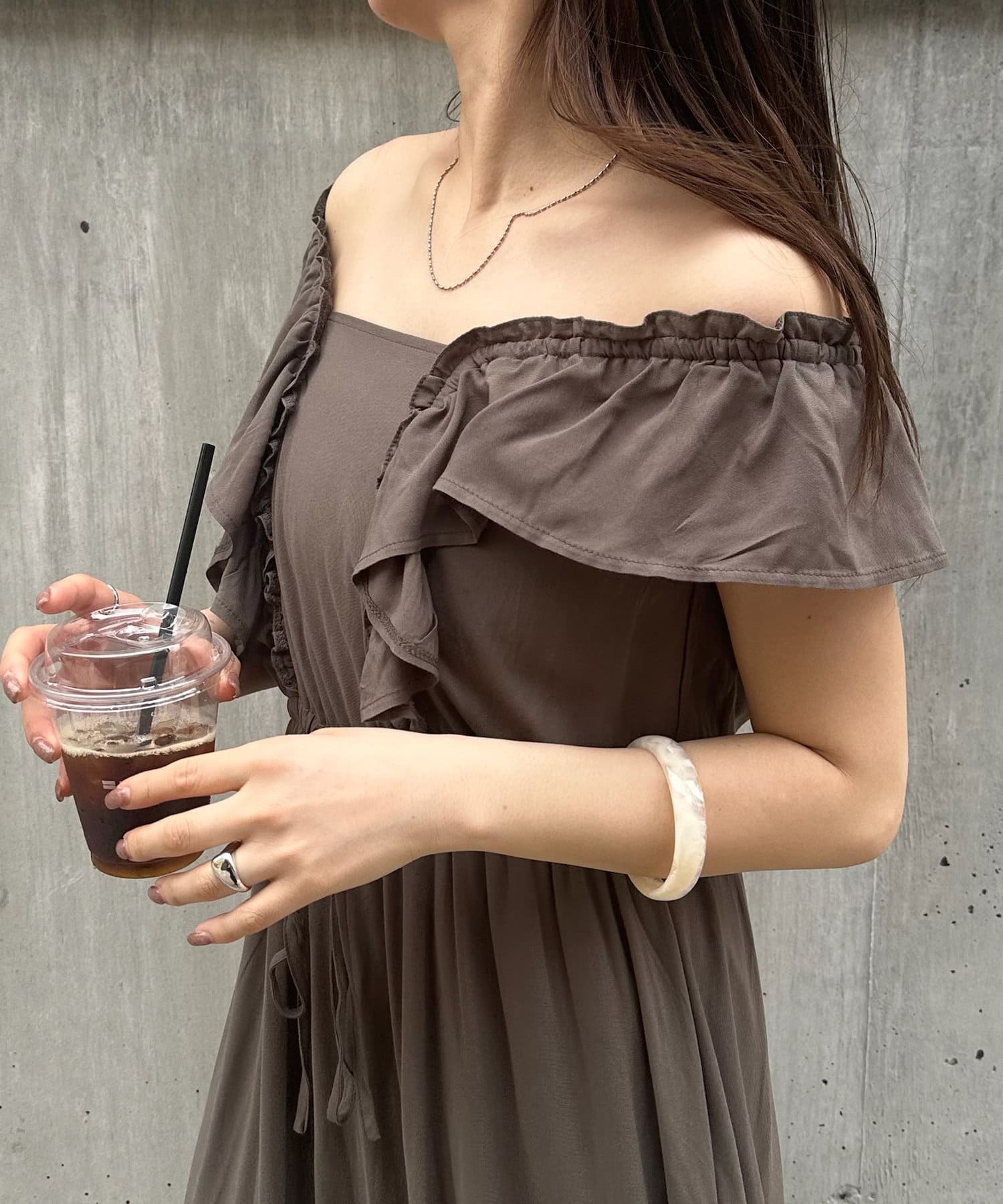 ・肩のフリル部分を下げてオフショルワンピースにもできるのが嬉しいポイント◎