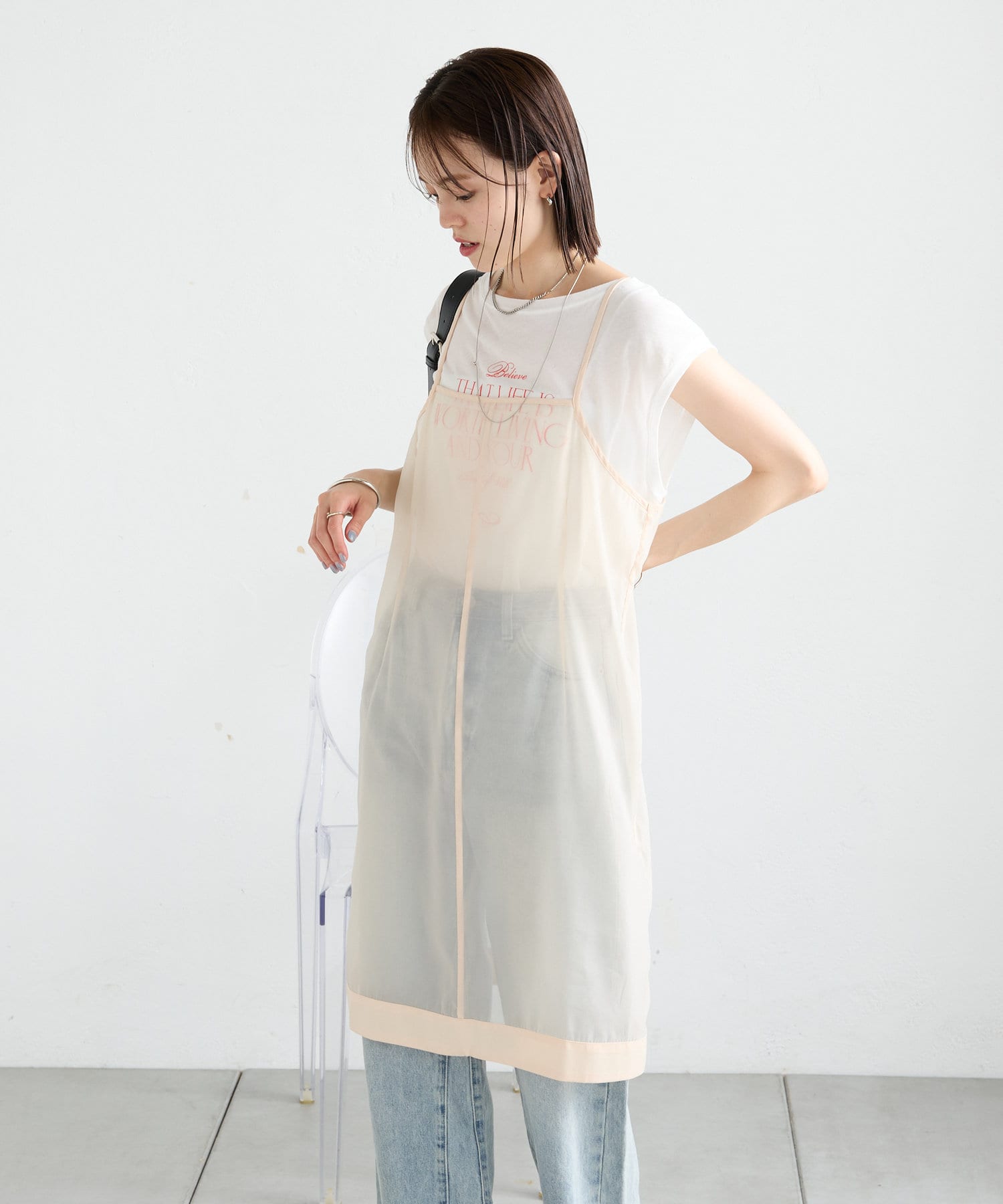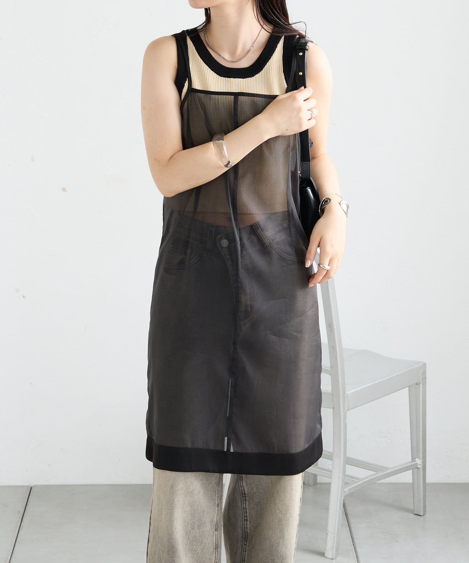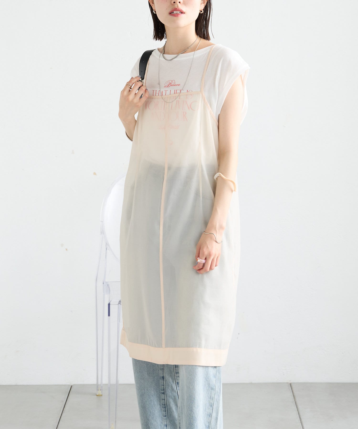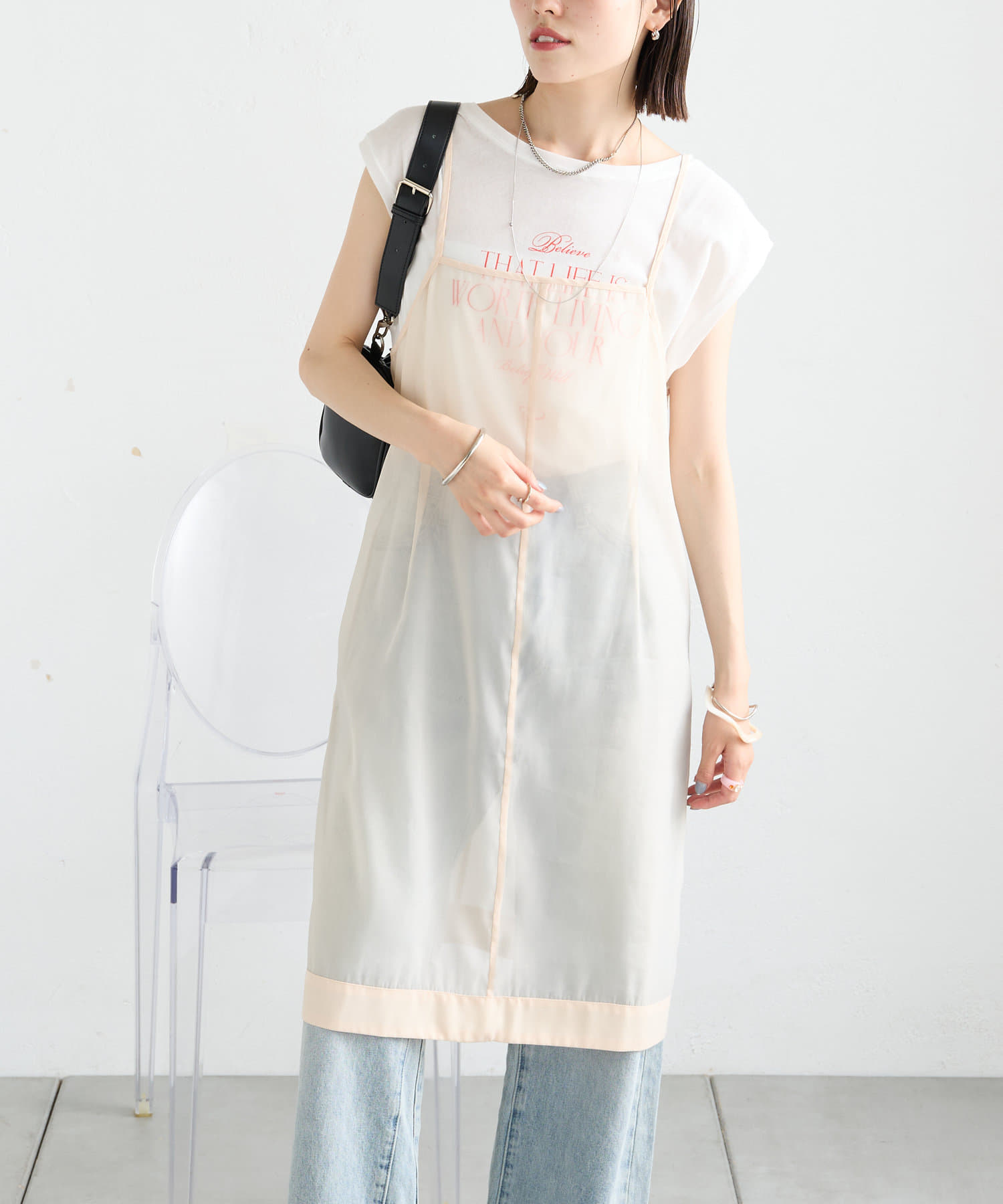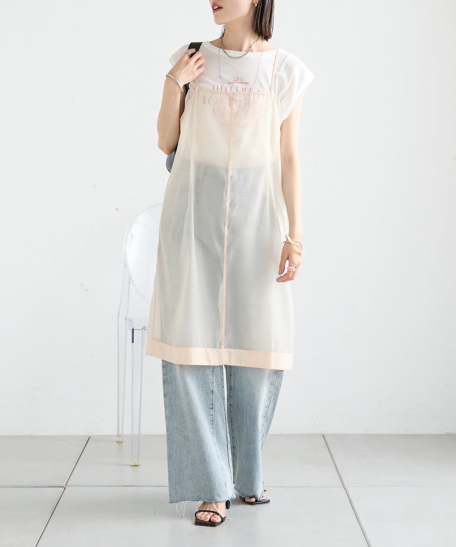 ・シアー素材で、少し短めのワンピースなのでレイヤードスタイルを楽しんでいただけます。
