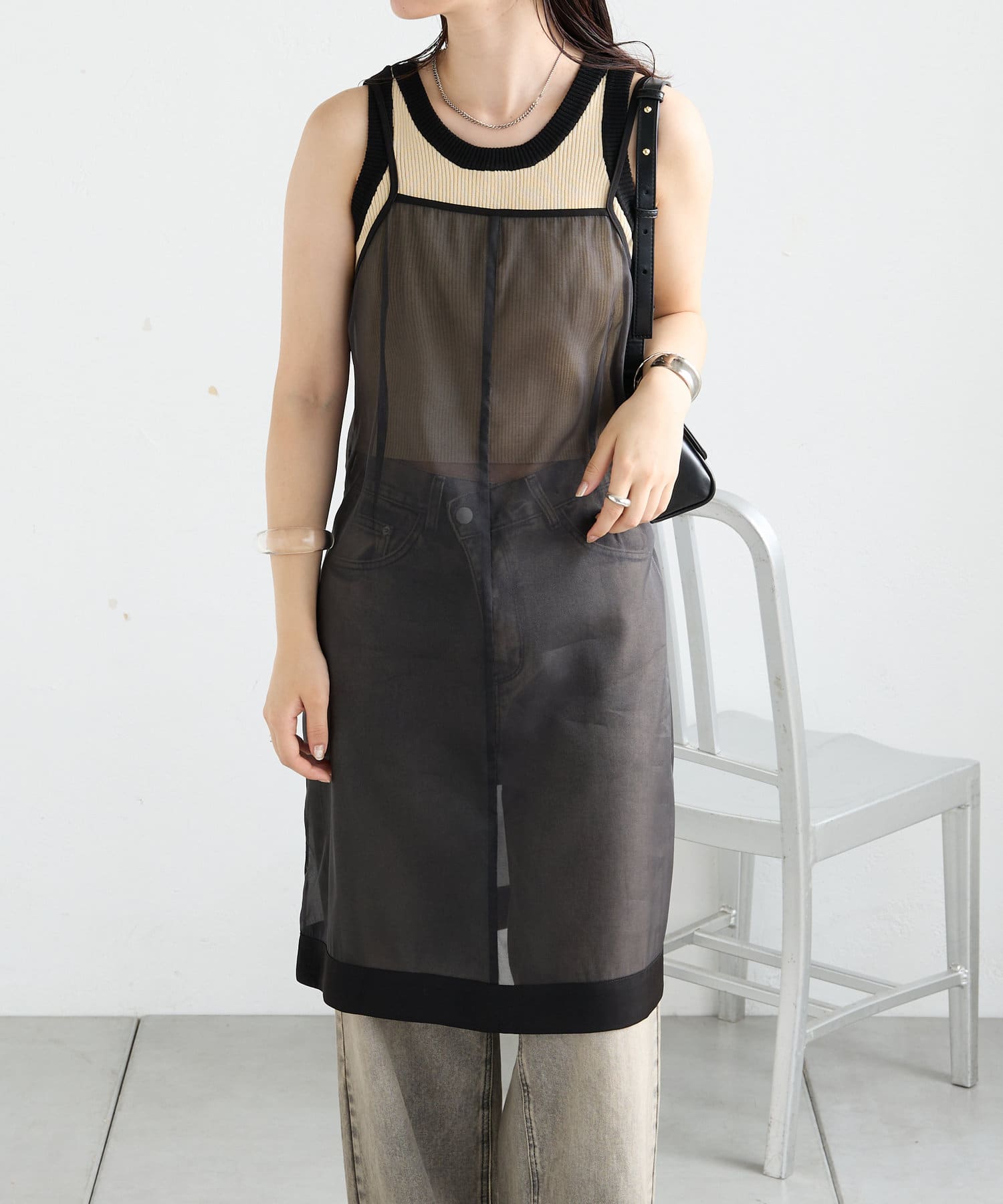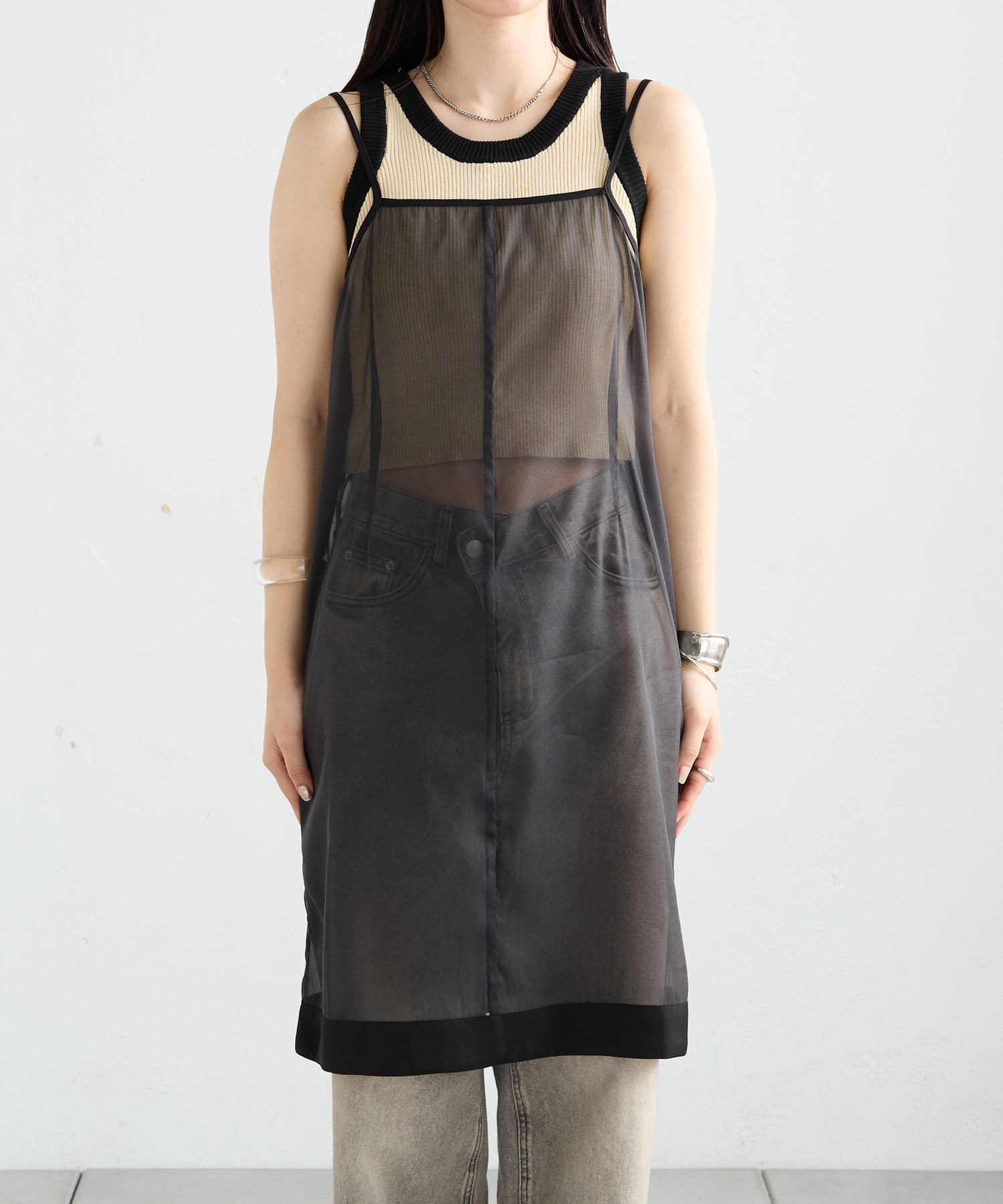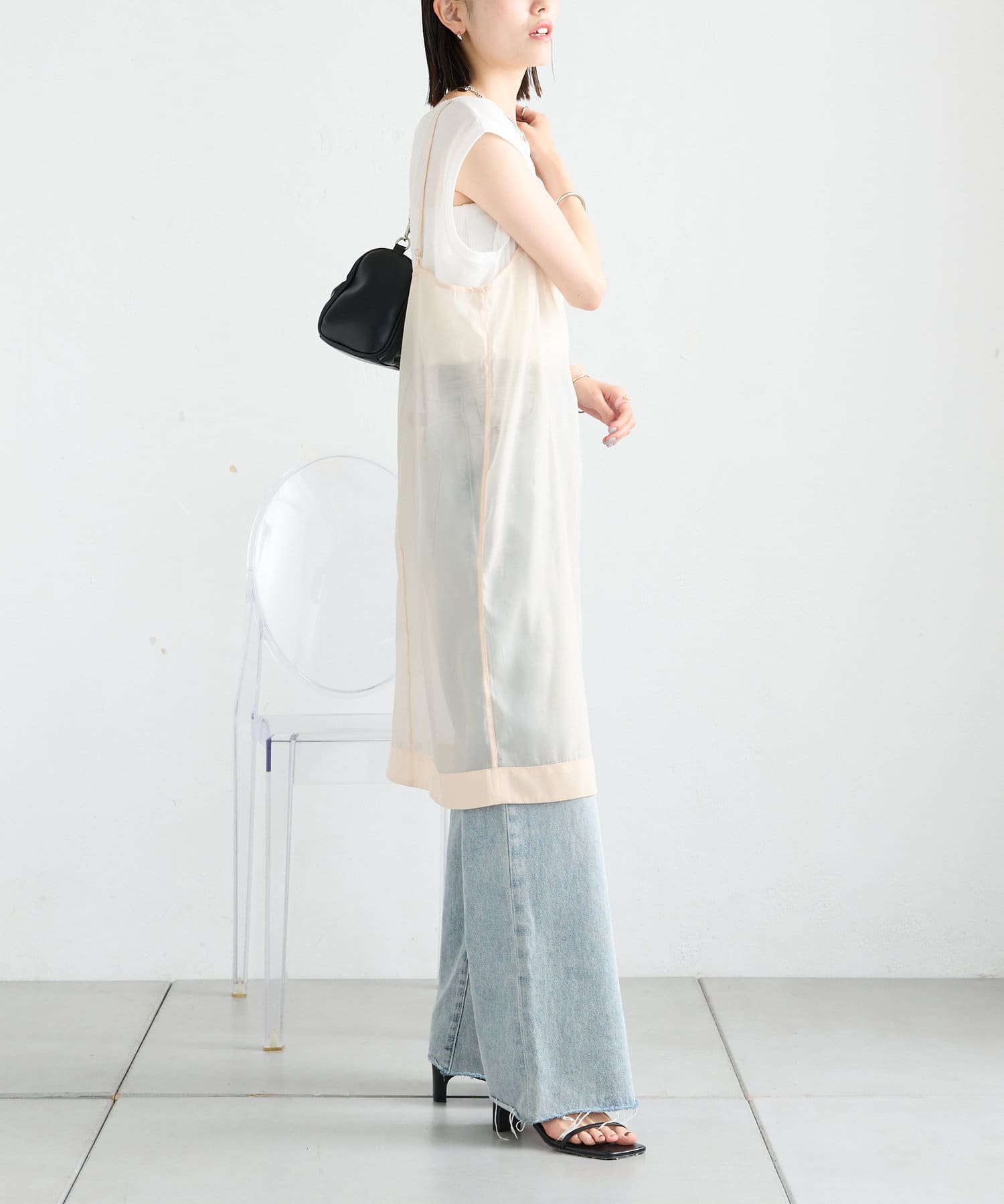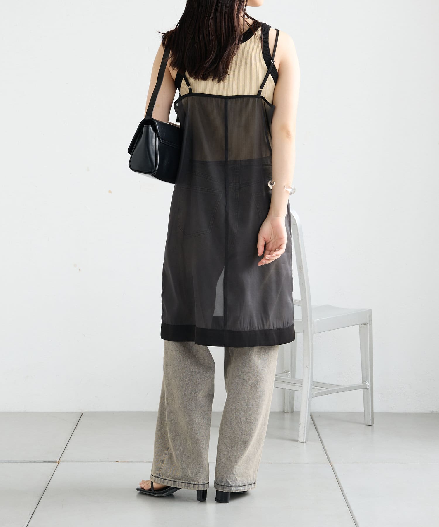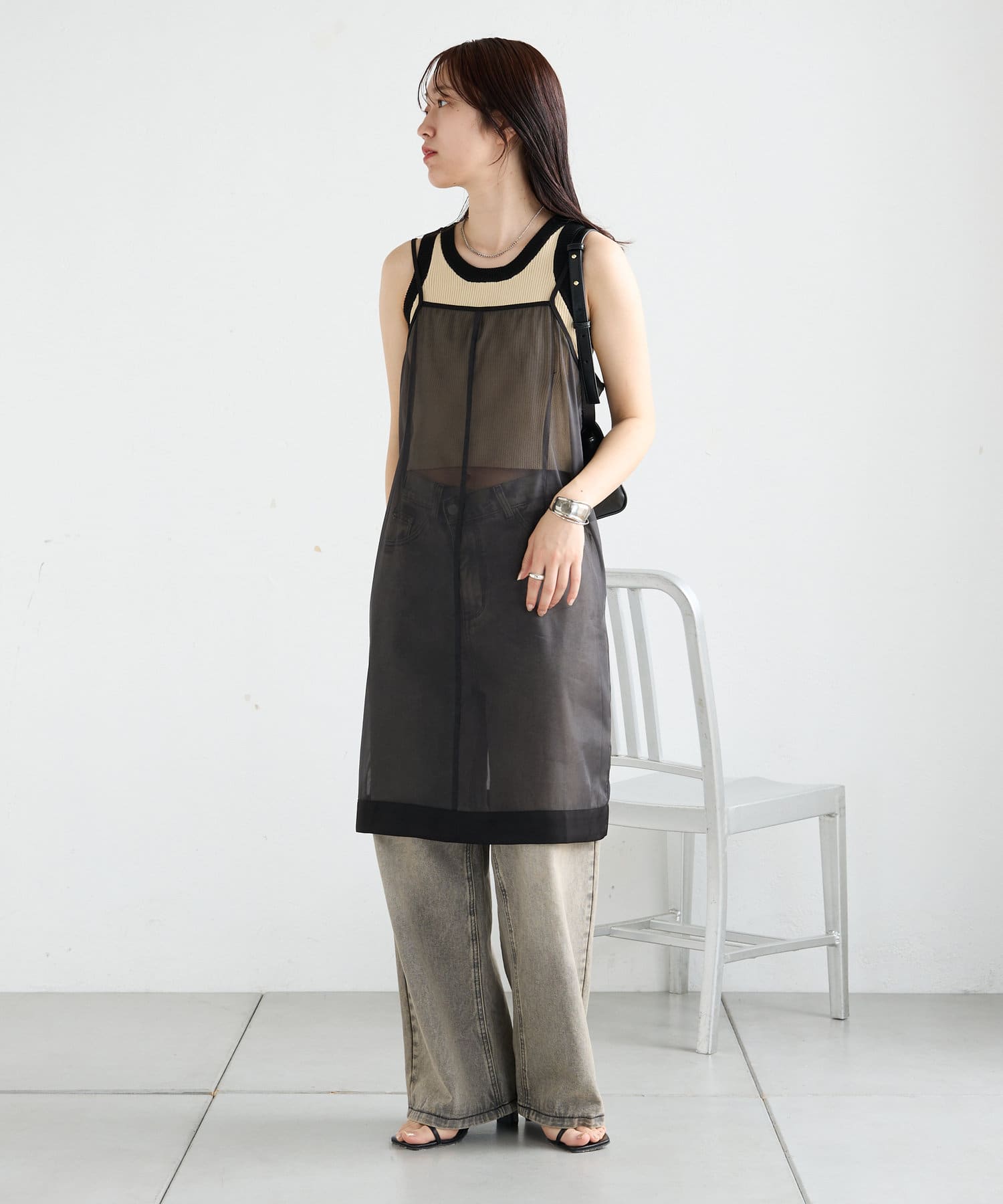 ・シアー素材で、少し短めのワンピースなのでレイヤードスタイルを楽しんでいただけます。