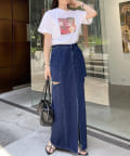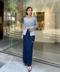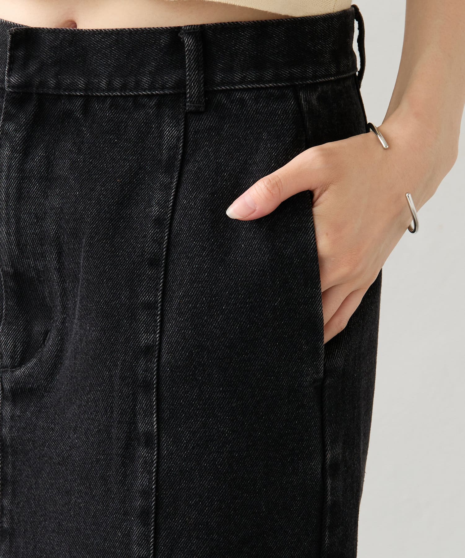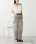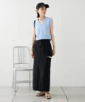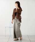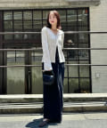 ・ハイウエストボトムなので、短丈のトップスやコンパクトなトップス合わせで綺麗めなスタイリングに!