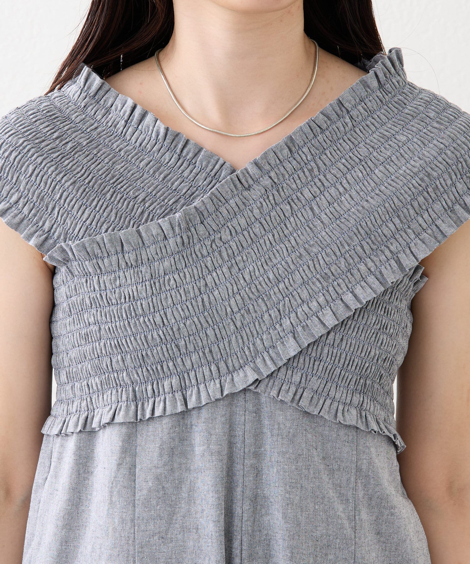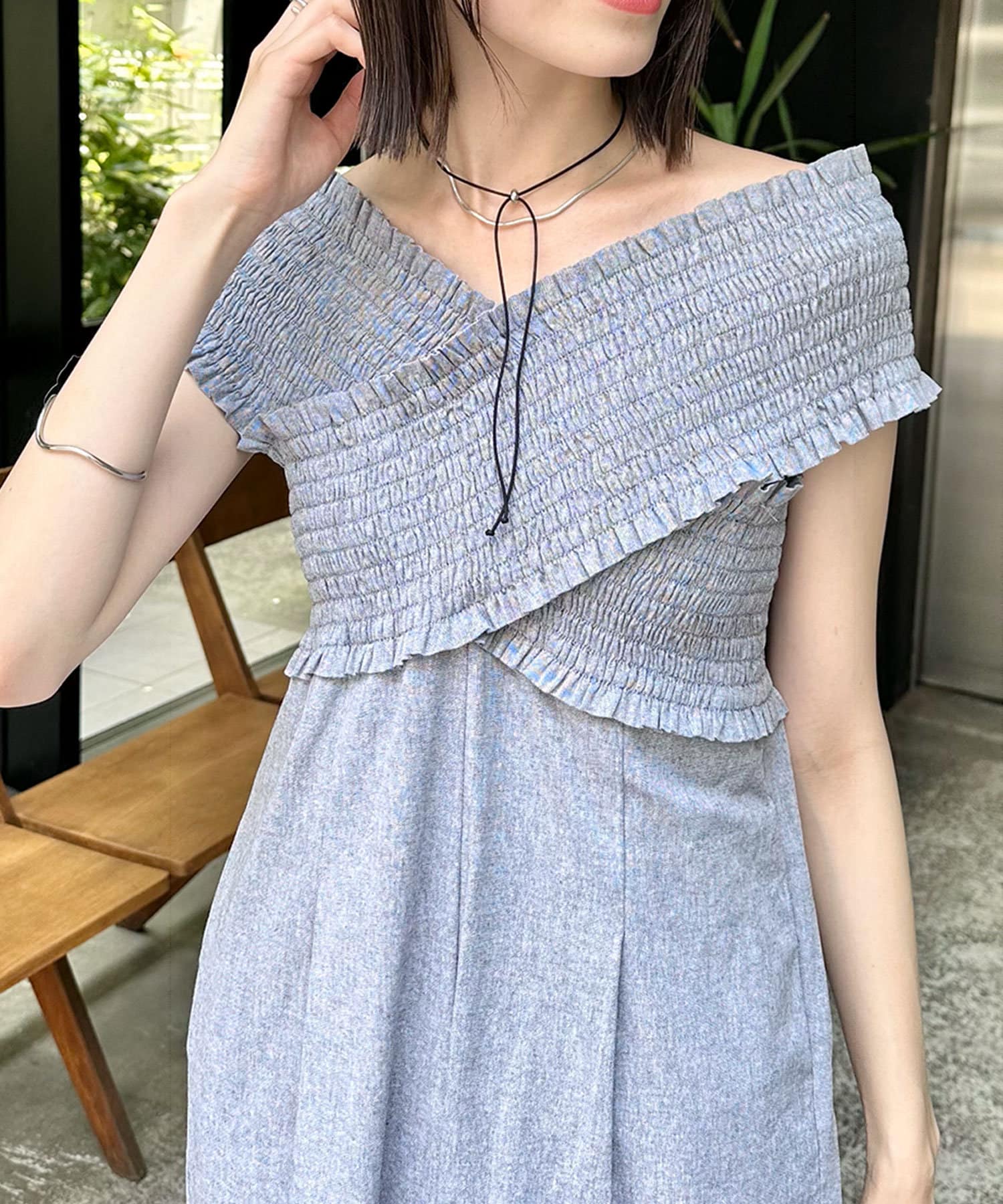 ・クロスシャーリングになったトップスが華奢にみせてくれます!