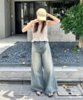 ・短丈トップスなので、ハイウエストボトムと相性良く決まります!