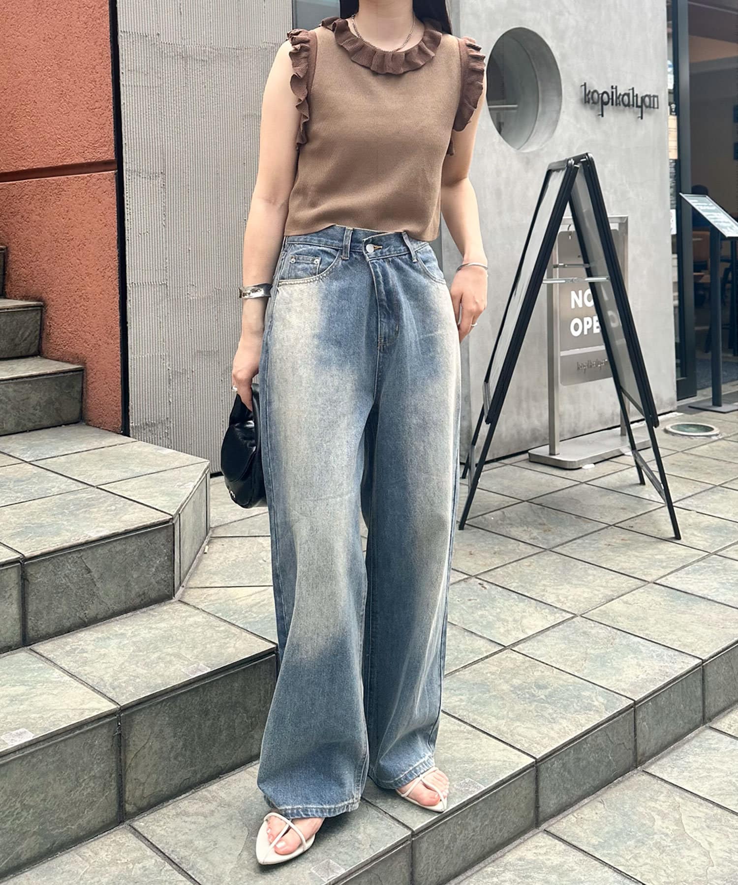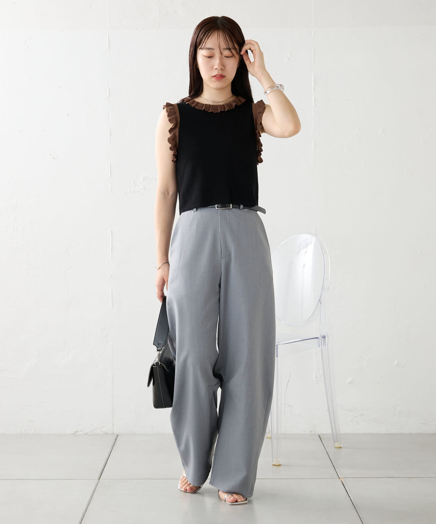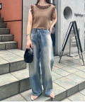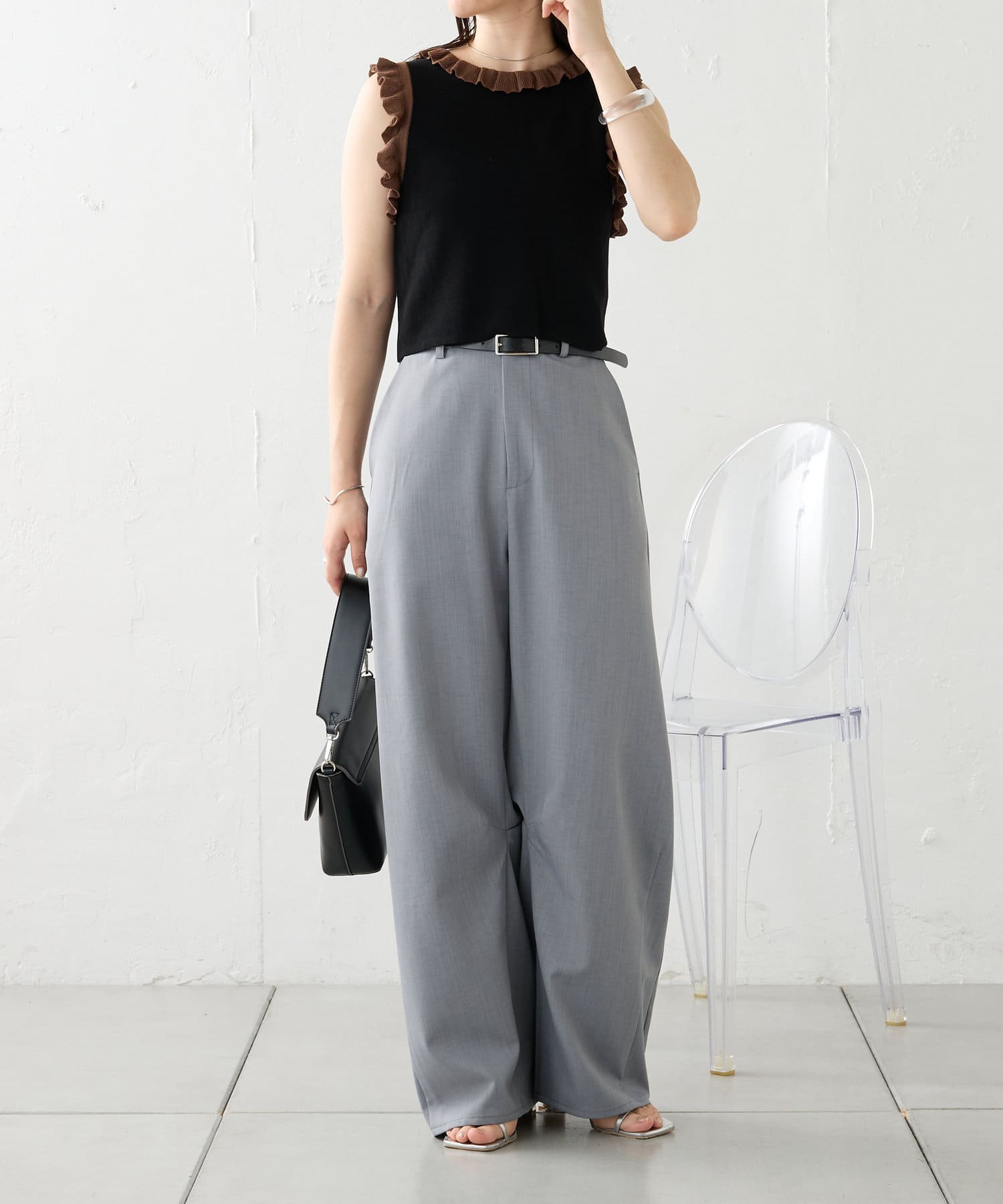 ・ハイウエストのボトム合わせでよりスタイルアップするスタイリングに!