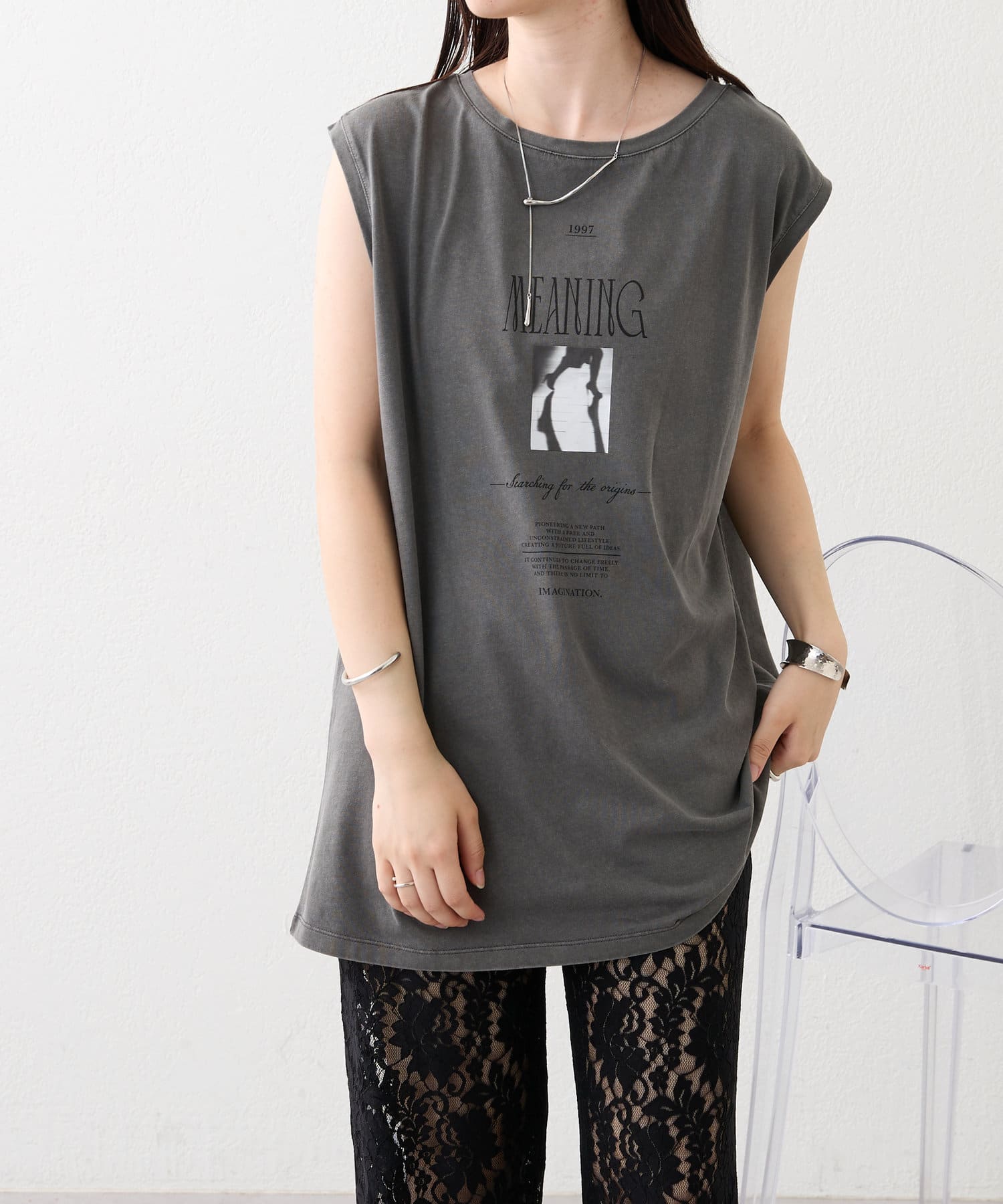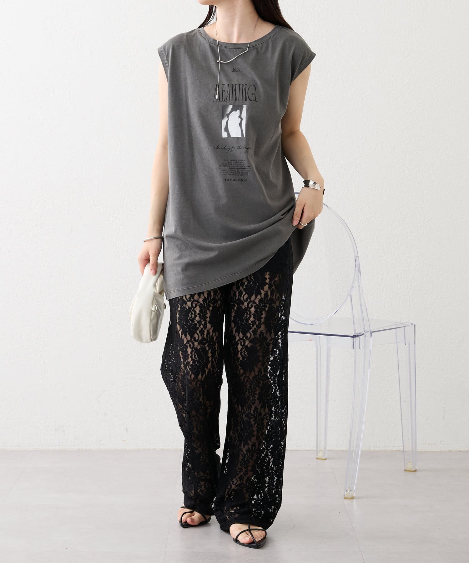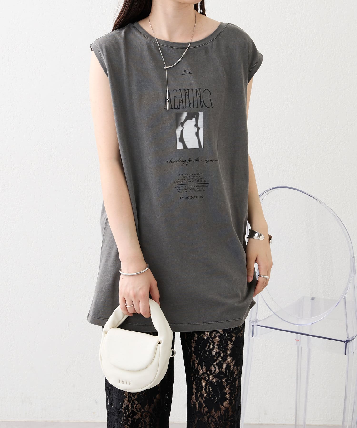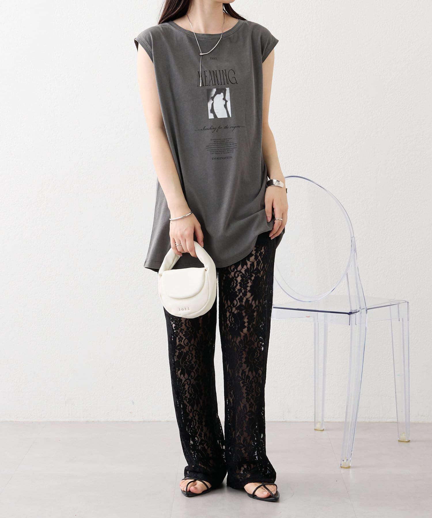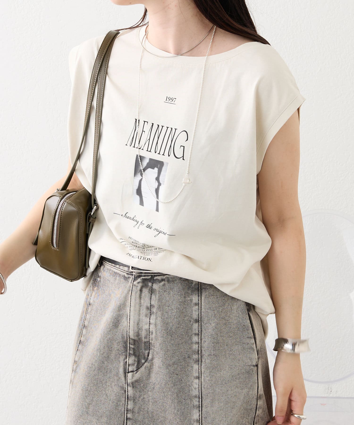 ・カジュアルなTシャツながらも、字体やプリントが女性らしさがあるのでカジュアルすぎないアイテムです。
