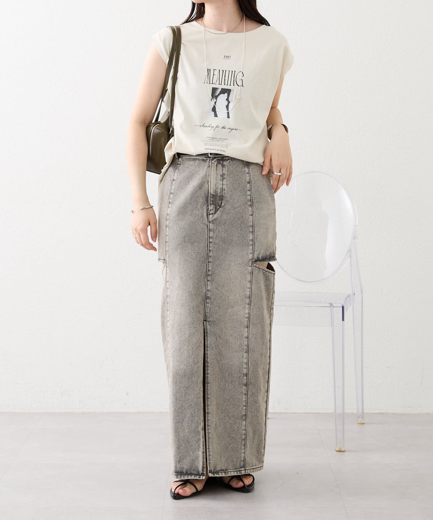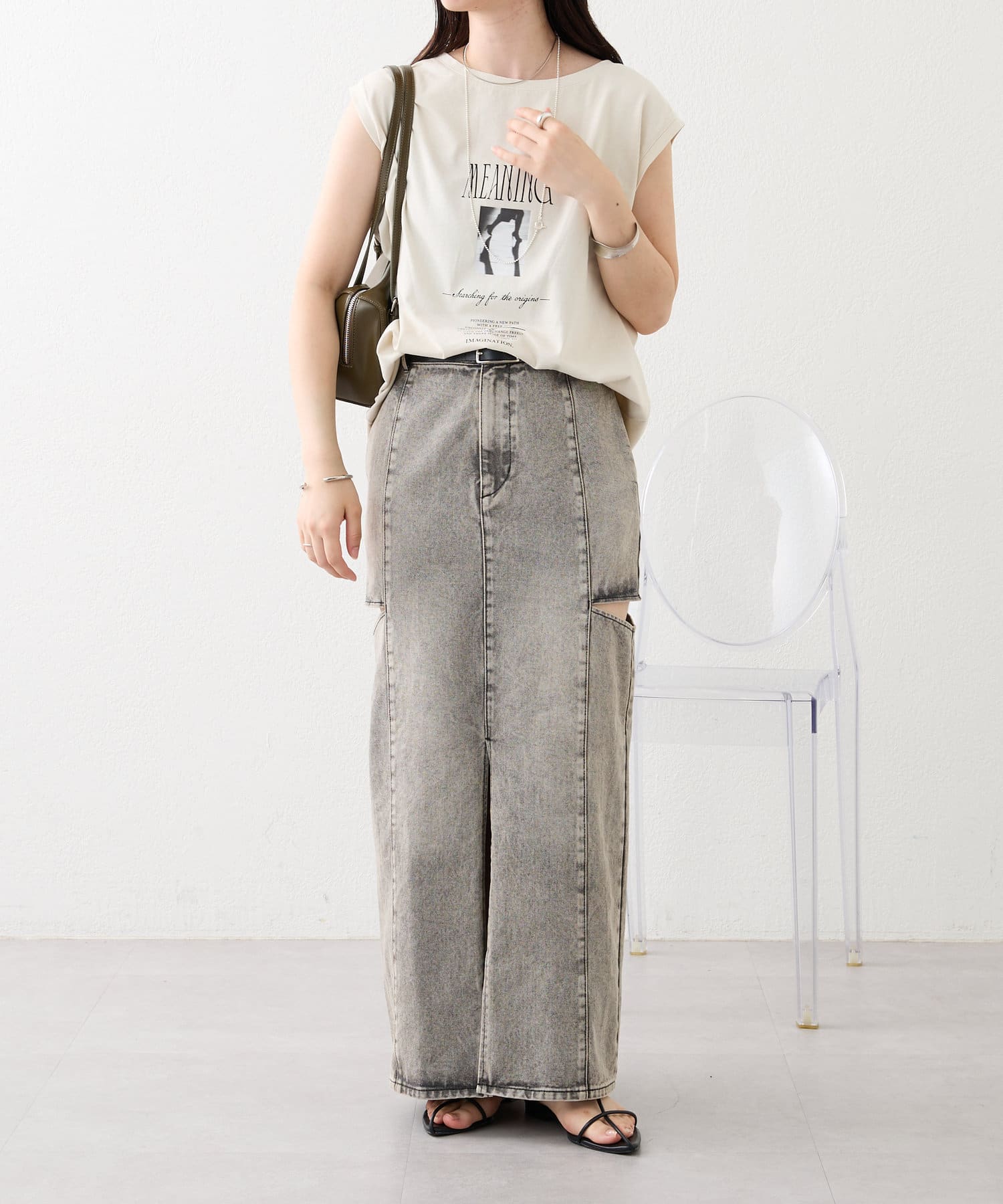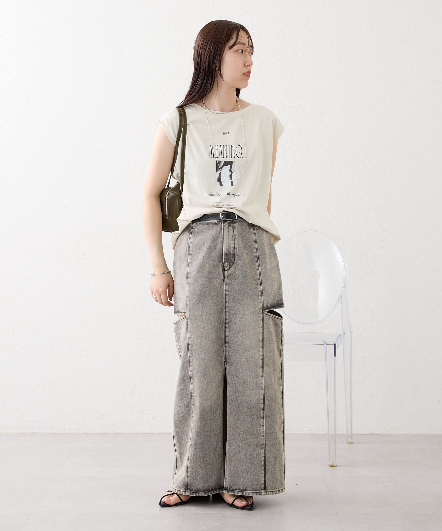 ・ノースリーブで手元が開くので、バングルやリングをつけてこなれ感を!