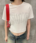 ・ハート型に描かれた文字に目を惹きつけるTシャツ。