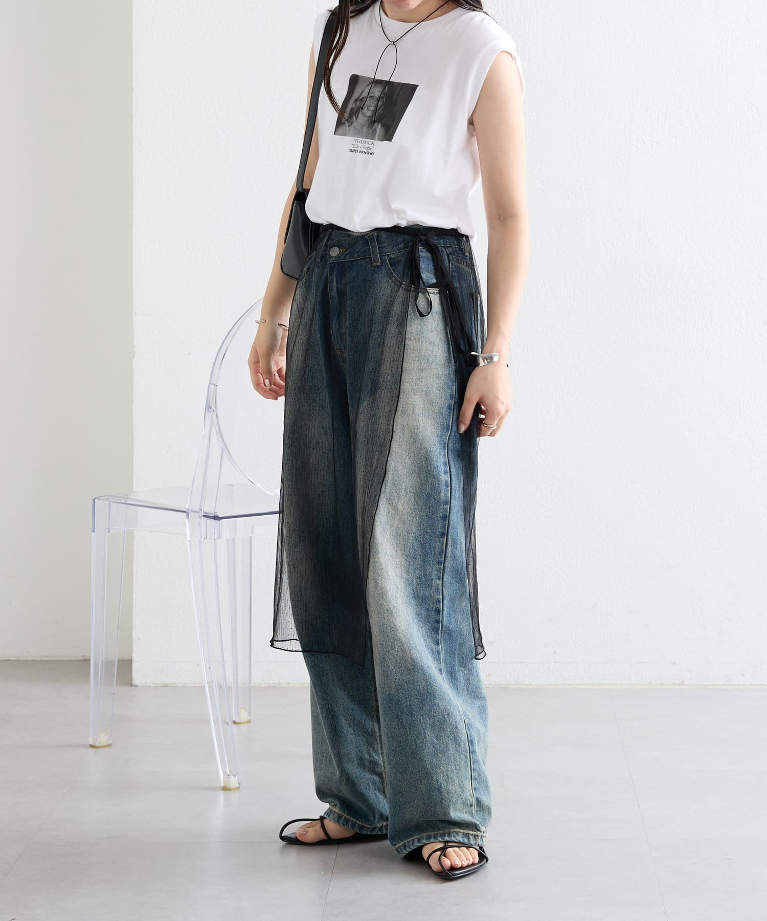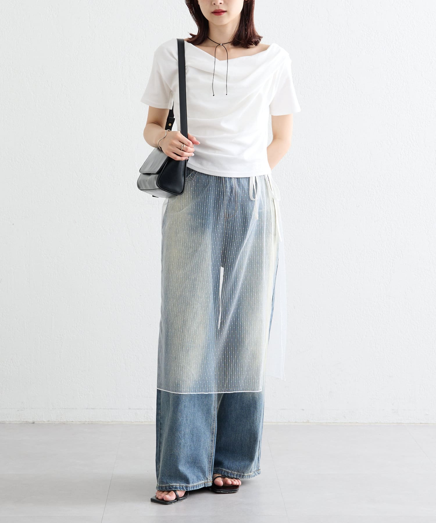 ・ボトムの上から巻いて、トレンド感あるスタイリングに!