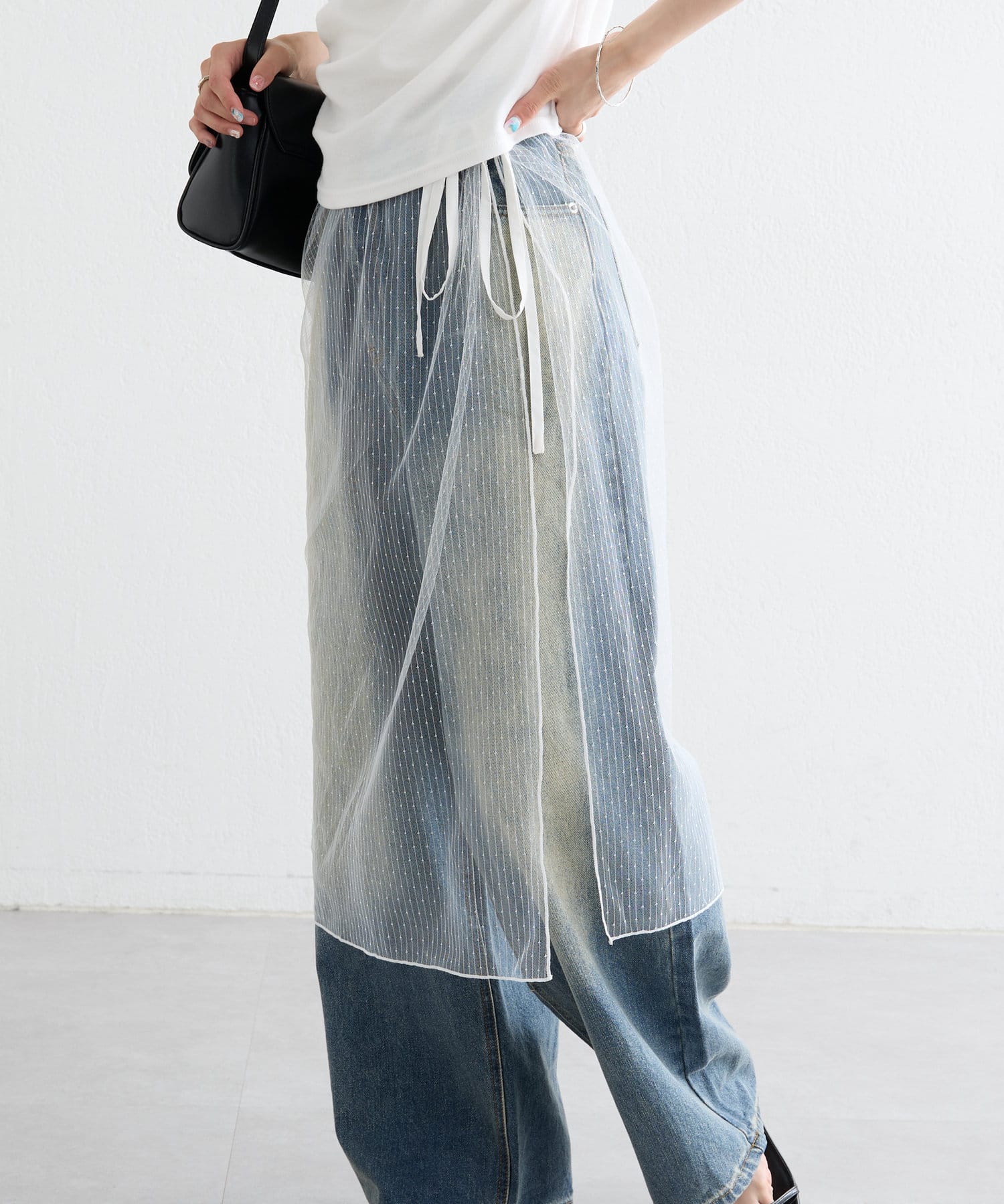 ・デニムやスラックスの上からレイヤードさせるのがおすすめ!