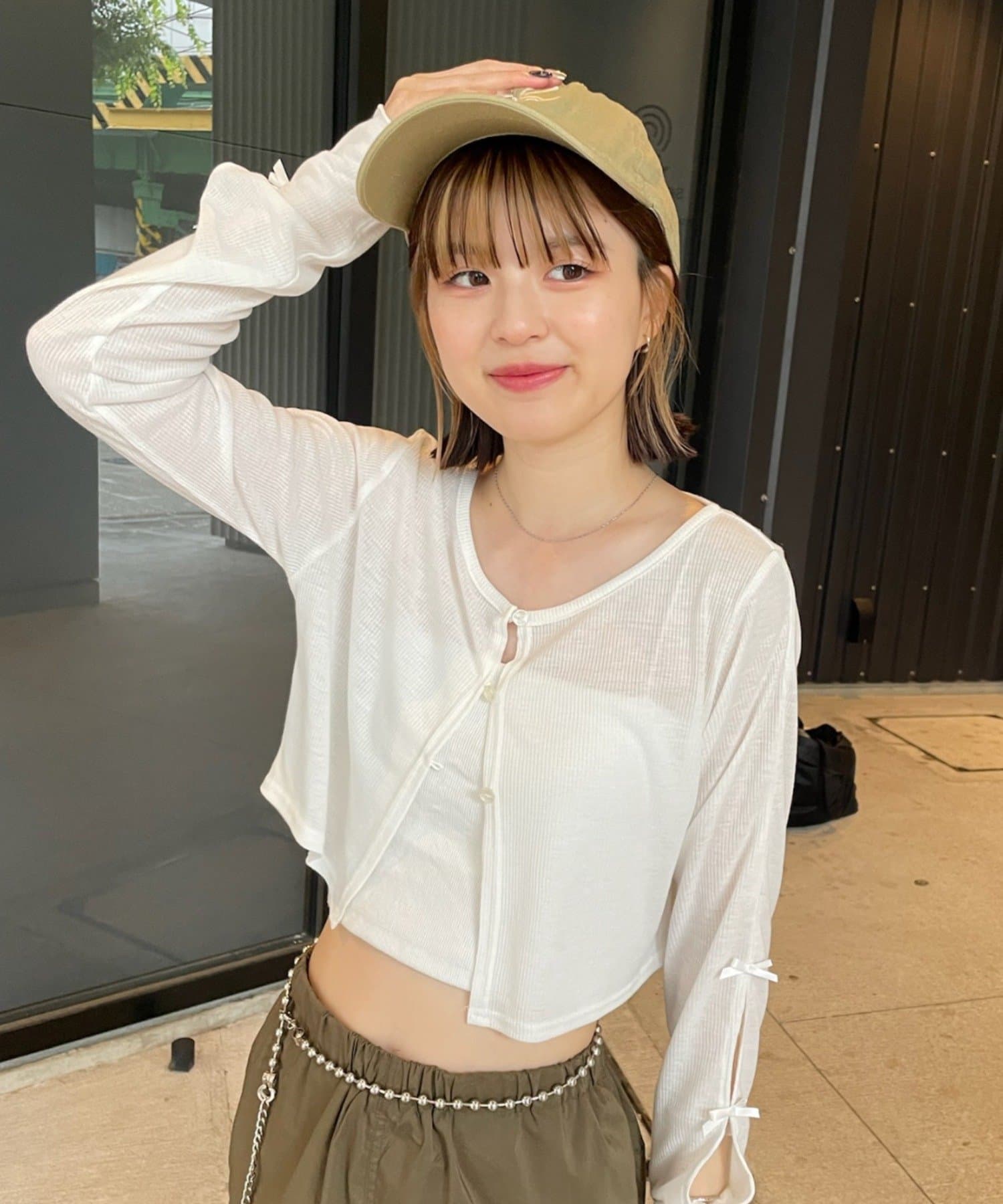 TOP > mystic > レディース > トップス > Tシャツ/カットソー > [mline]袖リボンカーディガン