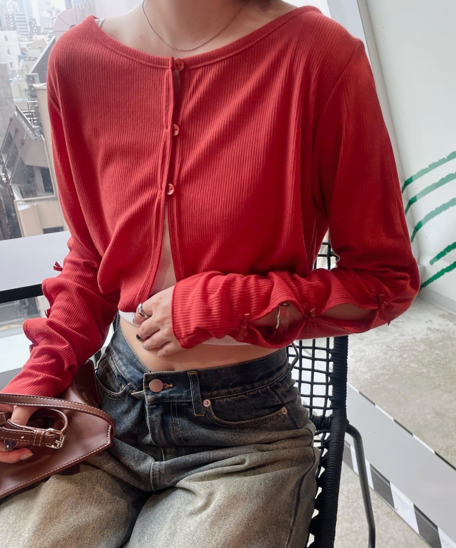 袖周りの連なったリボンがときめくカーディガンが登場!
