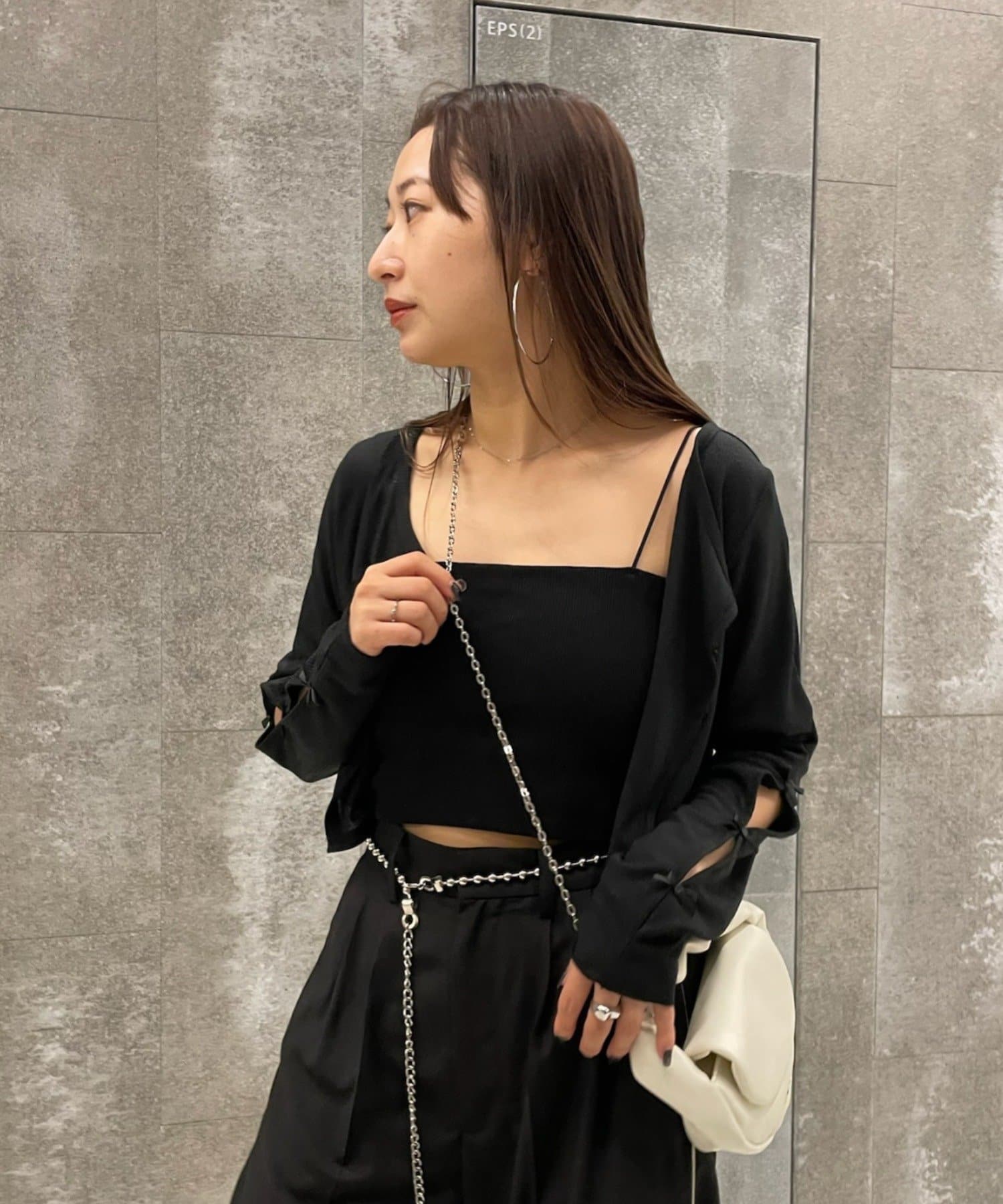 ・やや透け感と裾が開いたデザインのトップスなので、ベーシックカラーはインナーのカラー使いも楽しめます!
