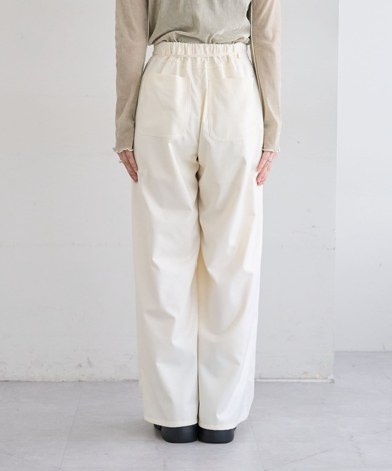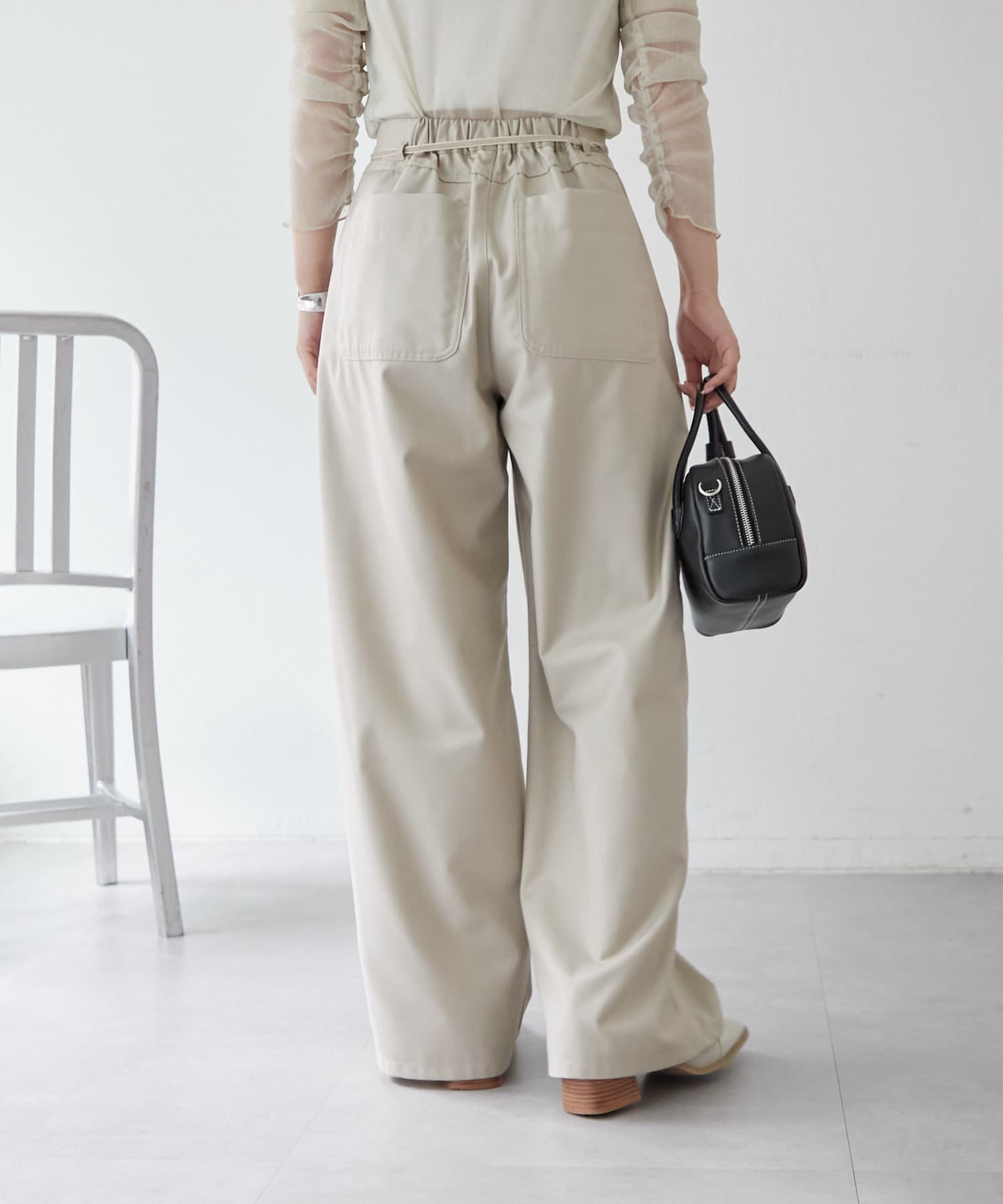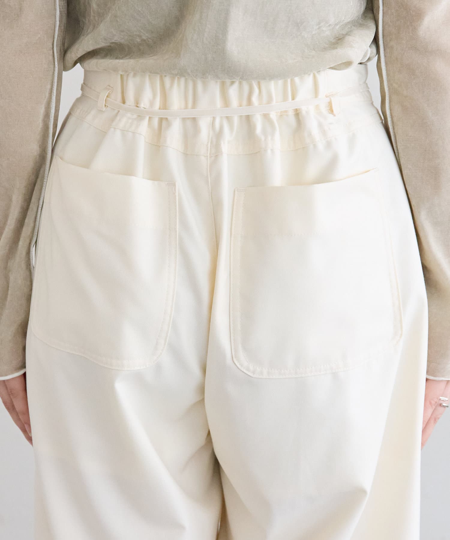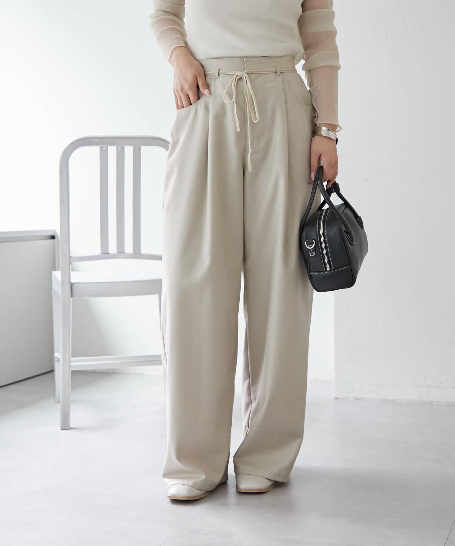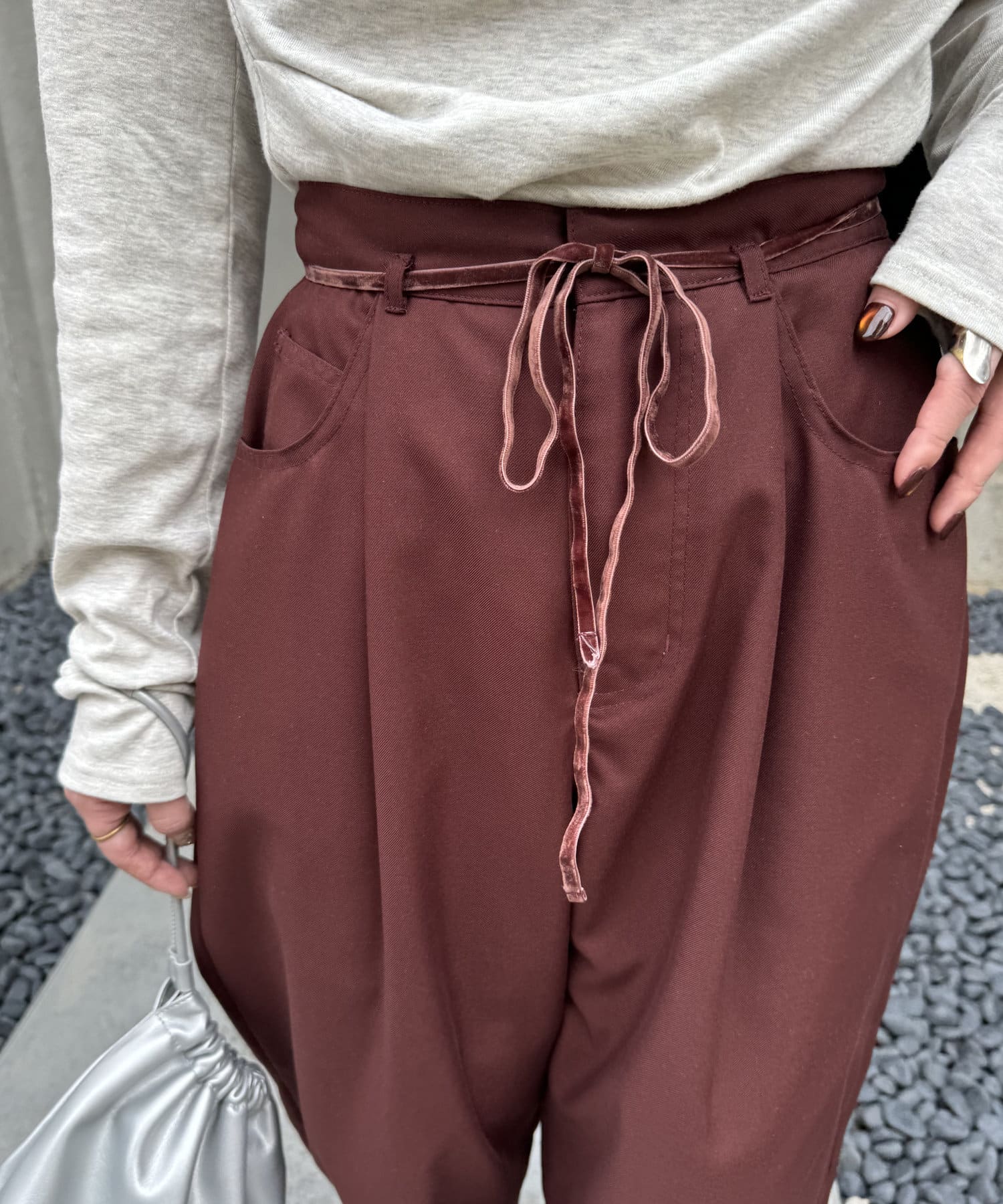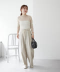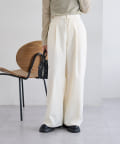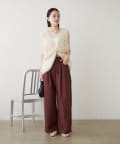 ・ウエストのリボンがワンポイントになるスラックス。