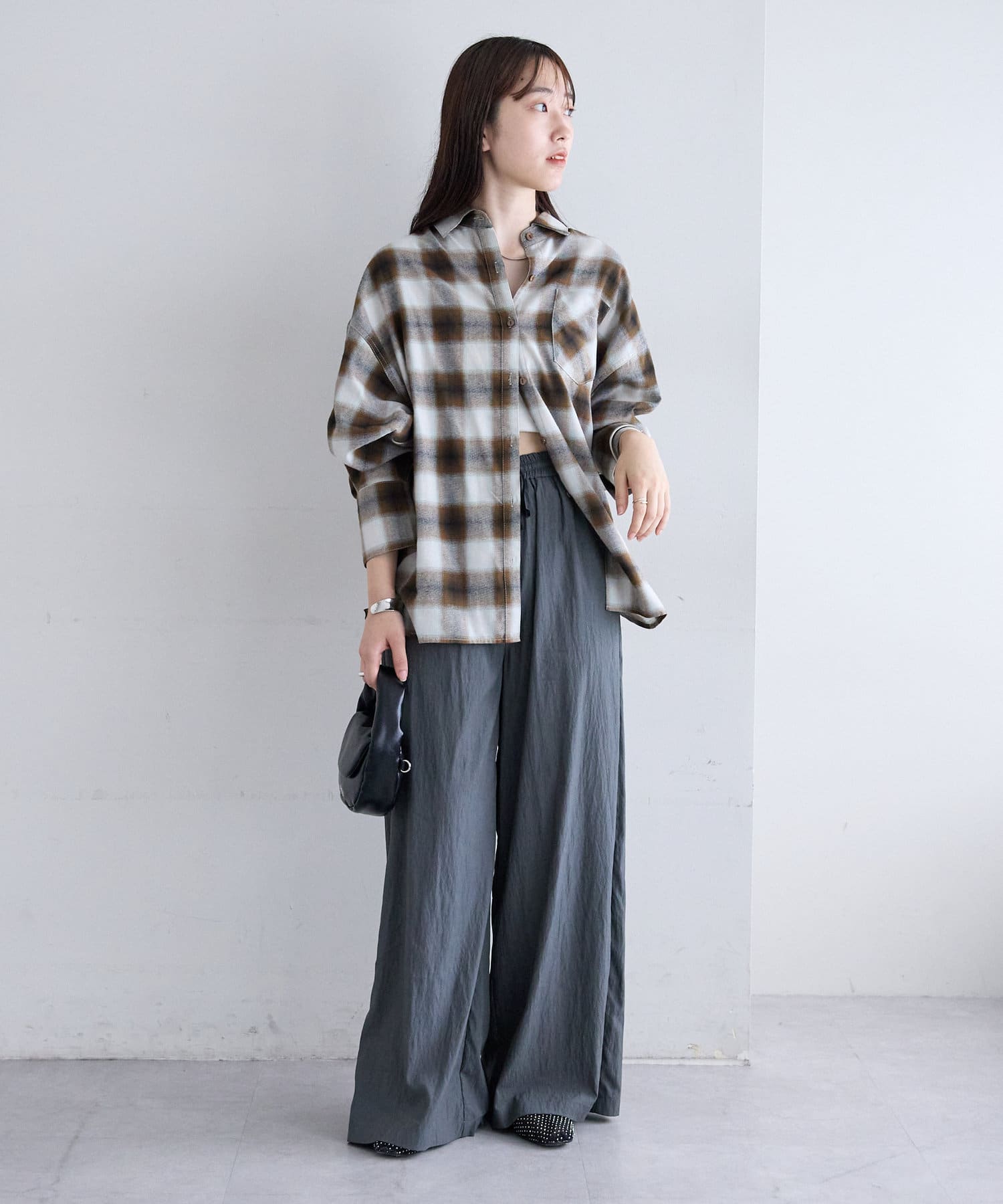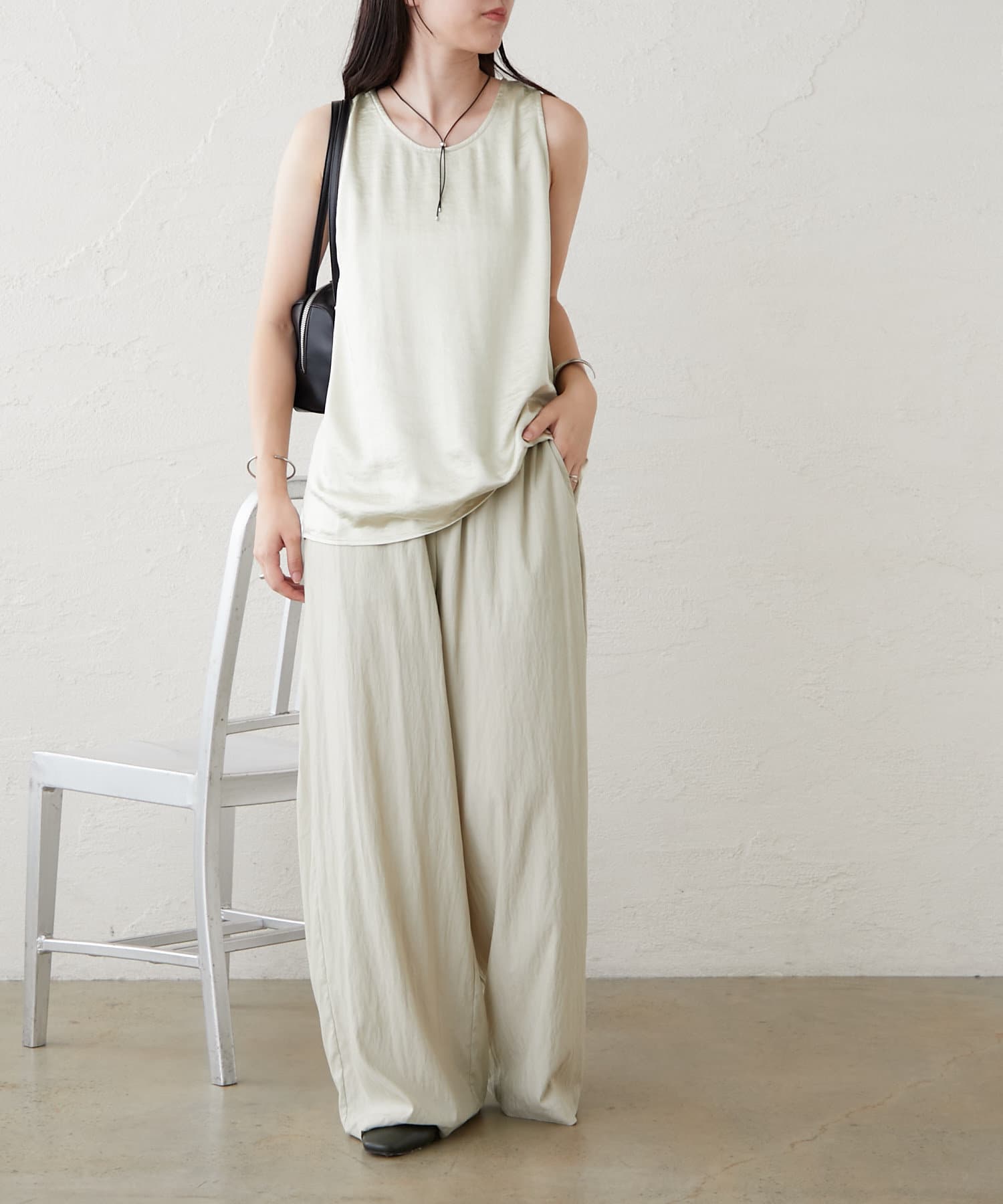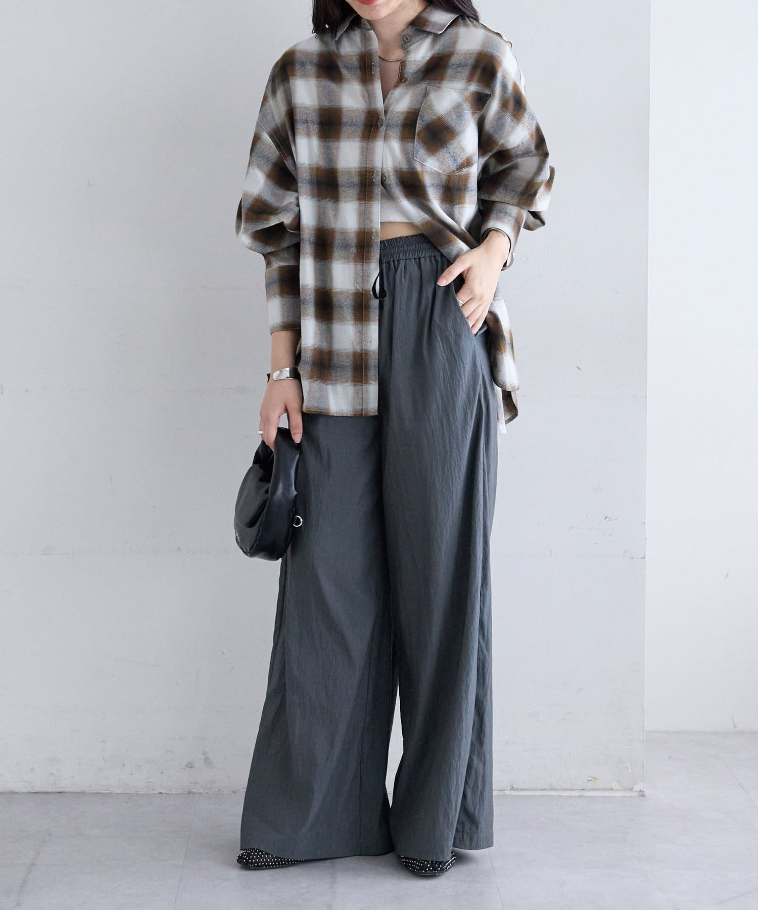 ・サラッとしたトップス合わせで大人な雰囲気のスタイリングに。