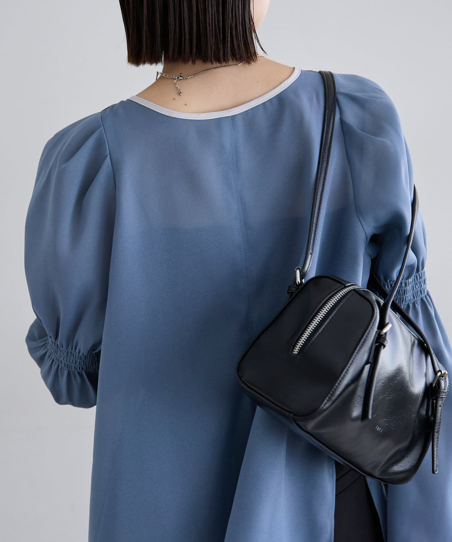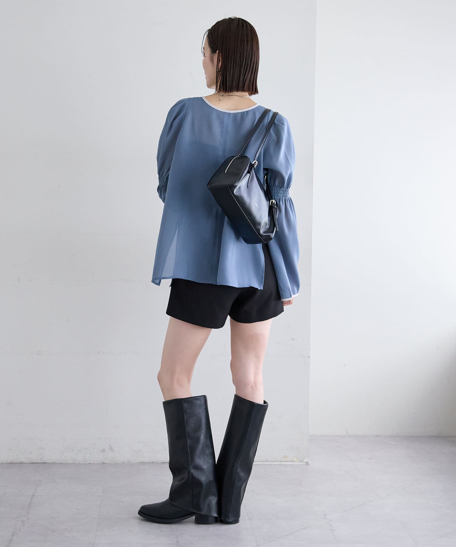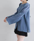 ・ややボリュームのある肩とフレアに広がった袖口が女性らしさをプラス!