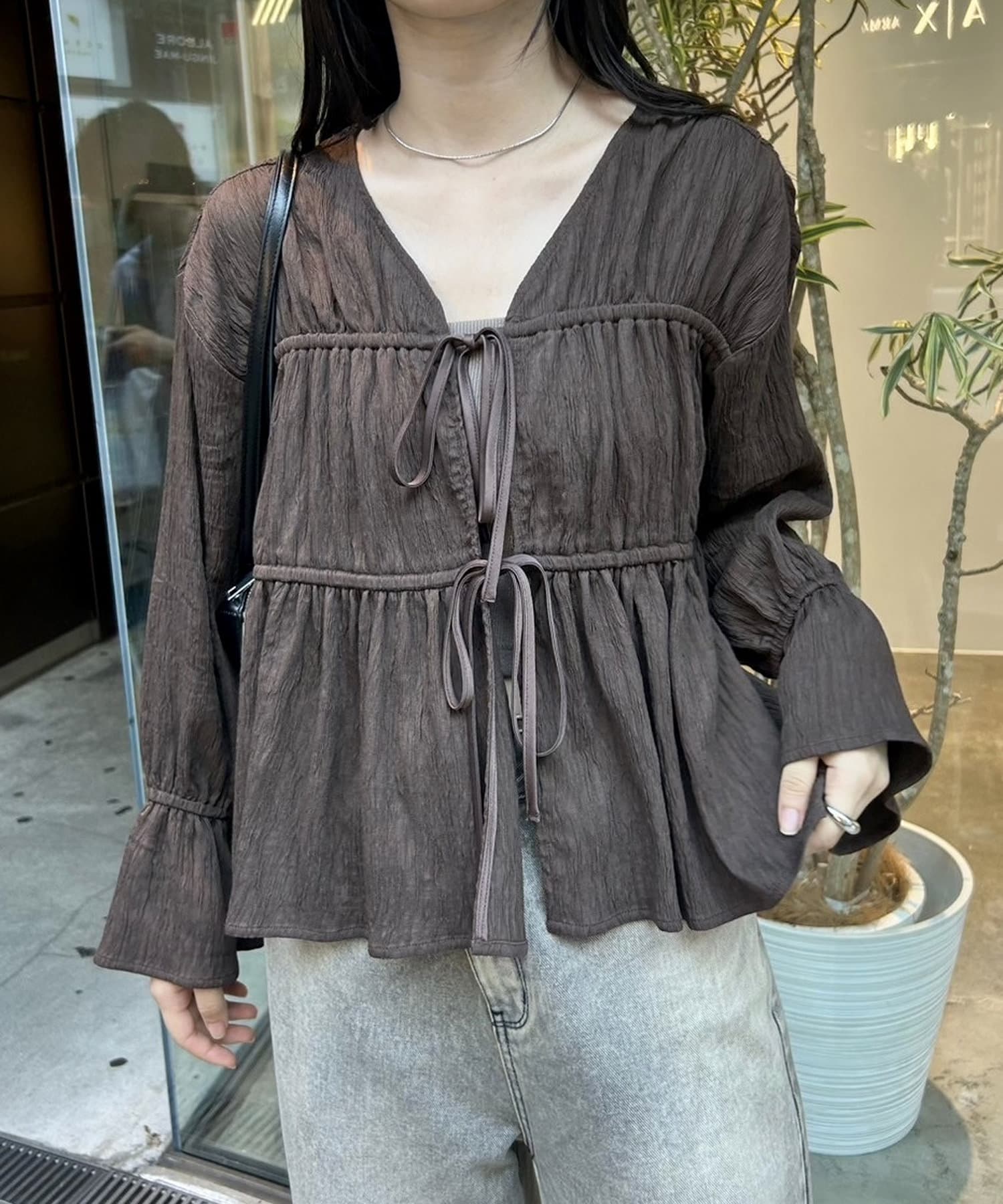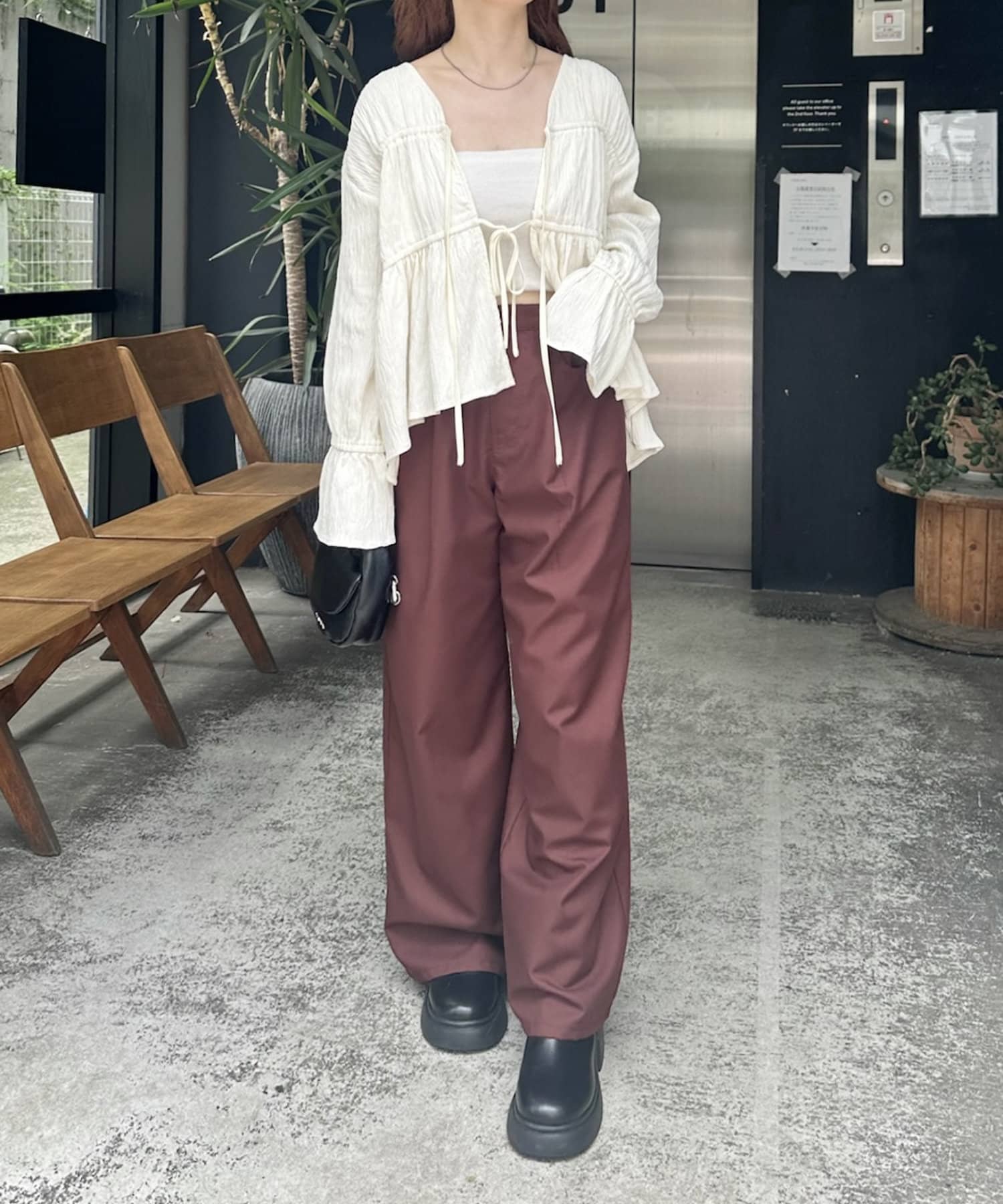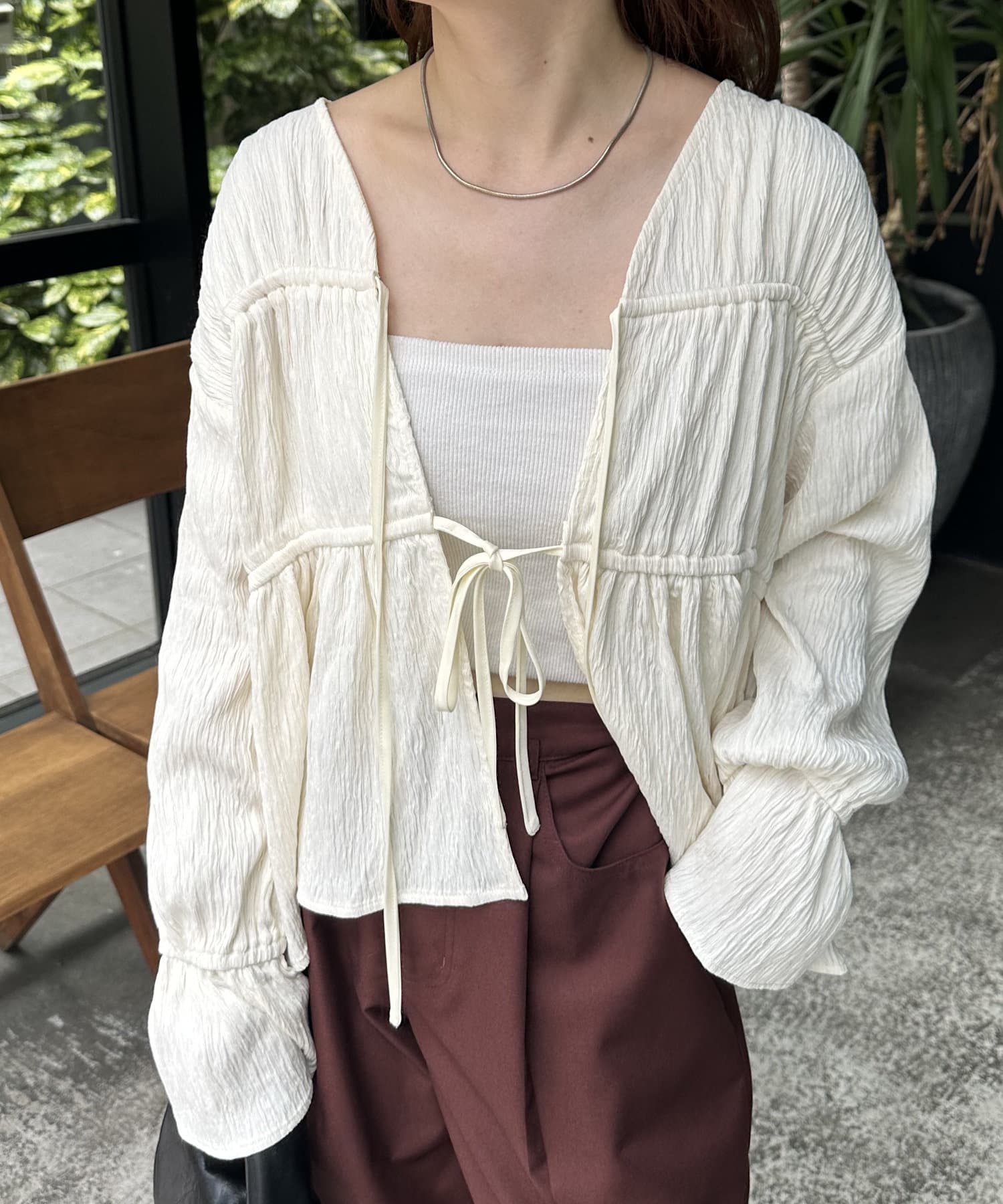 ・袖口の広がるデザインとフロントのリボンで、ふわっと可愛いらしい印象に◎