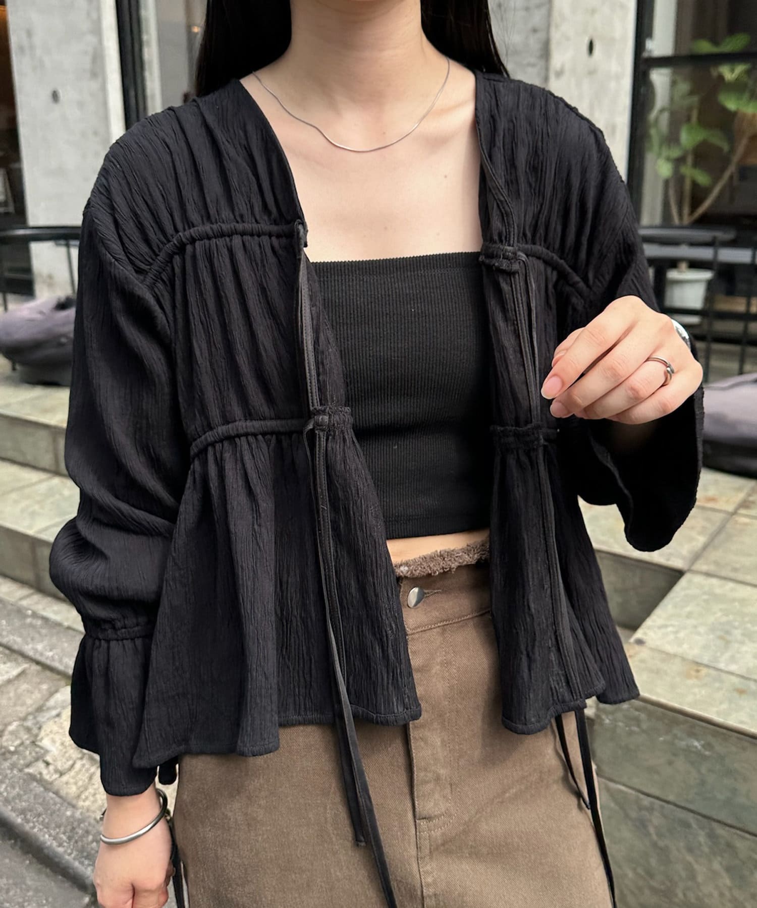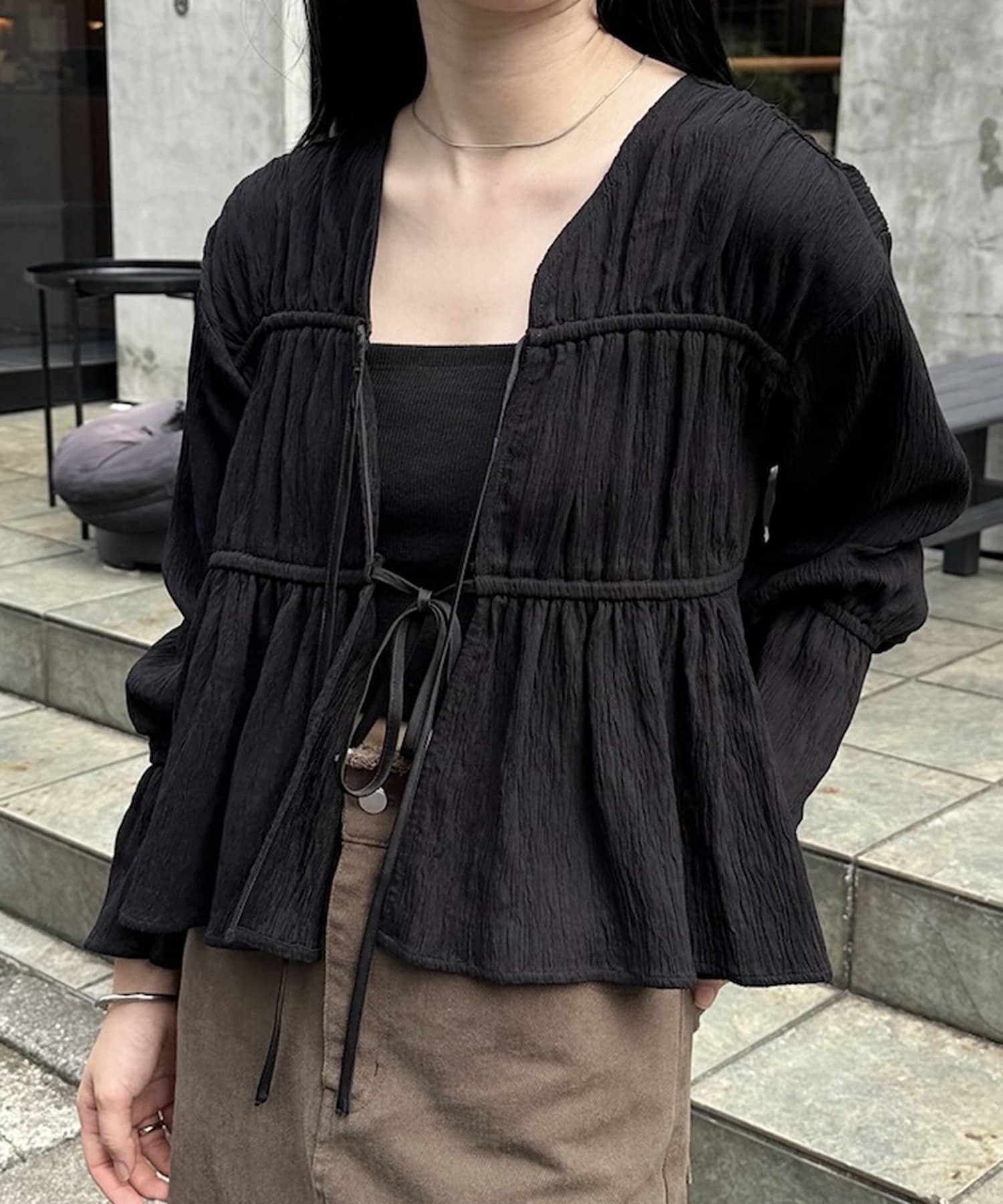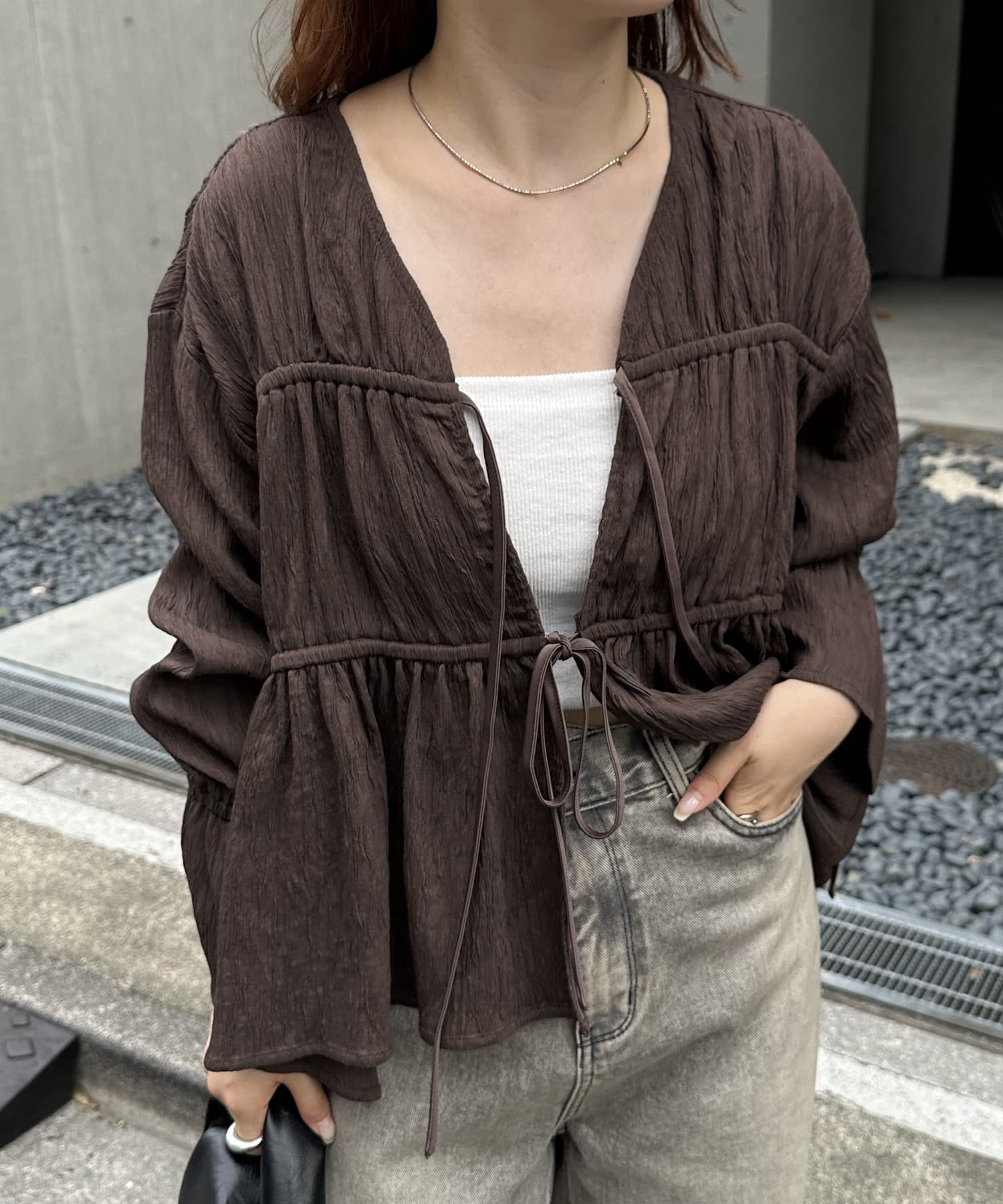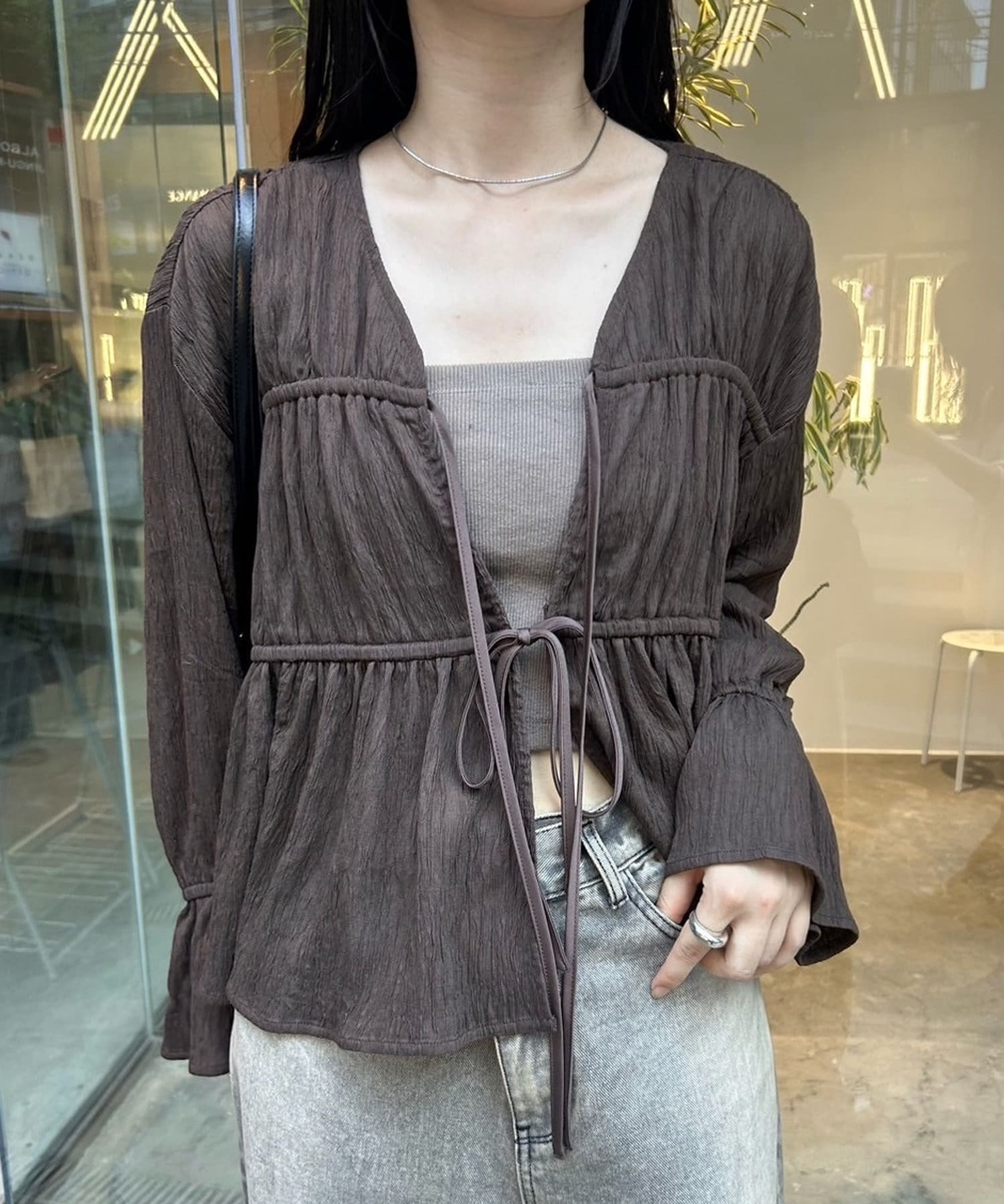 ・袖口の広がるデザインとフロントのリボンで、ふわっと可愛いらしい印象に◎
