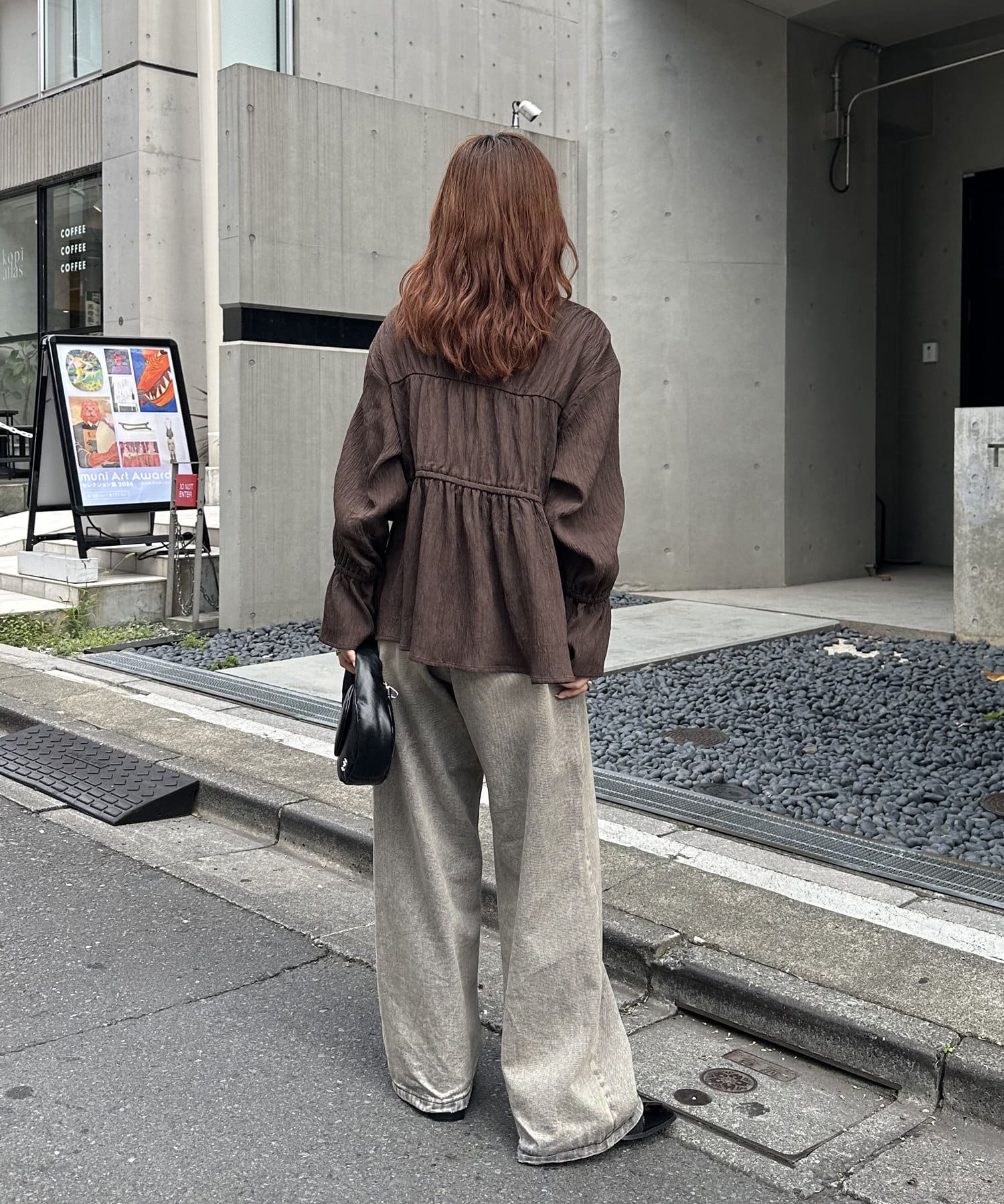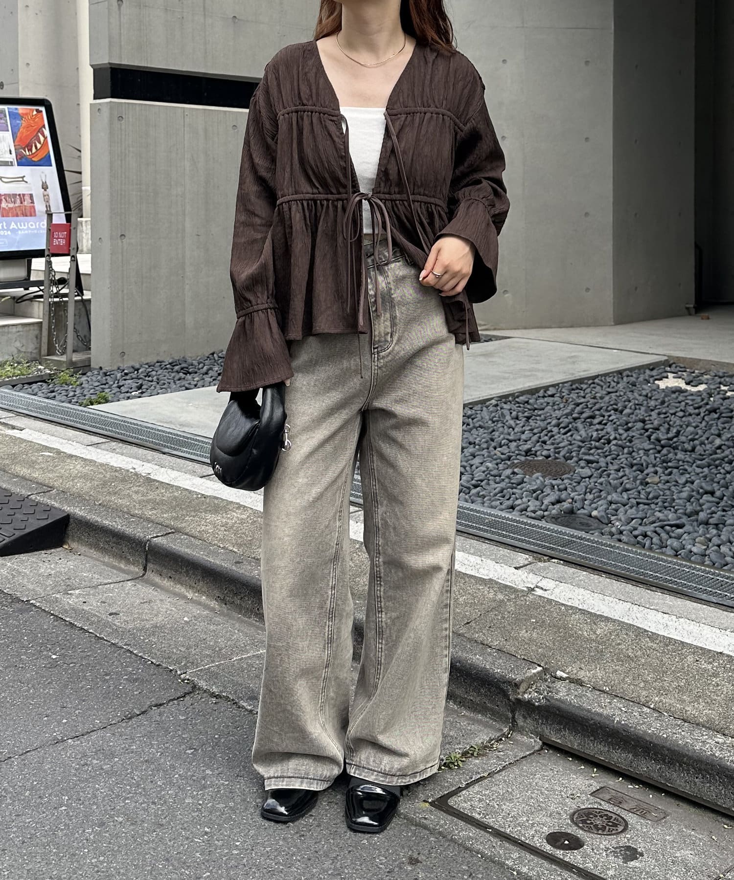 ・袖部分と裾が広がる華やかなデザインなので、シンプルなボトムと相性抜群◎