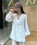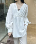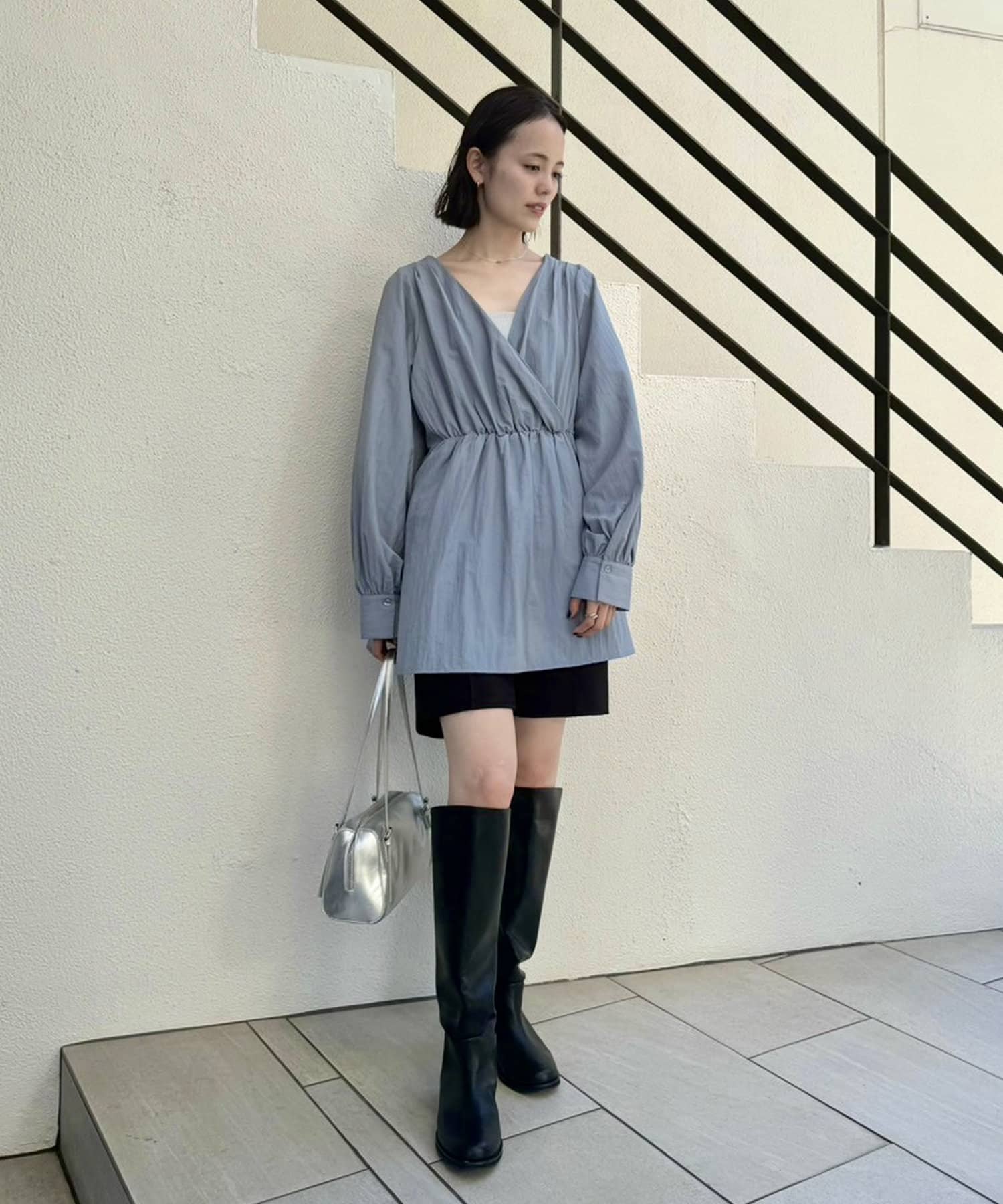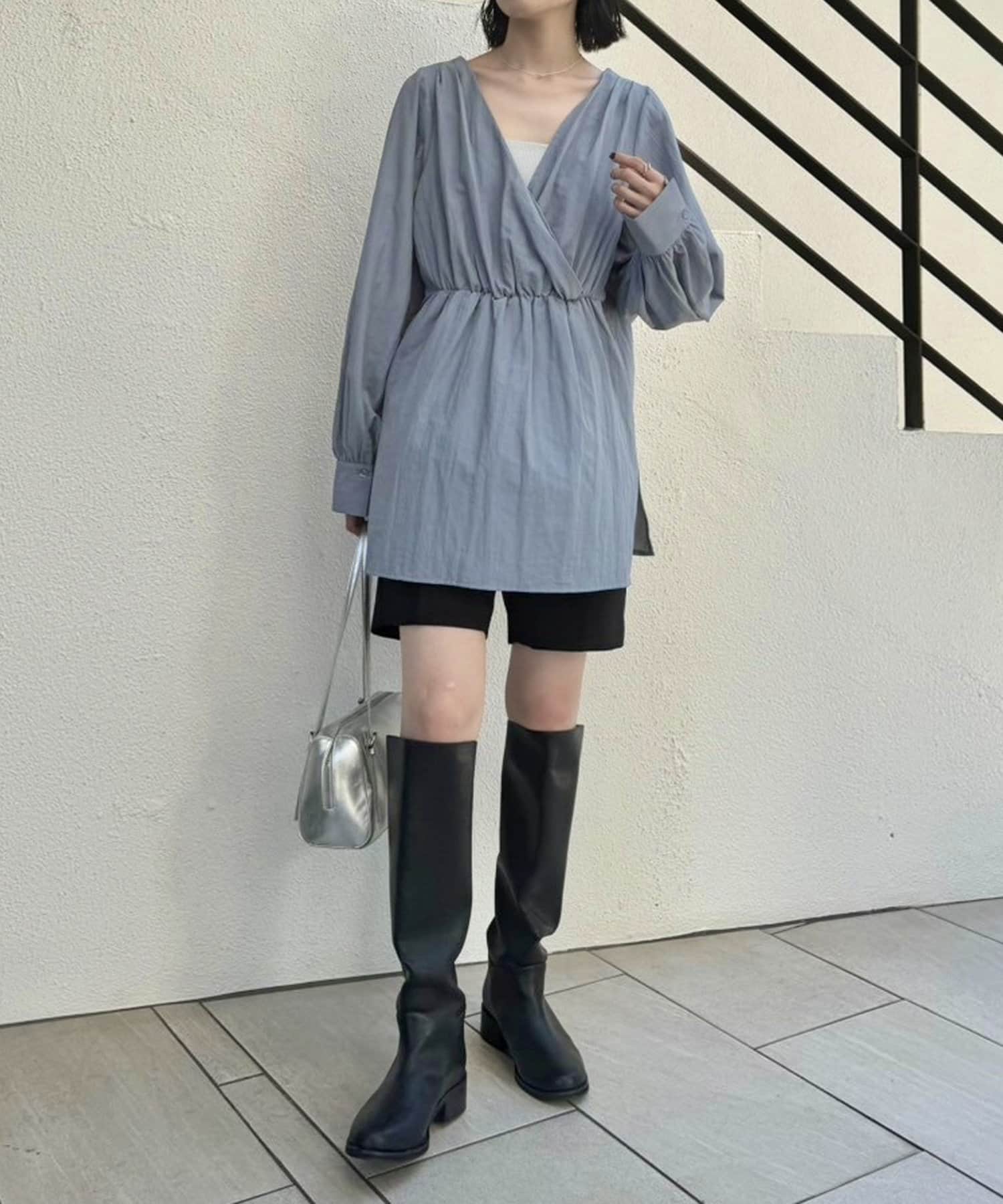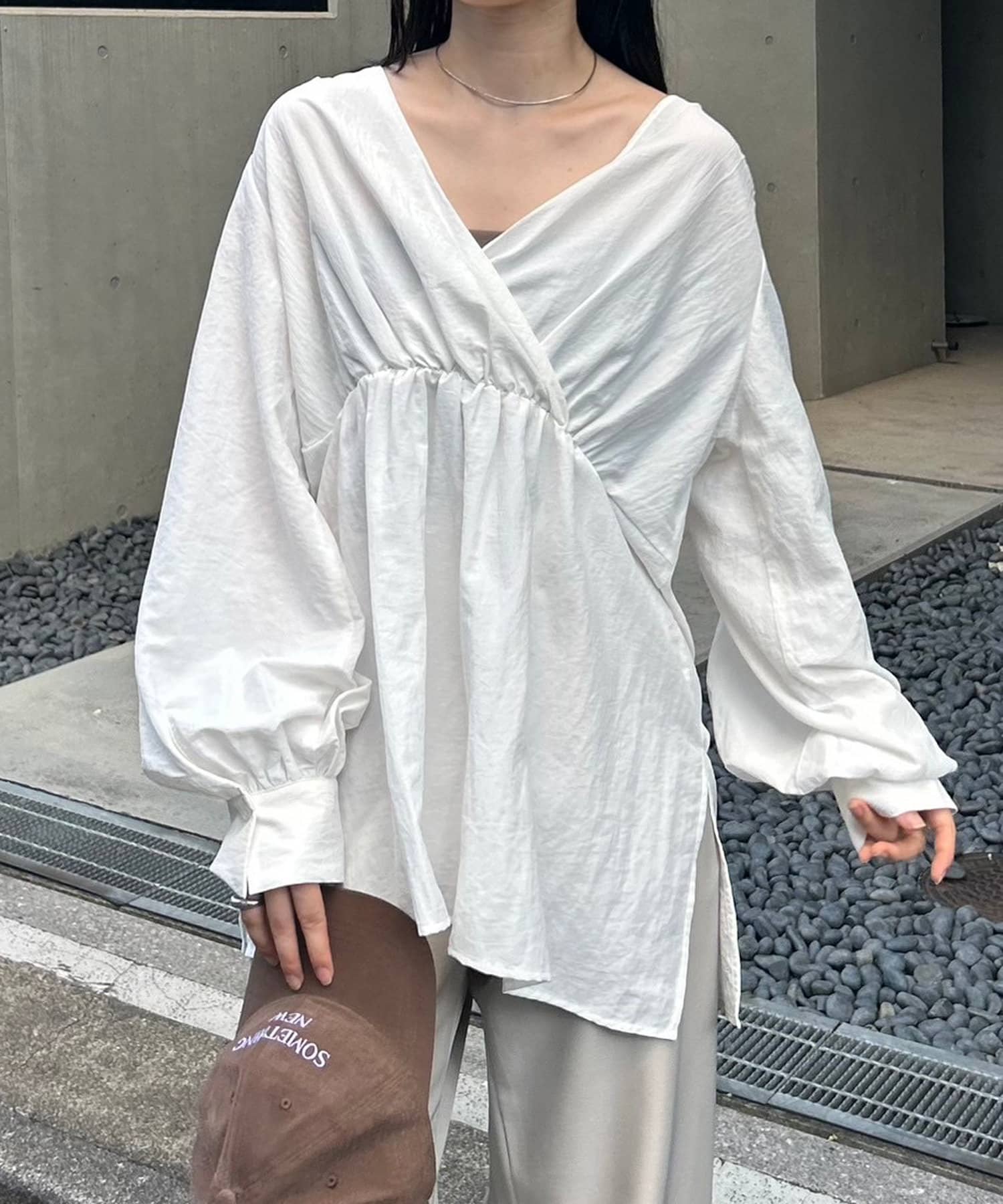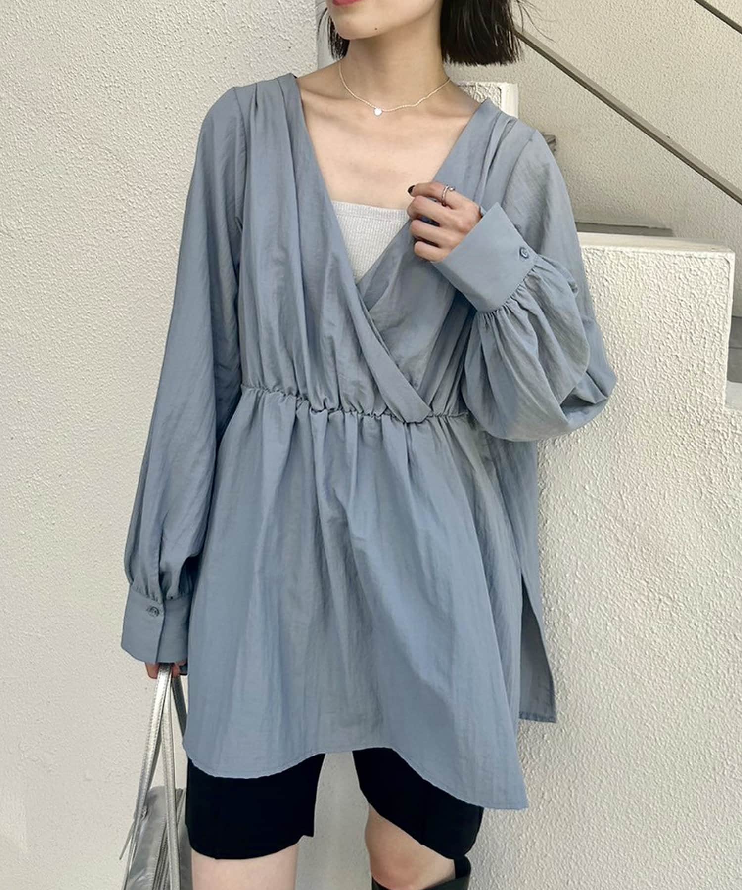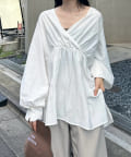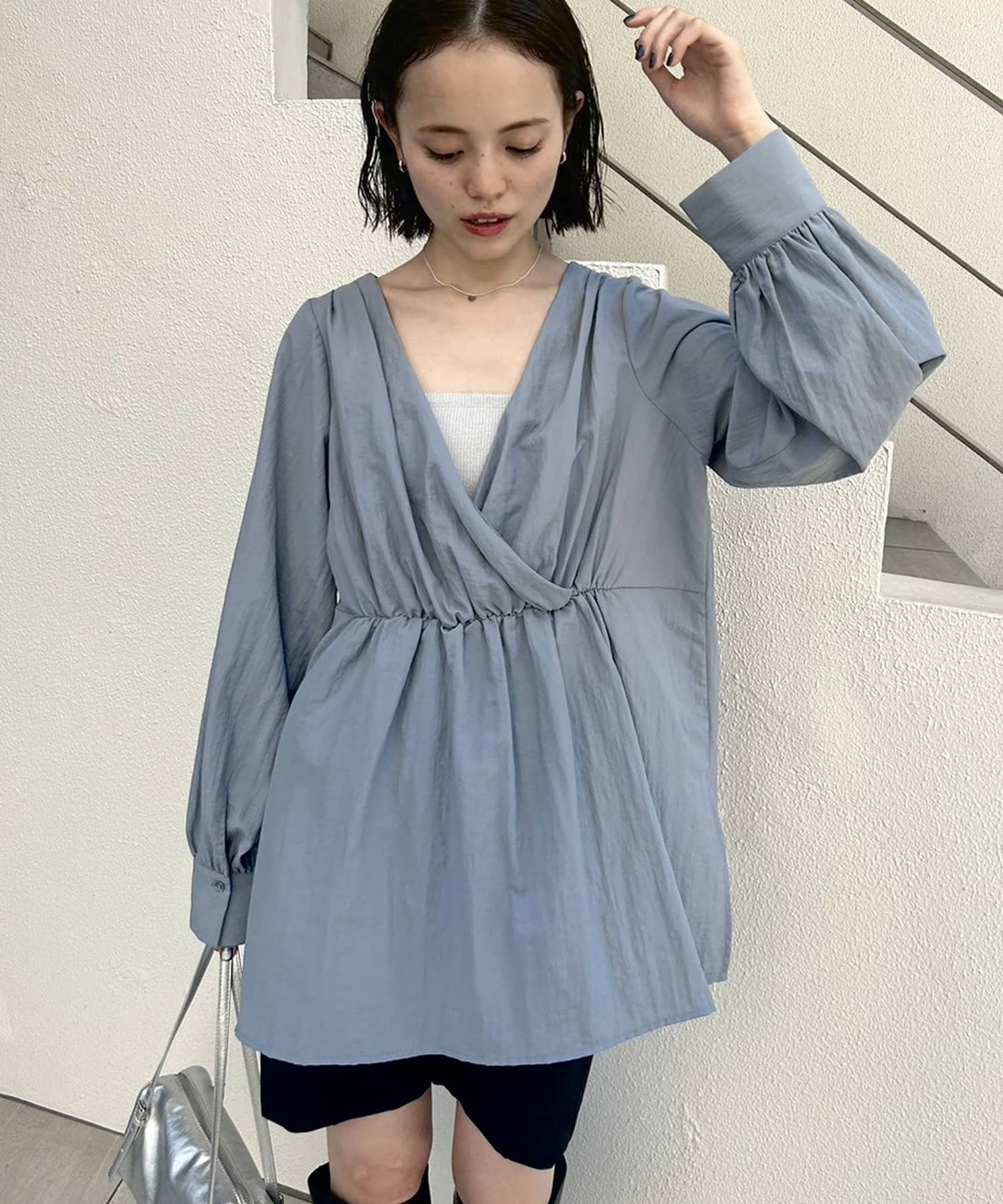 ・カシュクールデザインがふんわり女性らしい印象のブラウス。