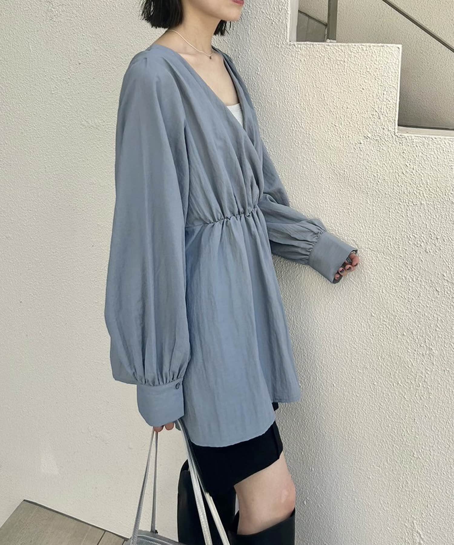 ・カシュクールデザインがふんわり女性らしい印象のブラウス。