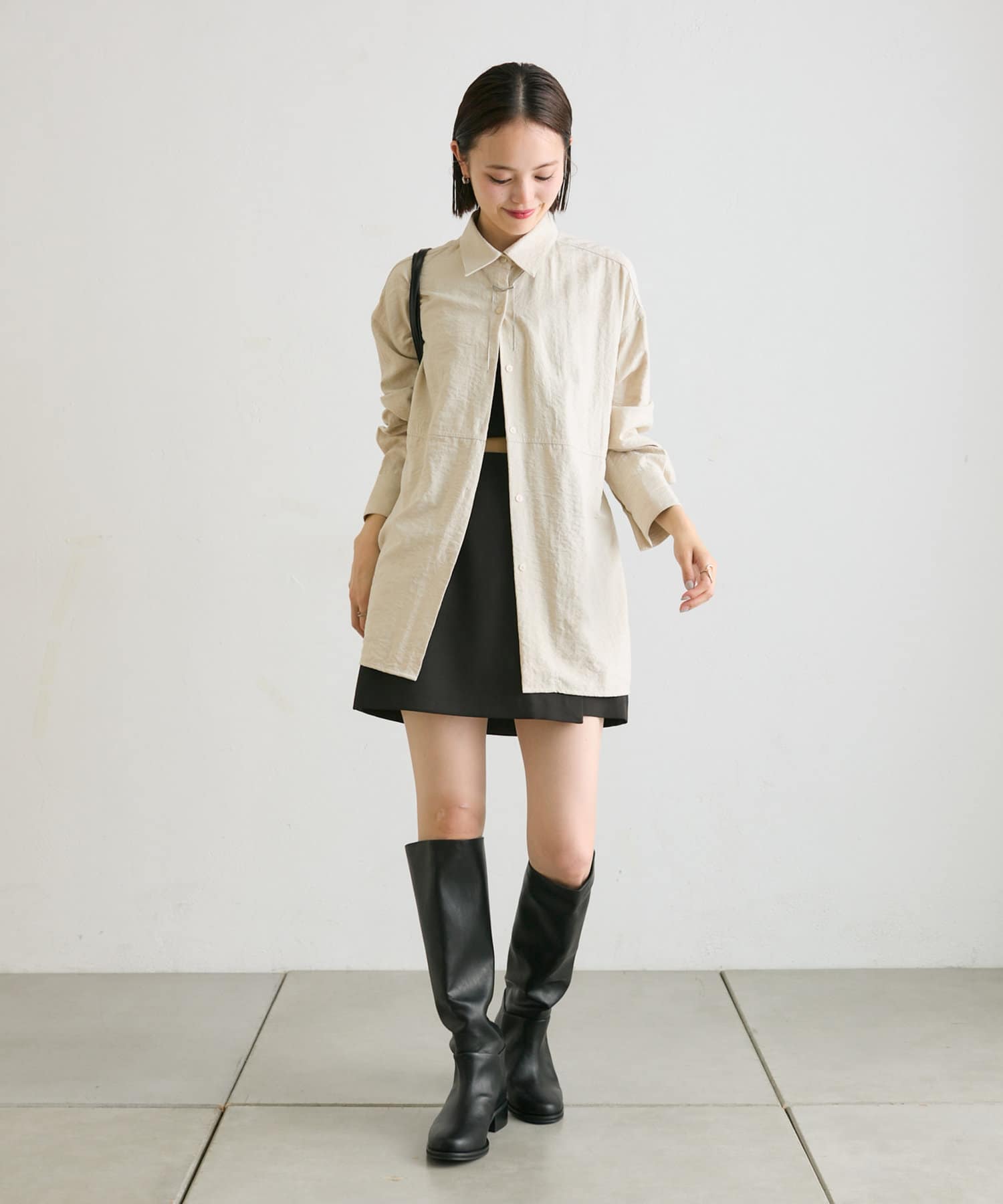 ・スラックス合わせのヘルシーな着こなしから、ミニ丈×ロングブーツ合わせもおすすめ◎