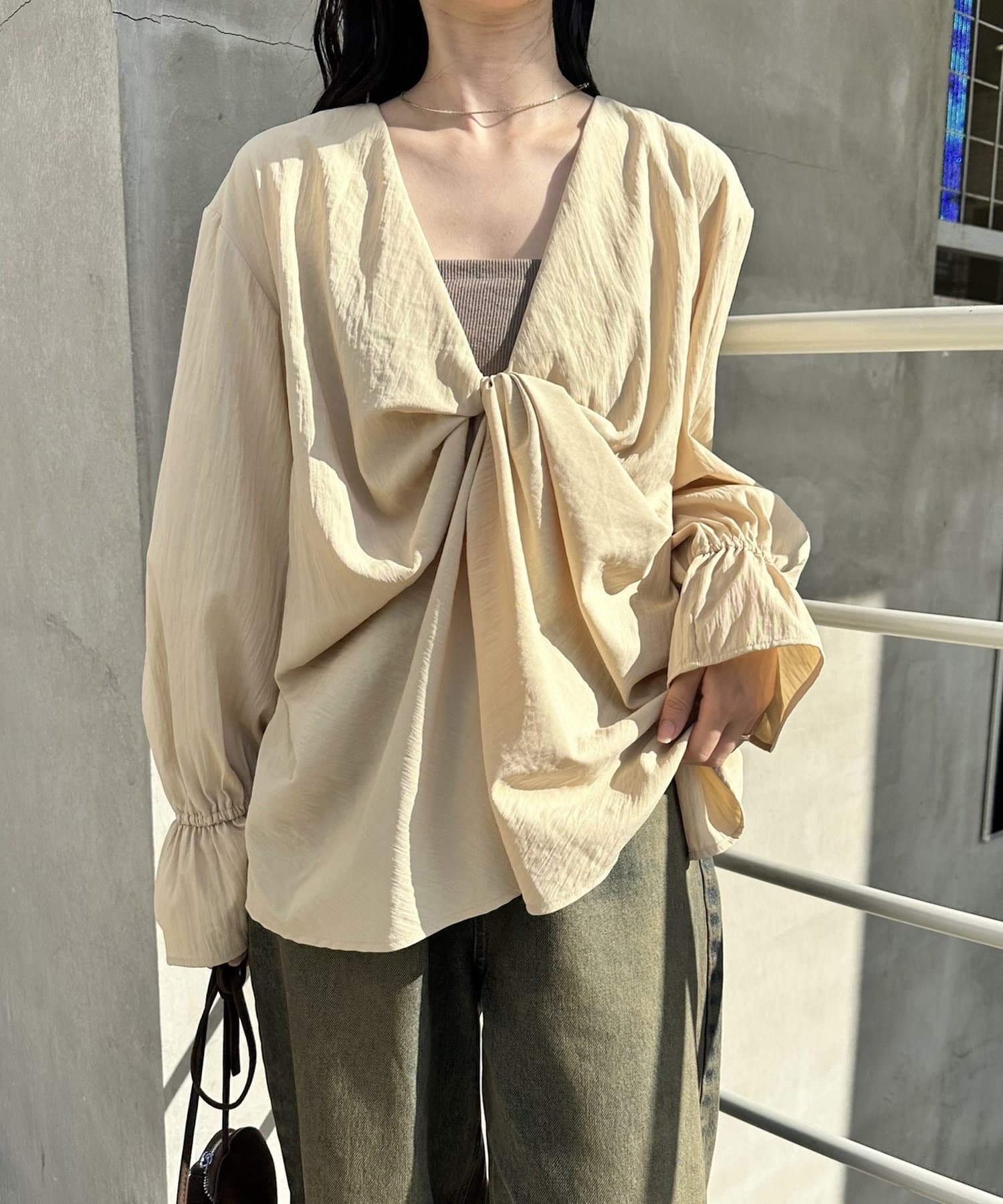 ・バックシャンのデザインで立体感を出してくれるブラウス。