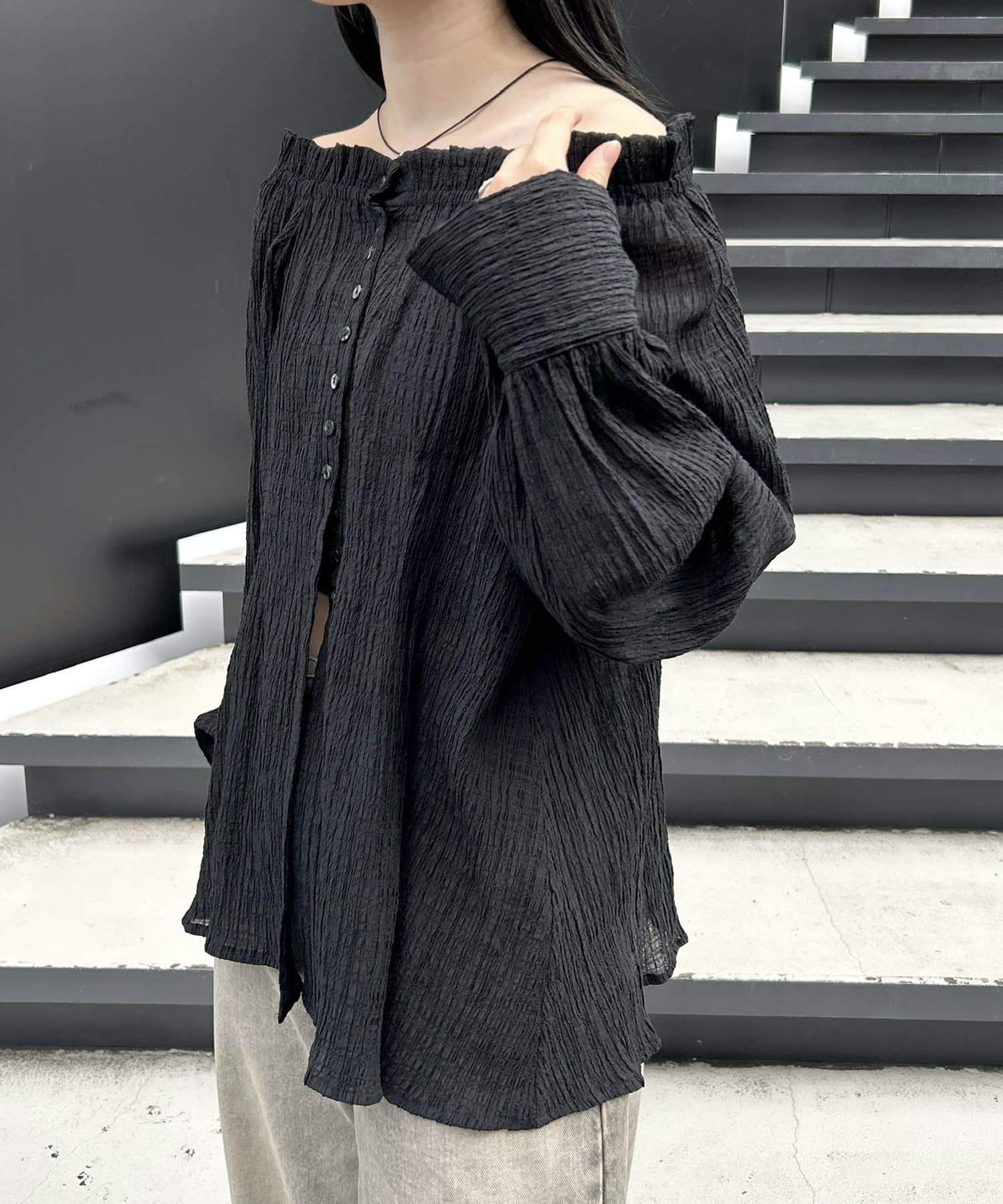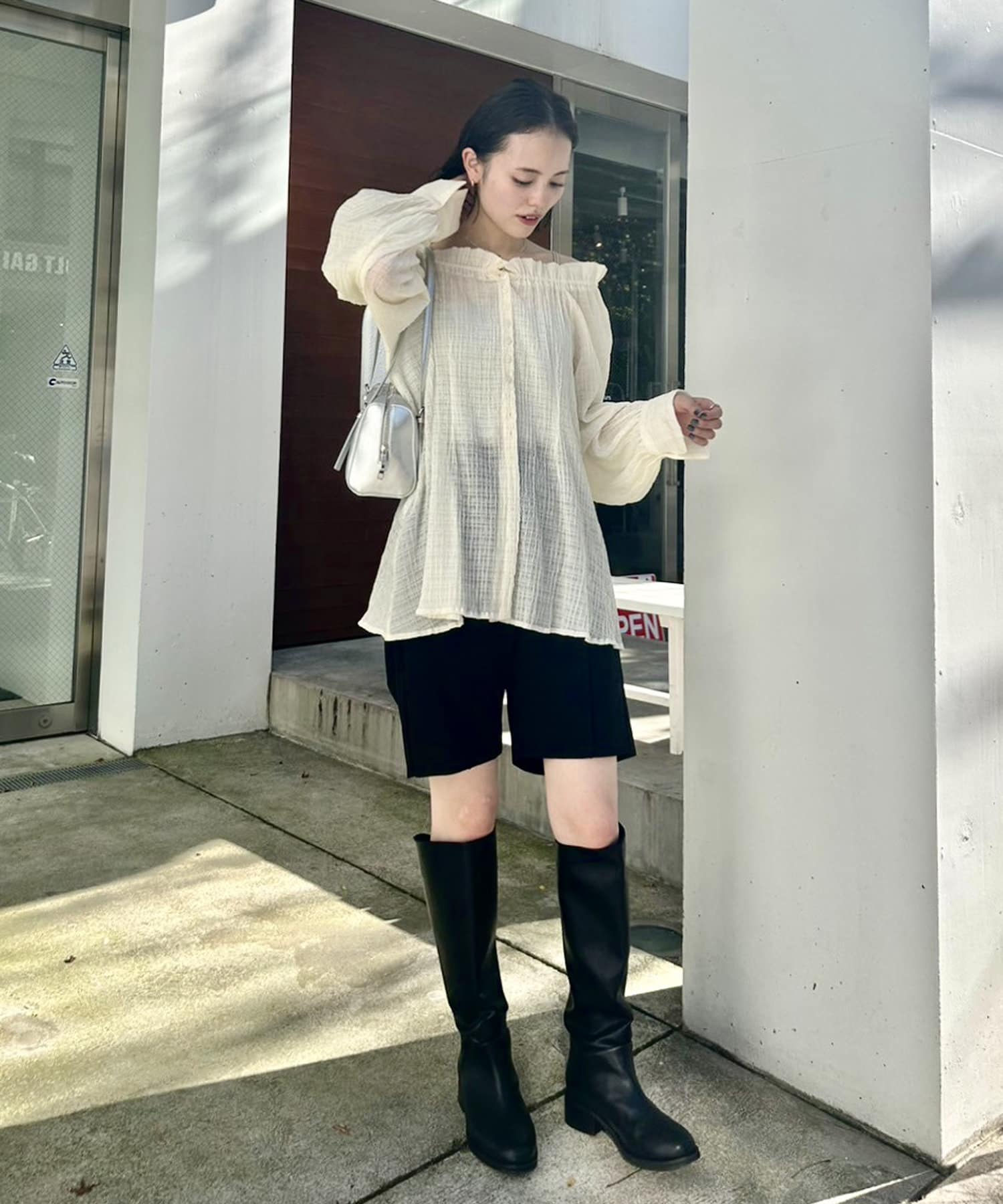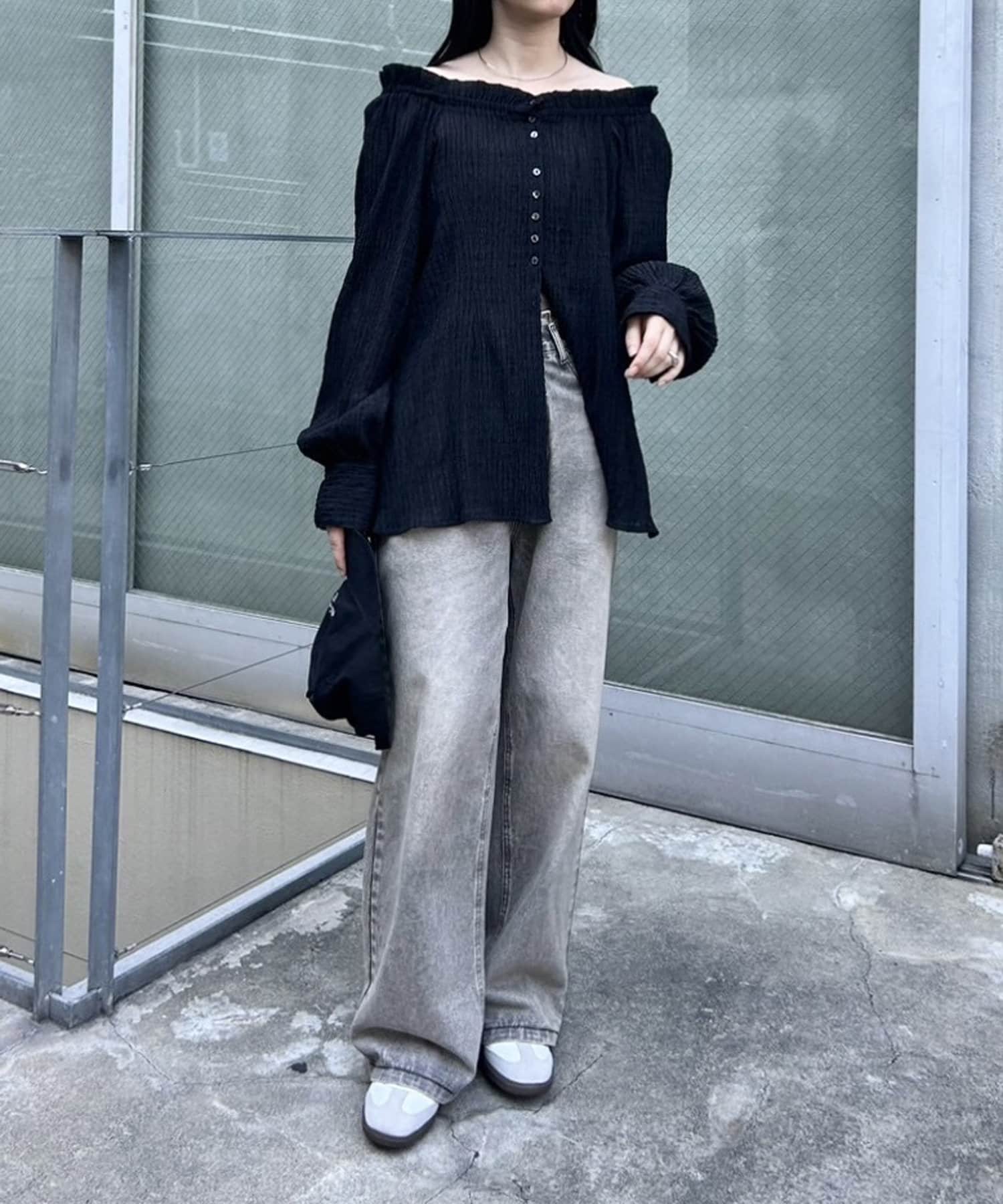 ・肩の部分を落としてオフショルとして着ていただくとより抜け感あるスタイリングに◎