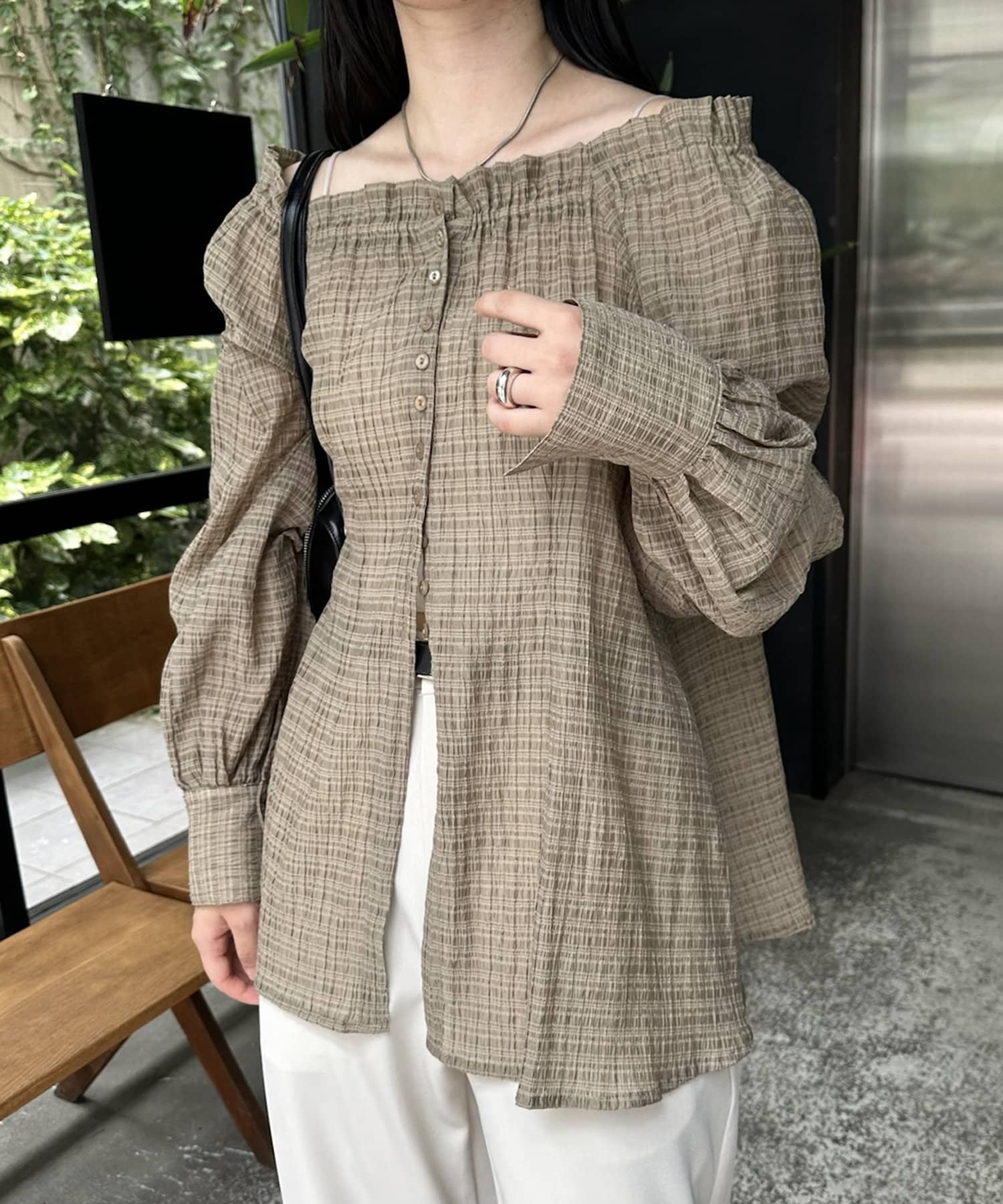 チェック柄とほどよいシアー感が可愛い◎トレンドライクなブラウスが登場!
