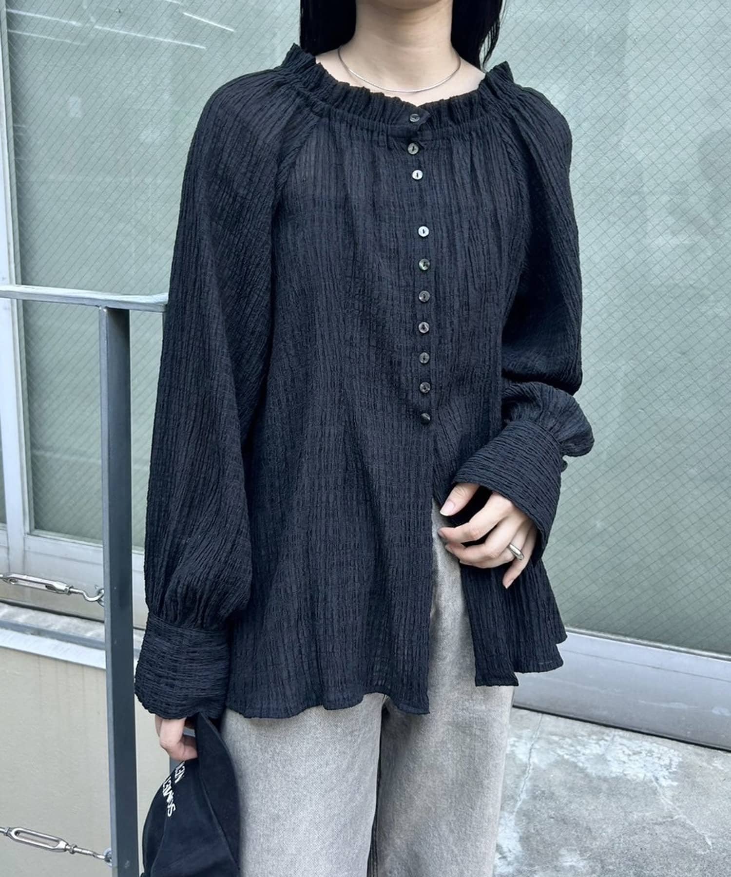 生地感は軽いけど少ししっかりしてて秋ブラウスって感じです