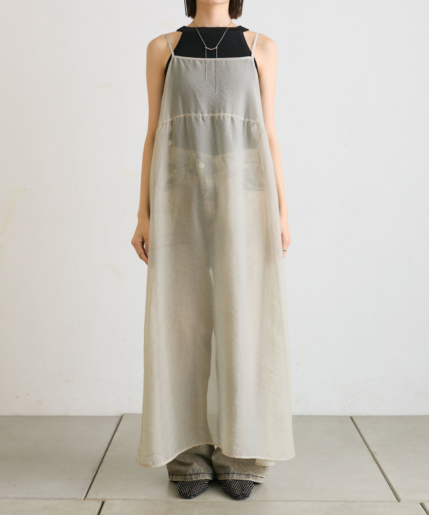 レイヤードスタイルに◎シアー素材がトレンドライクなキャミワンピースが登場!