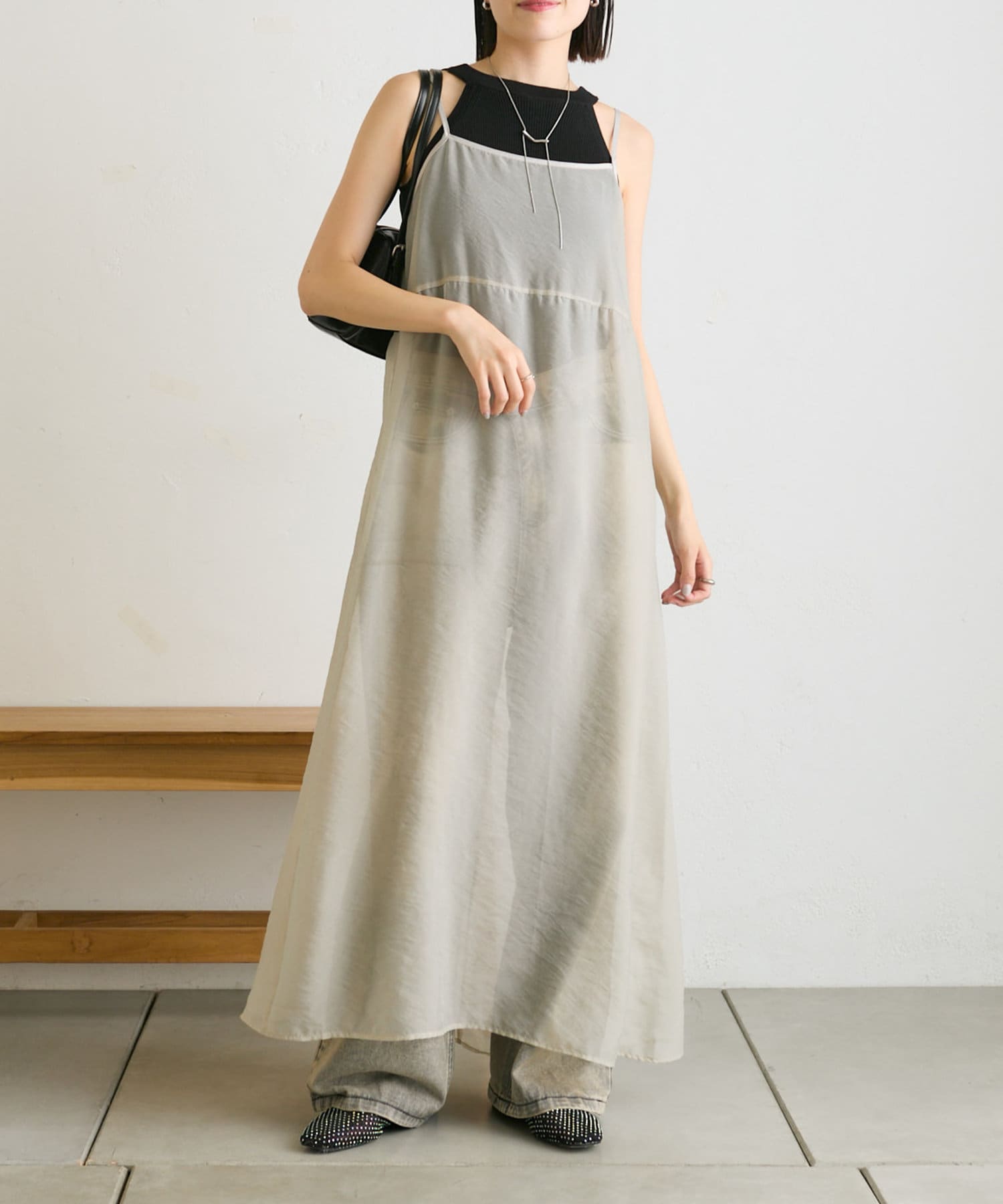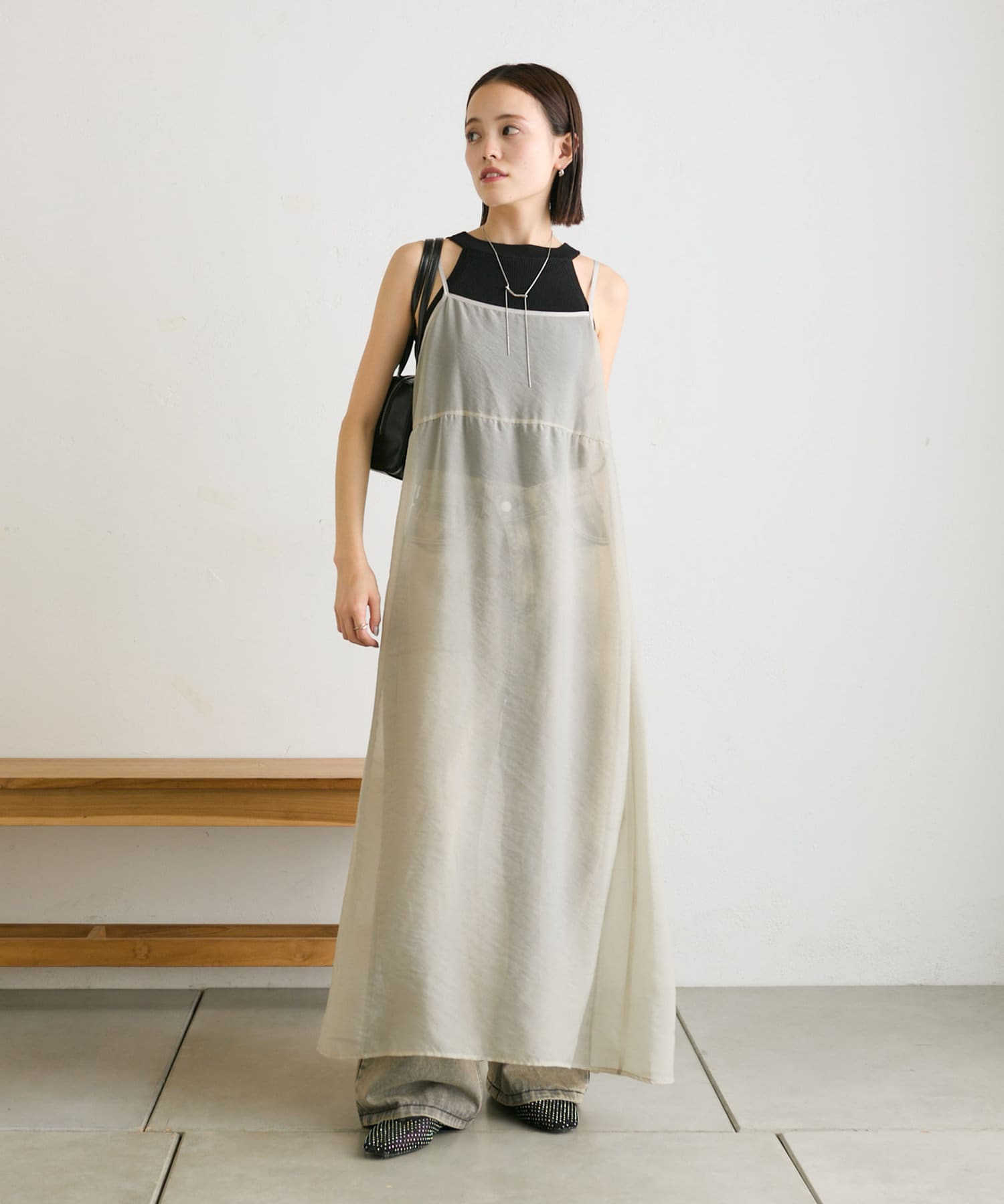 レイヤードスタイルに◎シアー素材がトレンドライクなキャミワンピースが登場!