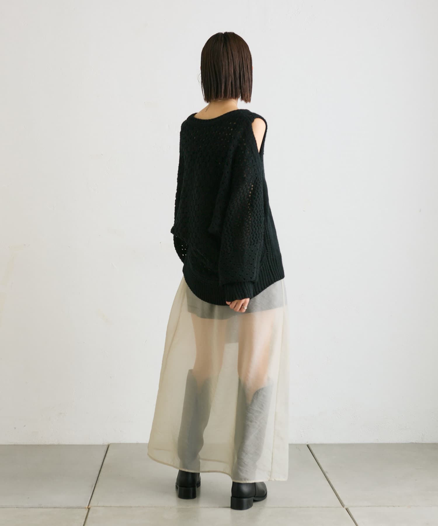 シアー部分、ごわごわ感なく滑らかです。安いオーガンジーっぽさはなく素敵な感じ。黒いワンピースにあわせてイメチェンに使いたいと思います。
