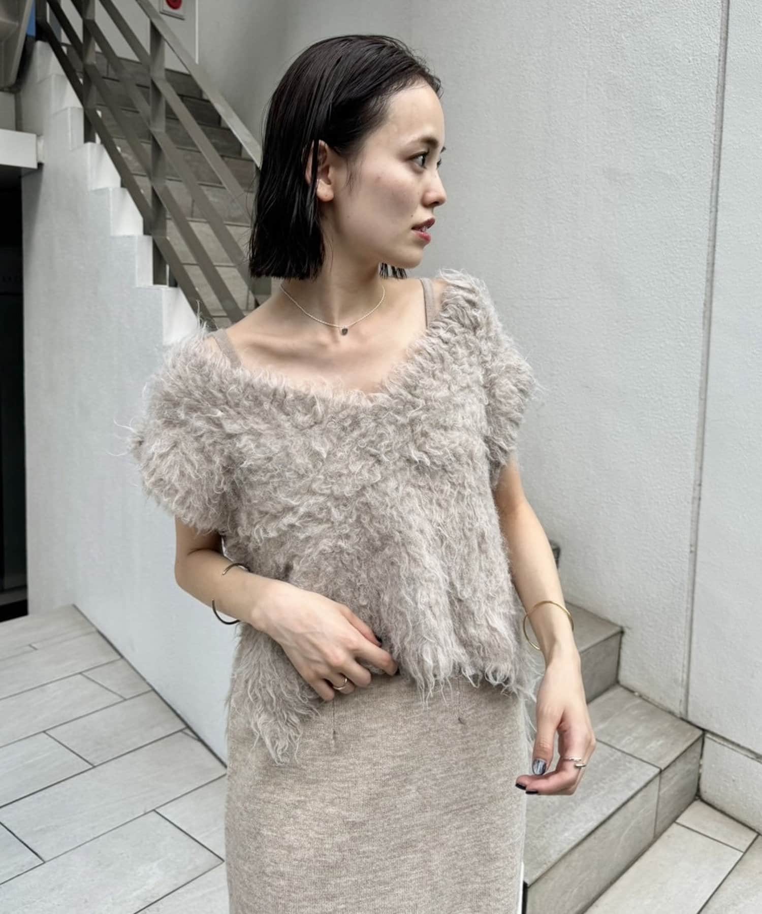 ・セットのシャギーベストをワンピースに合わせたスタイリングは一着で決まります!