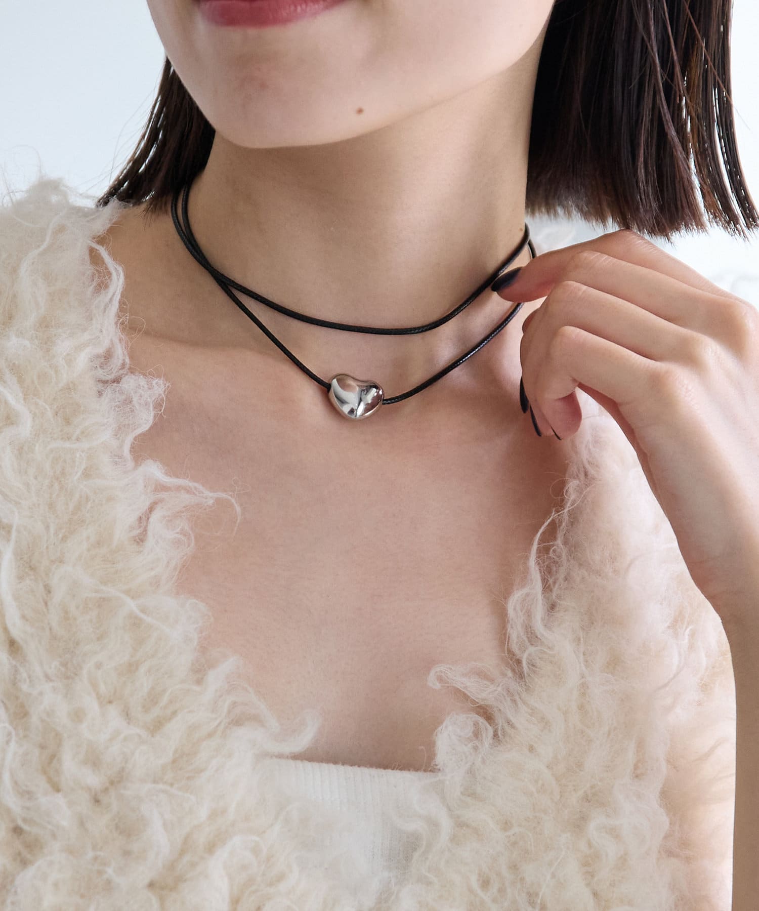 ・トレンドライクなメタリックのハートがポイントのチョーカー。