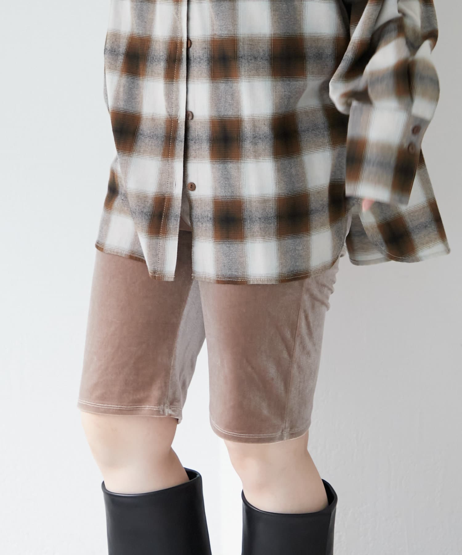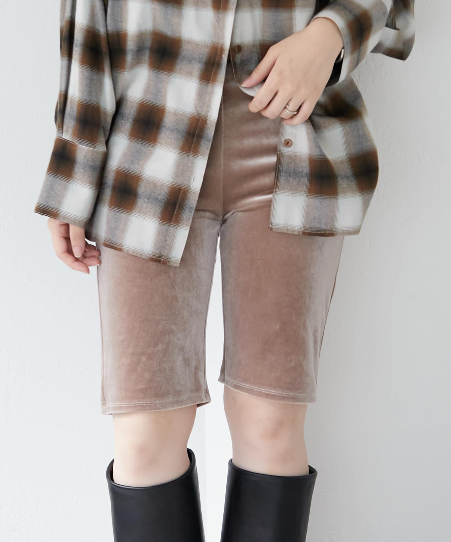 ・表面感のある滑らかなベロア生地がトレンドライクなハーフパンツ。