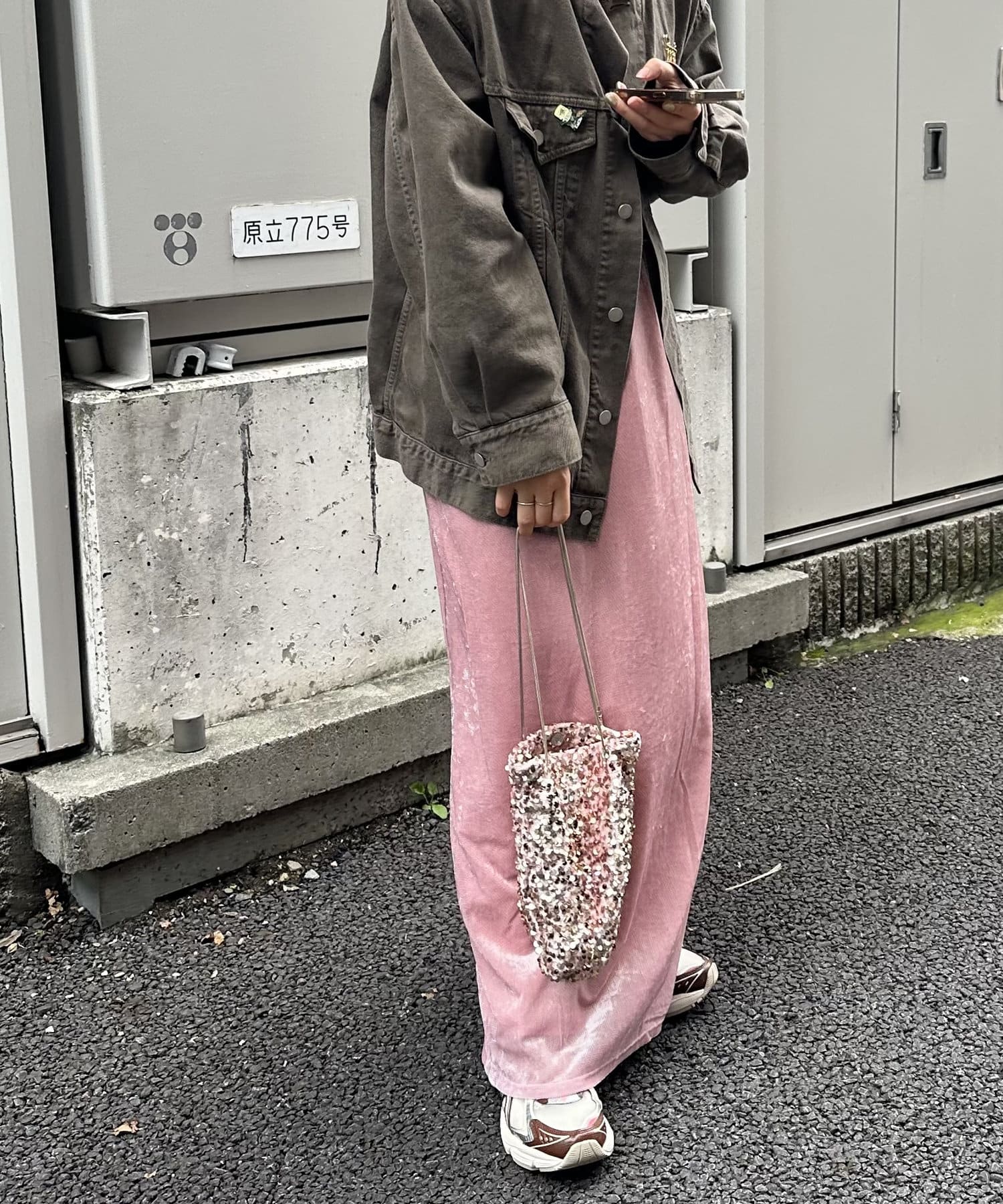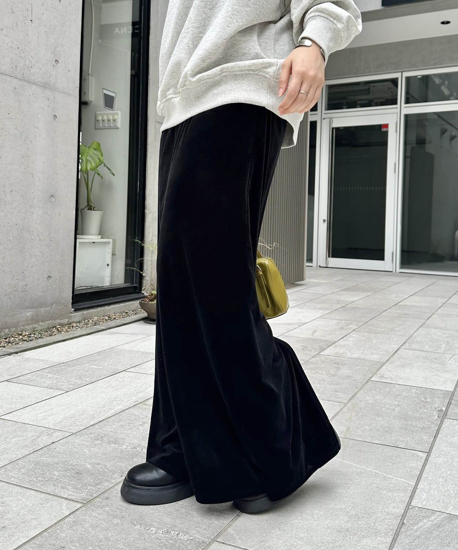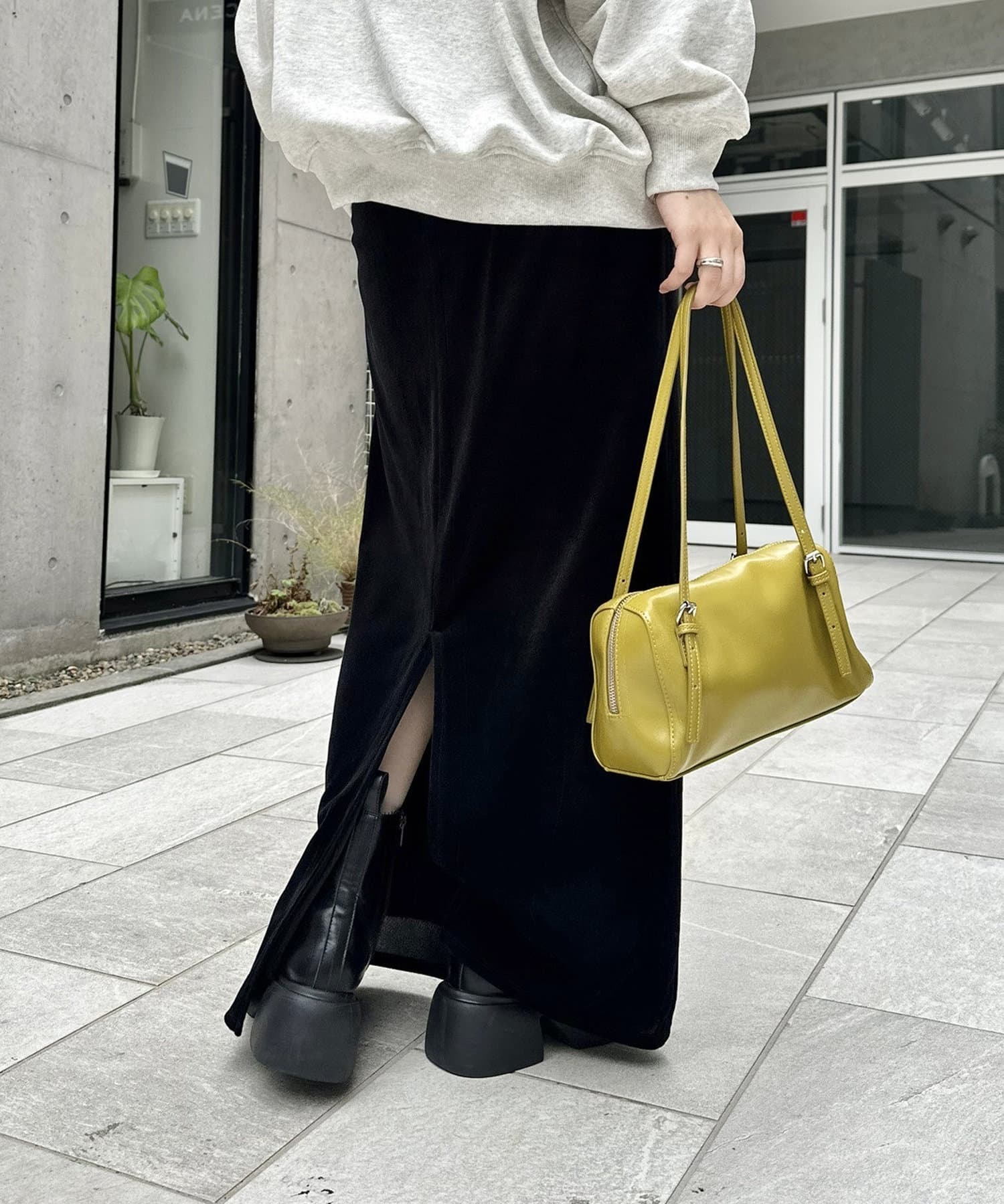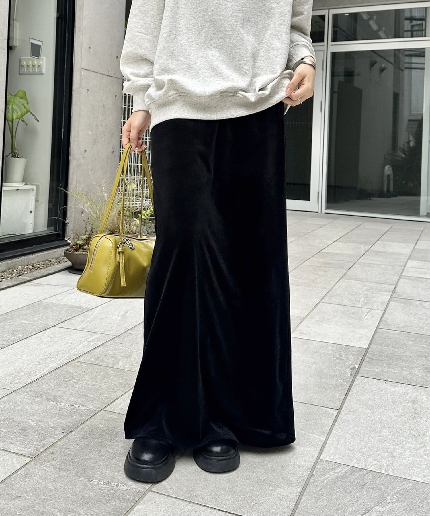 ・光沢感のあるベロア素材で歩くたびにきらめくベロアスカート。