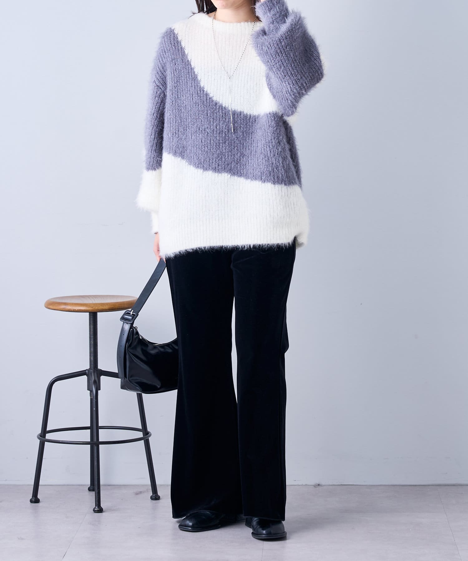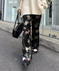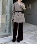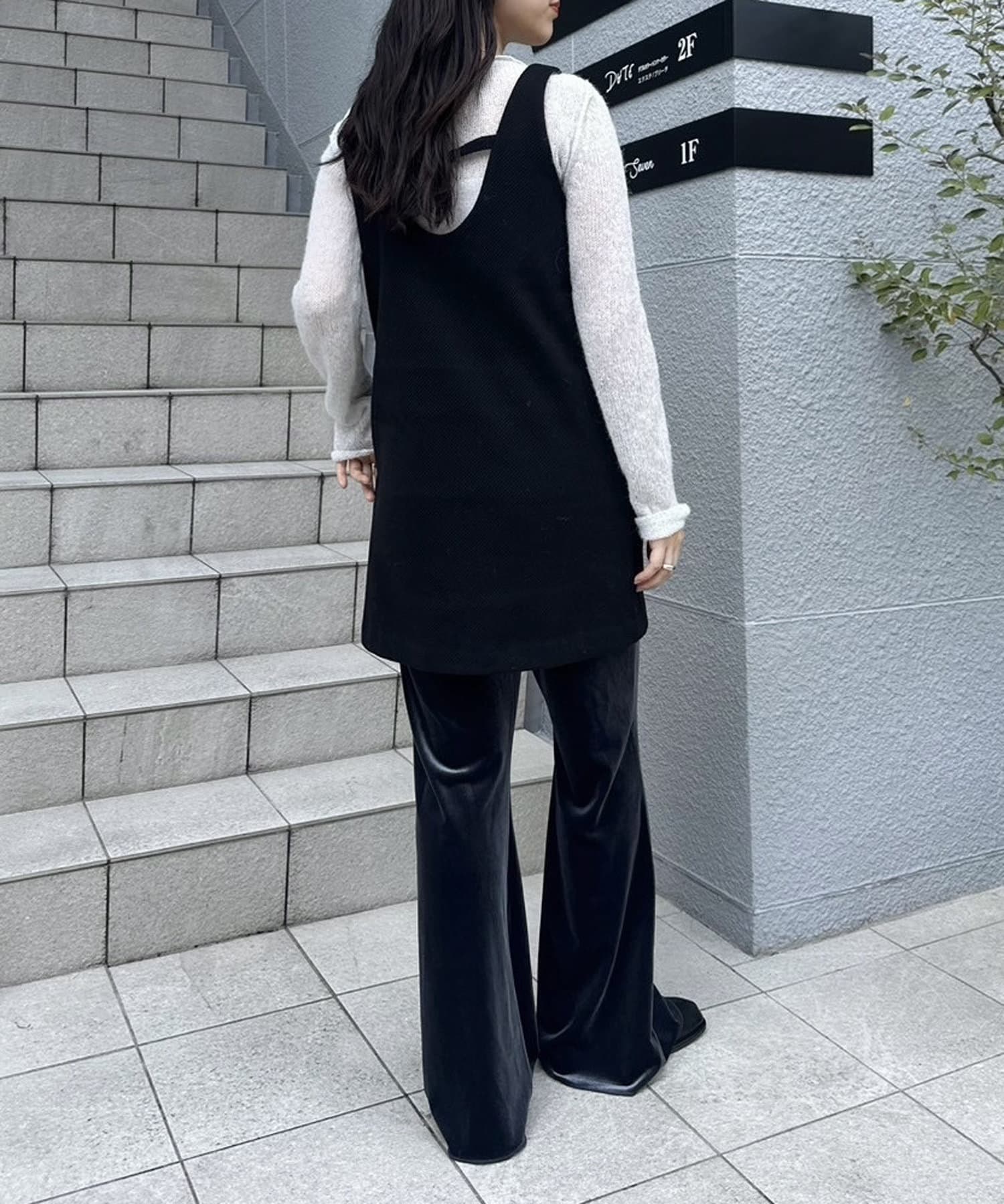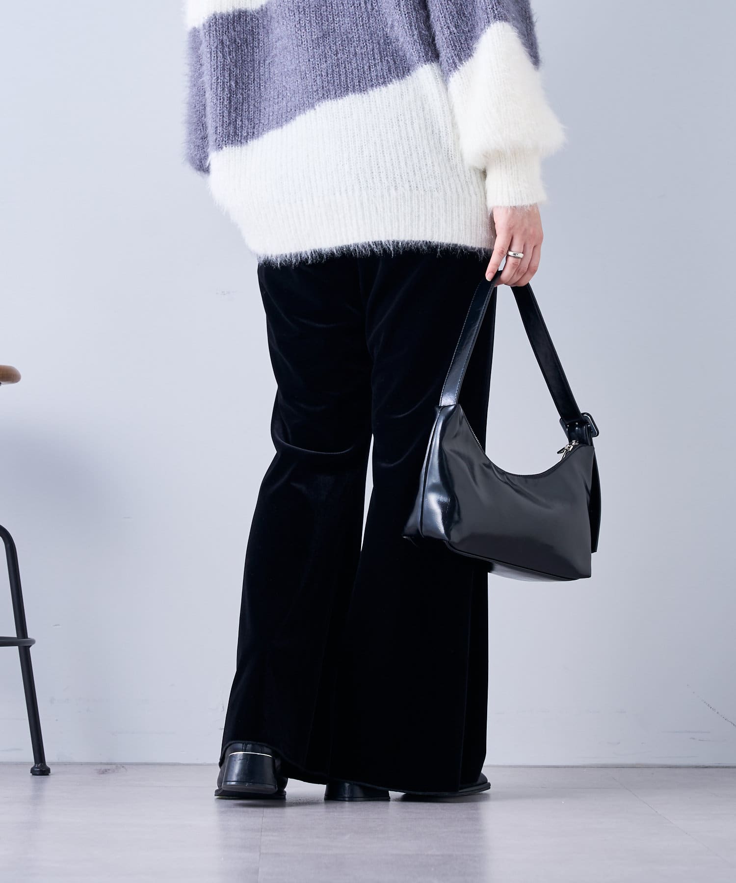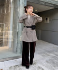 ・ツヤッとしたベロア素材がコーディネートの主役にもなるフレアパンツ。