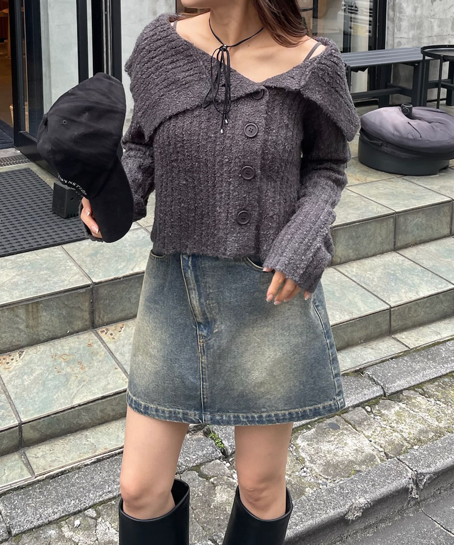 大きめなボタンが目を惹く◎トレンドの襟付きニットカーディガンが登場!