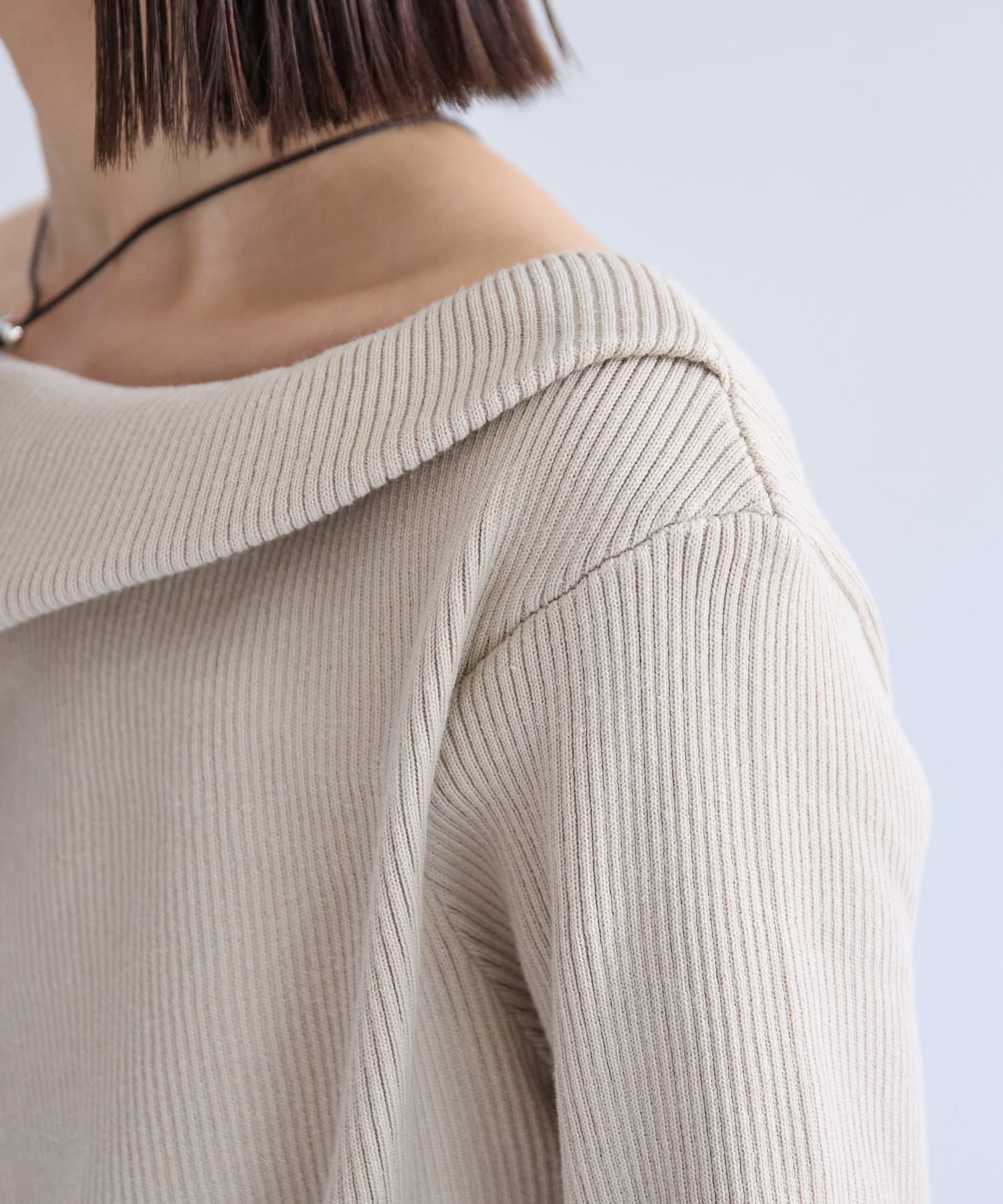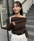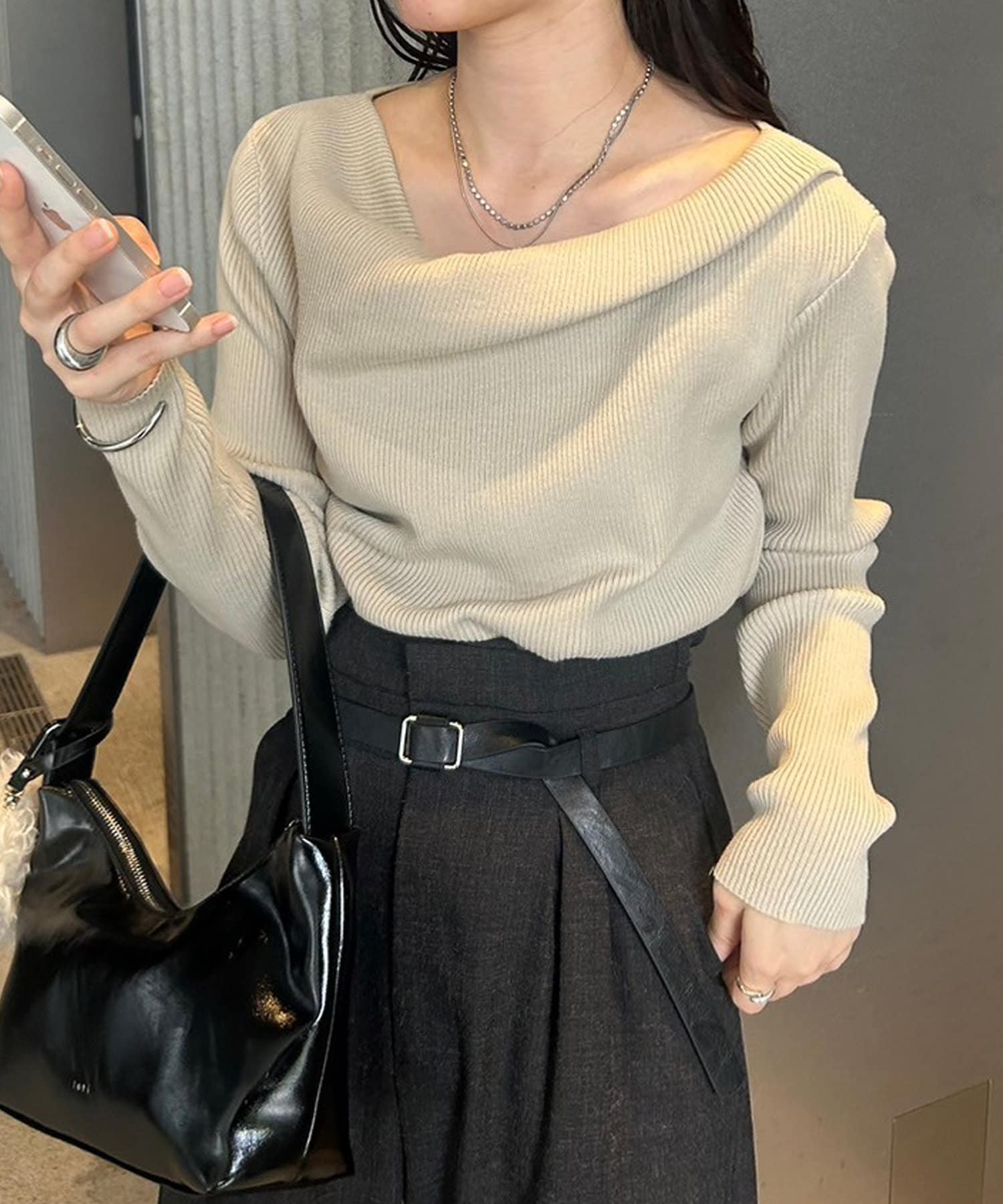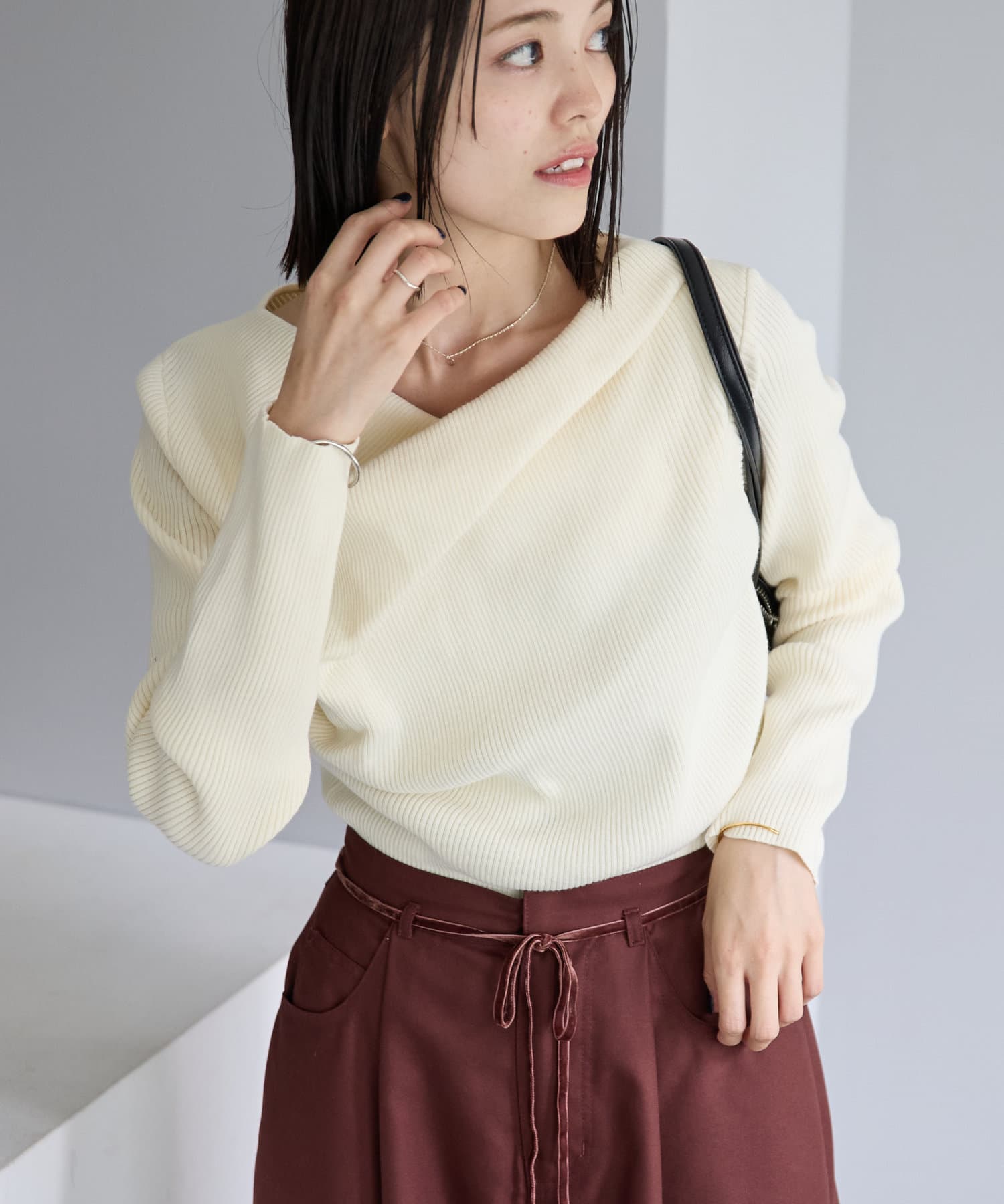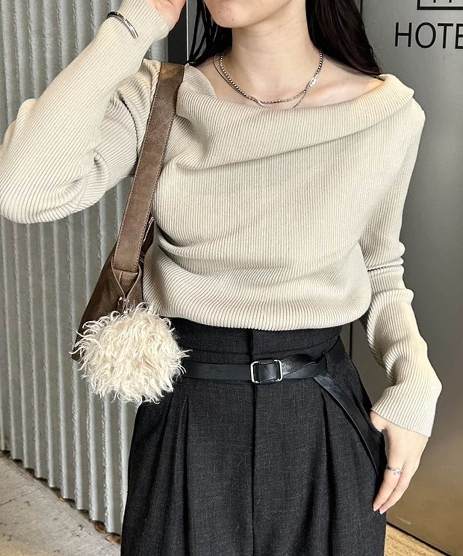 ・オフショルデザインが目を惹く女性らしい印象のリブニット。